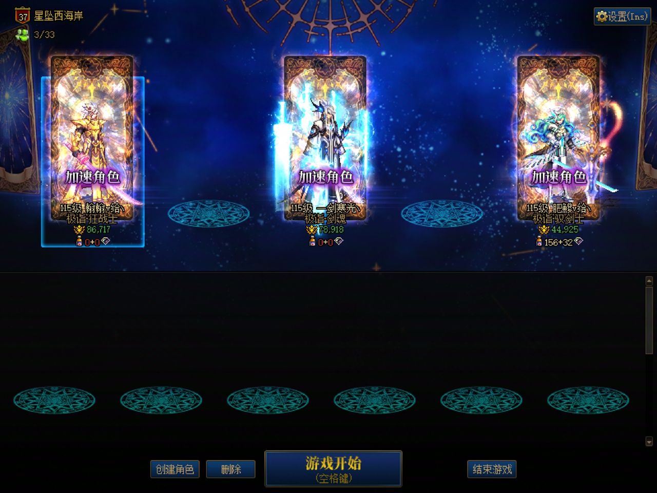游戏区服:跨3A 四川 主职业:【鬼剑士】剑神
