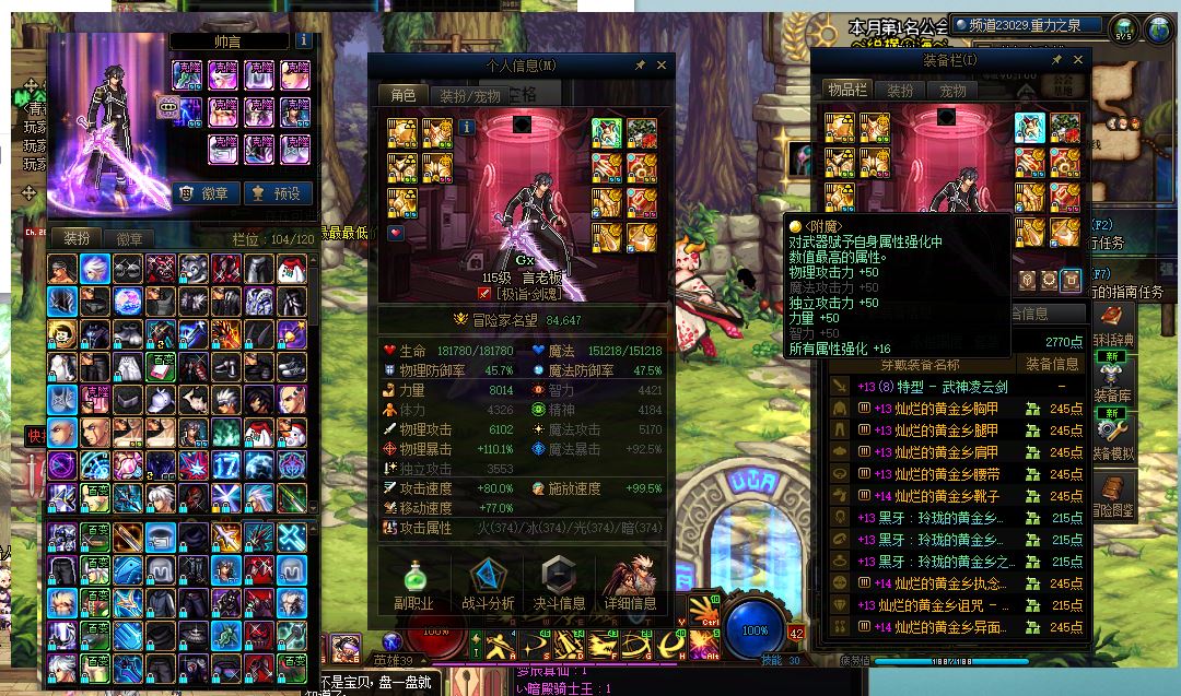 游戏区服:跨6 山东1-2/7 主职业:【鬼剑士】剑神