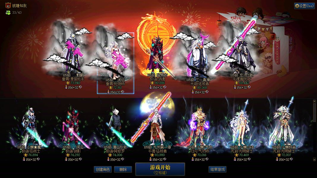 【账号佳】 【可二次实名】【信誉分:985】跨三A四川1区,红15剑神+半身红15女大枪+武器耳环红15全身红13旅人+2个红13【女气功+猎人】+14个红红12-13打造角色【除奶弓以外,全部13粉彤彤武器】!【仓库还有两个大龙珠,已买11套国庆】!【金樽清酒斗十千,玉盘珍羞直万钱】,序号250076
