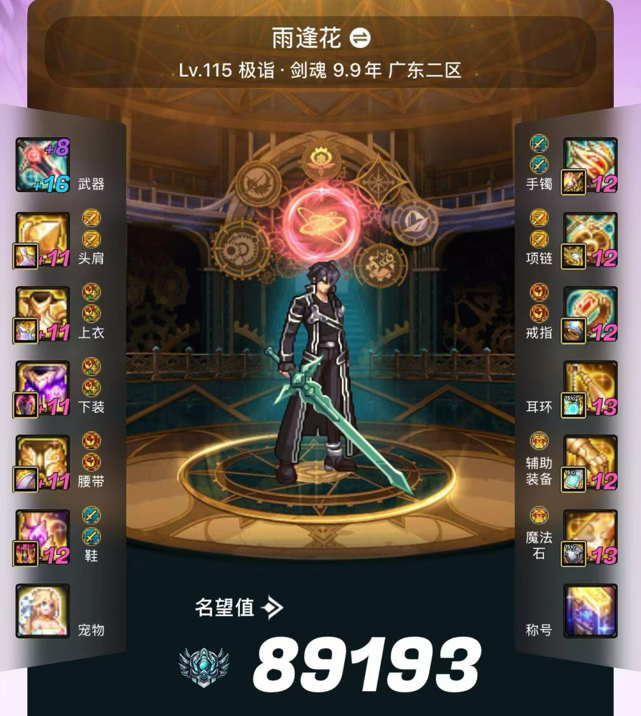 游戏区服:跨7/8 山东3-6 主职业:【鬼剑士】剑神
