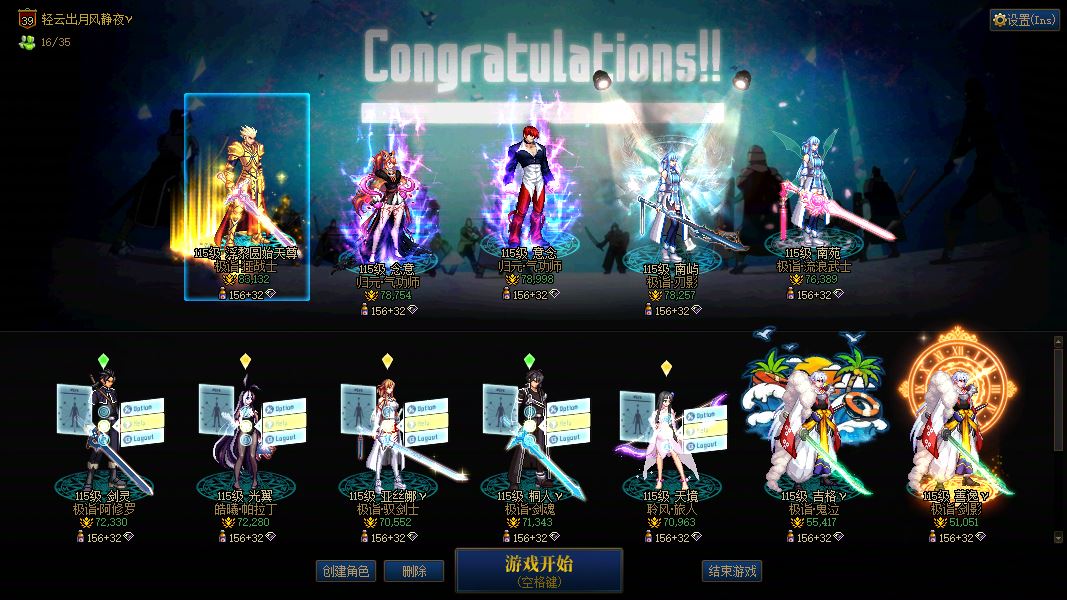 【账号佳】 【可二次实名】【信誉分:666】cl上海1区70623名望女圣职+48767名望剑魂//7个3.3+未央搬砖角色//纯白未破凶