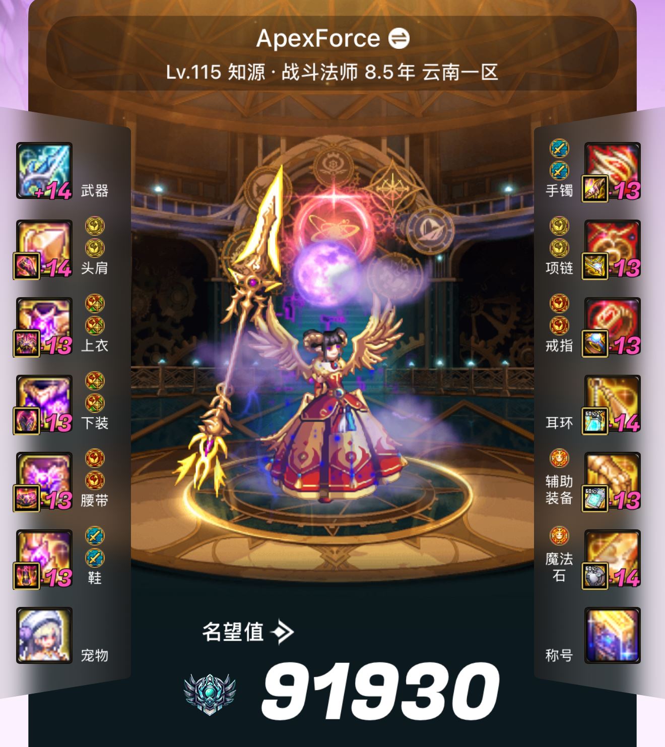 游戏区服:跨3B 云南 主职业:【女法师】战法