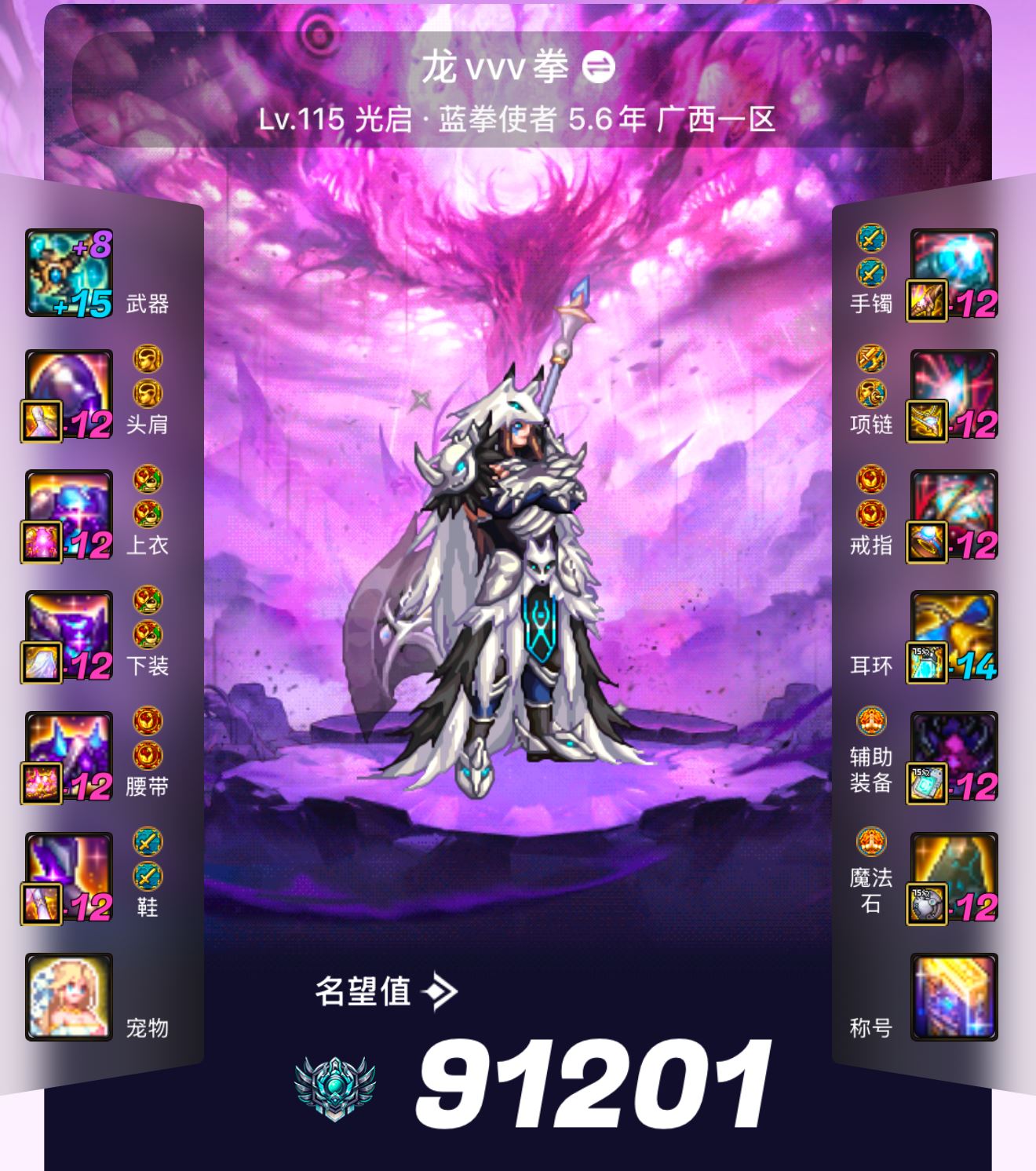 游戏区服:跨1 广西 主职业:【圣职者】蓝拳