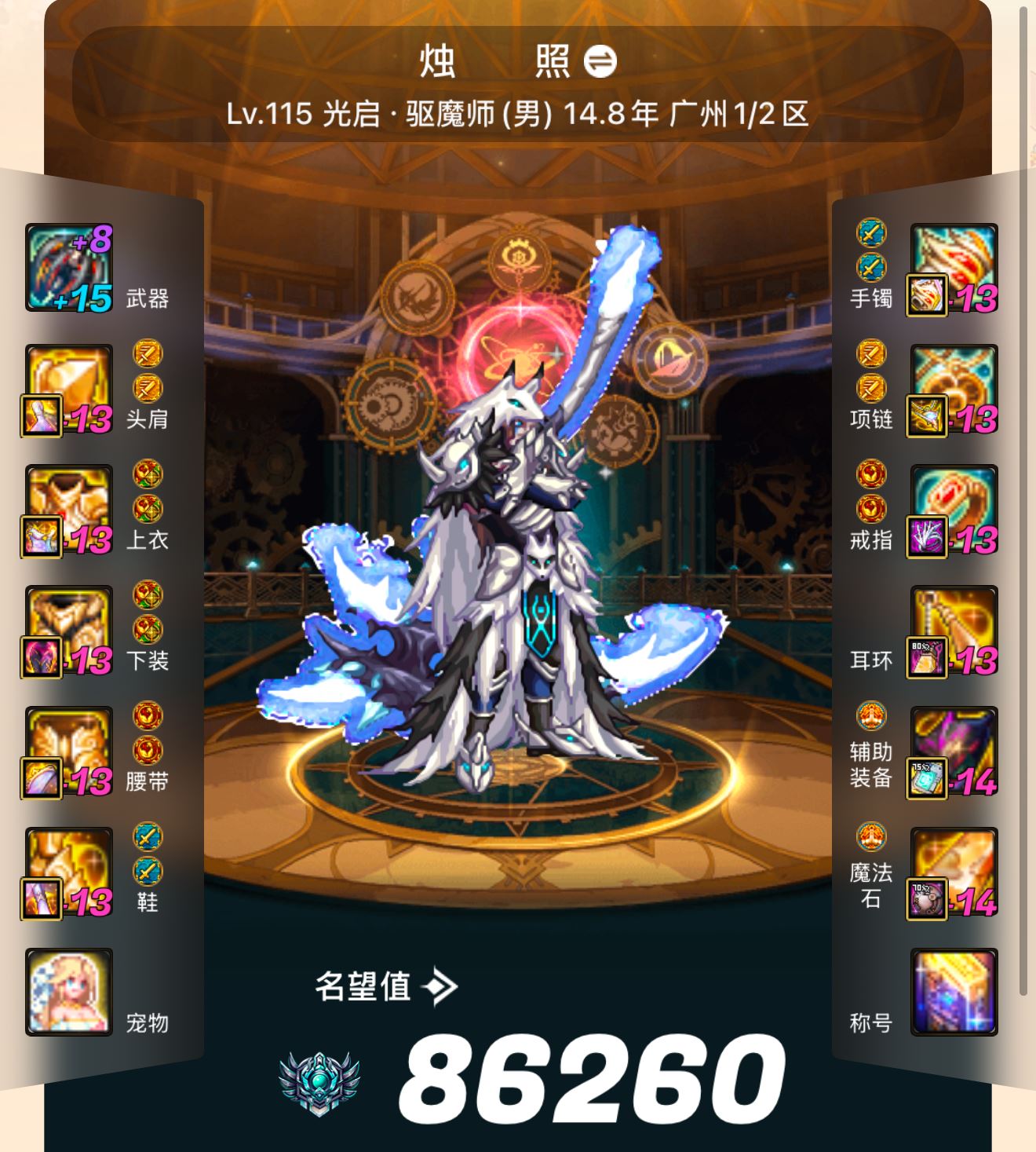 游戏区服:跨2 湖北 主职业:【女圣职】炽天使
