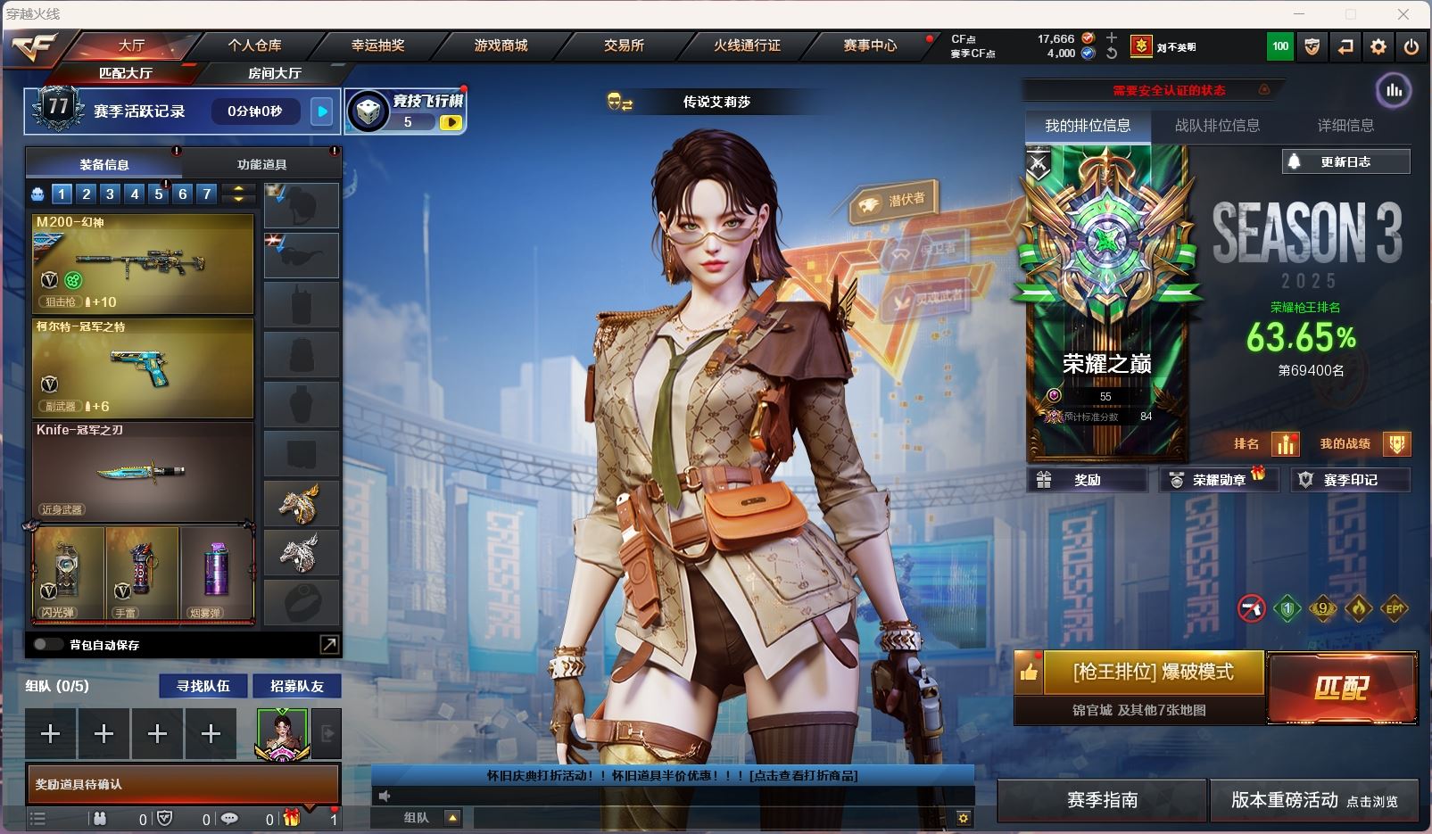 【账号佳】 【可包人脸】hmc AK027745山东一区vip6 65v【亮点解析 传说角色 幻神三件套 】【四防传说艾莉莎】【m200幻神+音效卡+星火小队+女团+黄忠+冠军之特+冠军之刃】【scar白虎】【qbz金色蔷薇+荣耀世冠白鲨+巅峰荣耀】【火麒麟+冠军之心】【雷神+冠军之魄+巅峰荣耀+s18冠军】【毁灭+卡+冠军之怒】【裁决+流光秘银 】【堕天神套】【武器:堕天神 幻灵 金色蔷薇古蛇迷踪 】【6手枪:天神 堕天神*2 天神 冠军之特 】【5刀具:堕天神 屠龙 龙啸 】【9雷套:堕天神雷*7 幻灵雷*2】【小人枪:朱雀蛇隐宗 】【音效卡:幻神音效卡 毁灭音效卡 】【四防角色:晴雅 王者潘多拉 王者岚兮儿】----更多炫彩背包/光效/名片/武器具体看图!截图展示段位不代实际段位,赛季更新等不可抗拒因素发生变化、时限道具不保证所剩时间、标题未写送点券默认不送】【主播担保+安全至上+性价比 买号卖号只选金牌商家一左友】