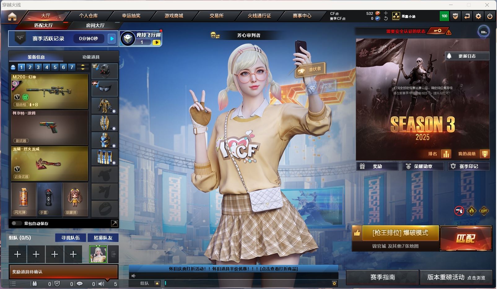 【账号佳】 【可包人脸】hmc ak023649 黑龙江区 vip5 25v 【m200-幻神+幻神-星耀】 【98k星神+音效卡】 【qbz金色蔷薇】 【裁决+流光秘银】 【雷神+巅峰荣耀】 【2手呛 修罗 cop幻灵】 【4近战 屠龙*3 幻灵之锋】 【手雷 幻灵雷*3】 【四防 王者影豹】 ----更多炫彩背包/光效/名片/武器具体看图!截图展示段位不代实际段位,赛季更新等不可抗拒因素发生变化、时限道具不保证所剩时间、标题未写送点券默认不送】【主播担保+安全至上+性价比 买号卖号只选金牌商家一左友】