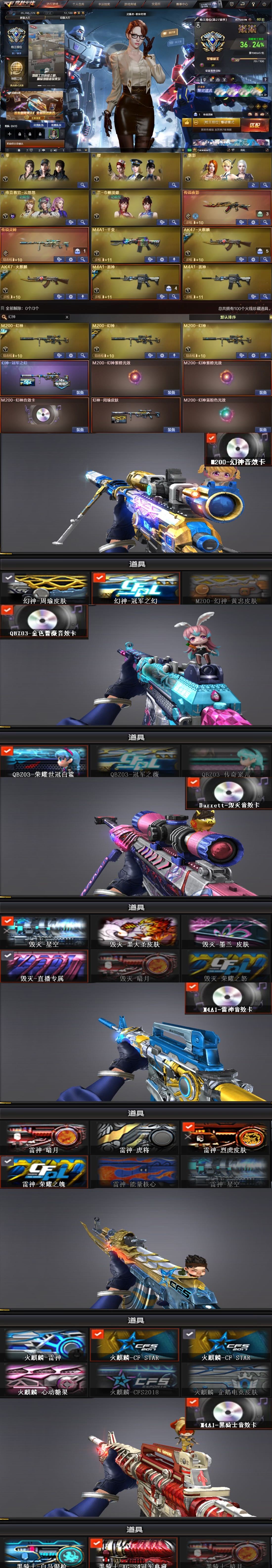 【账号佳】 【可二次实名】双usp雷暴✨周瑜幻神音效卡✨电玩白虎王者qbz雷神荣耀之魄毁灭冠军之怒✨4列龙蝴蝶✨6音效卡【100v】 【实名情况】可二次实名 【可否排位】可排位 【账号状态】无封号 【区服】广东一区 【vip】 【游戏等级】lv.100 大元帅 【段位排名】未上榜 【cf点】136 【vvip数量】100 【重要套装】雷暴套装 【重要角色】_零/_瞳/王者-零-国色天香/空/零-水下丽影/云海玲珑 【传说武器】 【英雄武器】_m200-幻神/barrett-毁灭(4)/barrett-极光(3)/王者之怒-觉醒版/awm-天龙(2)/awm-裁决/m4a1-雷神(3)/m4a1-死神(2)/m4a1-黑龙(2)/m4a1-千变(3)/m4a1-黑骑士(2)/m4a1-武圣/m4a1-猎神/m4a1-玫瑰精灵/王者之魄-觉醒版/白虎-电玩/ak12-天启(2)/ak47-火麒麟(4)/ak47-无影/ak47-雷暴/ak47-黑鲨/ak47-黑武士(2)/ak-47-猩红传说/ak47-机械迷城(2)/ak47-b-战神/an94-超新星(2)/王者之心-觉醒版/qbz-03-王者蔷薇-觉醒版/rpk-盘龙(2)/汤姆逊-烈龙(2)/aa-12-雷霆/加特林-炼狱(2)/沙鹰-天神(6)/沙鹰-修罗(3)/usp-雷暴(2)/麒麟刺/龙啸/擎天(3)/屠龙(7)/斩神刀-雷暴/高爆手雷-雷暴(5)/盐雾蛋-雷暴(5)/闪光丹-雷暴(5)/王者火魄-觉醒版/烈龙-云海游龙/擎天-云海游龙/手雷-云海游龙 【王者武器】王者之翼/超新星-悦享/王者之光/烈龙-悦心/王者之魂(2)/王者之锋(2) 【小人呛】火麒麟-灵狐/cat-刀锋/斯泰尔-蝴蝶/cop-旗袍/迷你深渊冰龙/魔能飞环-曼陀罗 【其他重要武器】炫金火麒麟/炫金骑士/炫金黑龙/炫金雷神/炫金天龙(2)/炫金天神/m4a1-英雄-能量核心/黑武士-能量核心(2)/激光毁灭者iii/ak47-破空冰刃(3)/ak47-轮回(5)/ak47-苍龙/m4cqbr-ap-孔明/m4a1c-死亡之翼/ak47-齐天大圣(2)/ak47-大帝林肯/m4a1-秘银赤龙(2)/ak47-绚樱/ak47呛王排位ii(2)/g3a3-ss-呛王排位(2)/9a91-赤血龙魂(4)/m4a1-肯德基/ak47-ss-呛王排位/ak47-死亡之翼/ak47-十年火线/hk417-赤血龙魂/ak-12-cfs2017纪念版/凤凰之魄(4)/神罚/m200-神秘黑洞/barrett-麟龙/barrett-赤龙/芭蕾特-绚樱/awm-a-圣诞2021/awm-恶棍-呛王排位/awm-t/barrett-翔龙/m200-赤血龙魂(2)/m200-万圣节2018(2)/awm-a呛王排位ii/awm-涂鸦(2)/awm-呛娘/m200-圣诞(2)/awm-蓝水晶/fn弩炮-cfs2017纪念版(2)/awm-圣诞/巨龙咆哮ⅲ(2)/kac-小动物/kac-情人节2021/kac-赤烛/斯泰尔-cfs2017纪念版/神圣爆裂者/spas-12-幻能朋克/沙鹰-呛王排位(6)/anaconda-麟龙/柯尔特-百城/新usp-呛王排位奖励(4)/cop-机甲刑天/愤怒公牛左轮-呛王排位(2)/mauser m1896-cfs 2020/迷彩沙鹰-70kg/anaconda-炽焰核心(3)/cop 357--绚樱/anaconda-雷电核心/沙鹰-雷蛇(2)/cop357-赤龙/凤凰之灵(6)/金刚伞-电玩红兔/蝴蝶刀-呛王排位/丛林匕首-呛王排位(2)/军用铁锹-飞龙在天/收割者-呛王排位/鹰爪-呛王排位/闪光丹-呛王排位(6)/胜利奖杯盐雾蛋-呛王排位 【重要武器皮肤】幻神-周瑜皮肤/毁灭-星空/毁灭-荣耀之怒/毁灭耀金皮肤/毁灭-暗月/极光-能量核心/天龙-秘银/火麒麟-cfstar/火麒麟-ag/无影-暗月/无影-能量核心/无影耀金皮肤/雷神-荣耀之魄/雷神-暗月/雷神-能量核心/雷神-星空/黑骑士耀金皮肤/黑骑士-暗月/黑龙-暗月/黑龙-能量核心/死神-秘银/天启-暗月/修罗-能量核心/天神-暗月 【重要光效】王者之影金色光效/王者之心金色光效/王者之锋金色光效/王者之魄金色光效/ak47-火麒麟蓝色光效/an94-超新星蓝色光效/awm-天龙蓝色光效/m4a1-死神蓝色光效/rpk-盘龙蓝色光效/加特林-炼狱蓝色光效/芭蕾特-毁灭蓝色光效/汤姆逊-烈龙蓝色光效/麒麟刺蓝色光效/龙啸蓝色光效/ak47-无影蓝粉色光效/m4a1-死神蓝粉色光效/barrett-毁灭蓝粉色光效/an94-超新星蓝粉色光效/barrett-极光红绿光效/m4a1-千变红绿色光效/m4a1-武圣红绿光效/m4a1-死神红绿色光效/m4a1-雷神红绿光效/汤姆逊-烈龙红绿色光效/屠龙绿色光效 【重要音效卡】m200-幻神音效卡/m4a1-黑骑士音效卡/m4a1-雷神音效卡/barrett-毁灭音效卡/ak47-火麒麟音效卡/擎天-云海游龙音效卡 【重要戒指】龙眼(死神)/龙眼(鹰)/金蛇戒/银蛇戒/16赛季纪念戒指-呛王耀银/17赛季纪念戒指-耀银/22赛季纪念戒指-耀铜(食指)/22赛季纪念戒指-耀银(拇指)/23赛季纪念戒指-耀银(拇指)/23赛季纪念戒指-耀银(食指) /24赛季纪念戒指-耀铜(食指)/24赛季纪念戒指-耀银(拇指)/25赛季纪念戒指-耀铜(食指)/25赛季纪念戒指-耀铜(拇指)/26赛季纪念戒指-耀金(拇指) 【拥有重要玩偶】