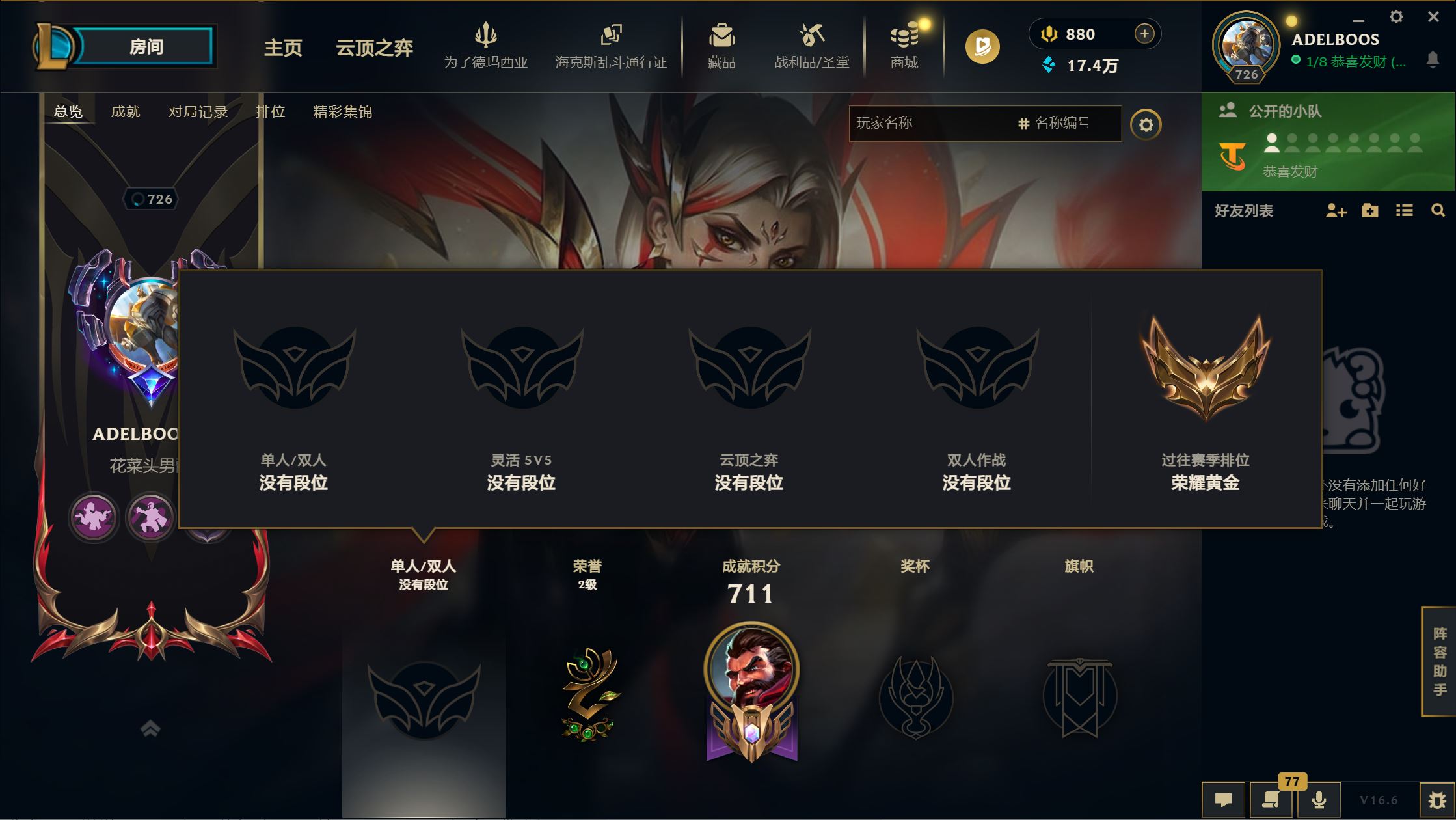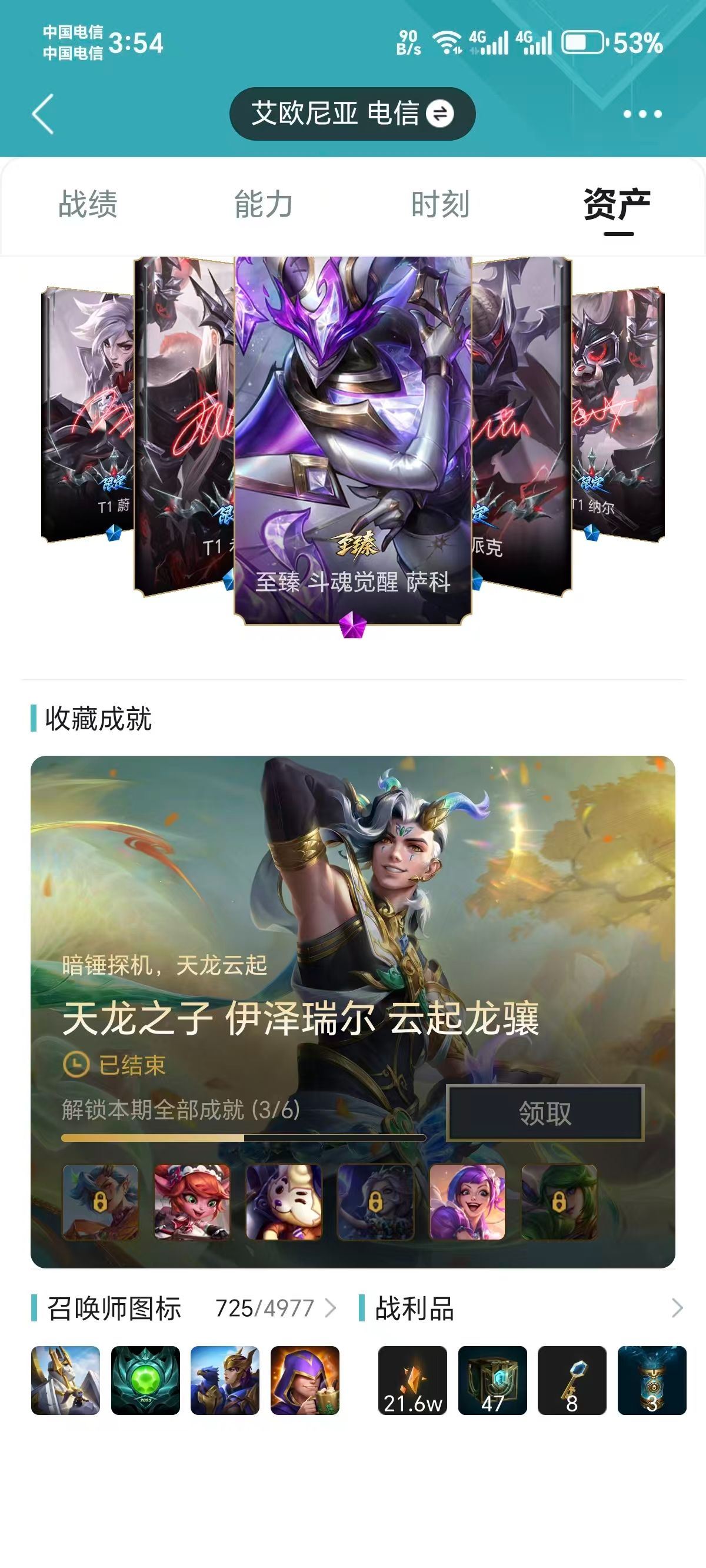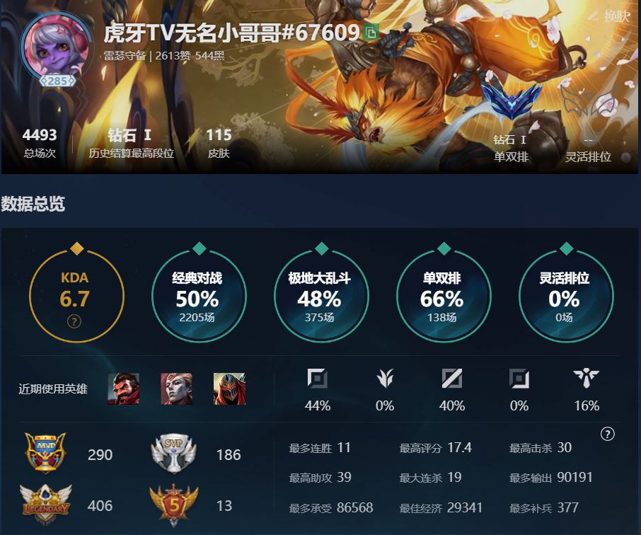 【账号佳】 【可二次实名】12902!172英雄 2597皮肤总数(原皮+炫彩) 1593皮肤 2卓越 1圣堂 6终极 97神话 293限定 55臻彩 1006炫彩 128传说 215史诗 单双华贵铂金/灵活不屈白银 账号等级:1209;云顶之弈:153小小英雄 23棋盘皮肤 24进攻特效