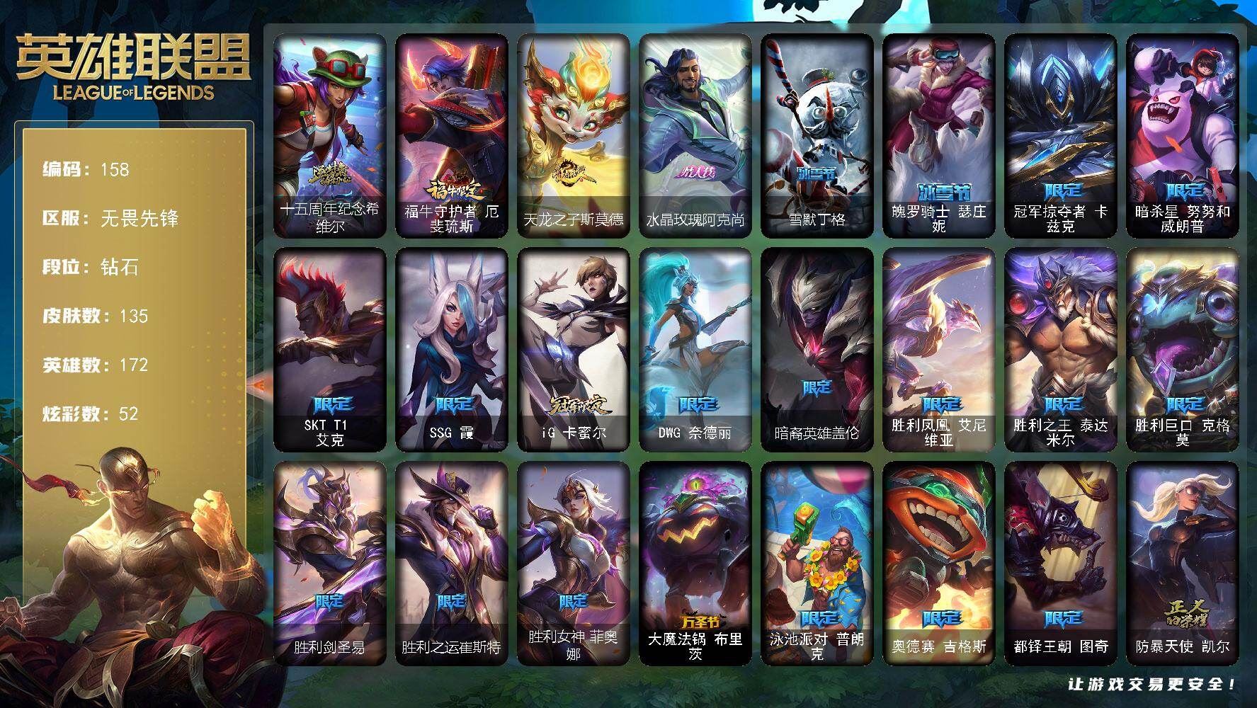 【账号佳】 【可二次实名】可二次QQ【网通】钻石段位-172英雄-135皮肤-52炫彩-0终极-1神话-24限定-8传说-21史诗【神话皮肤】:十五周年纪念希维尔【臻彩皮肤】:无畏骑士瑟庄妮赤子初心,神龙尊者圣龙李青龙腾云起,弹幕天使卡莎炽天使勇敢,西部魔影卢锡安贝利尔之怠,泳池派对辛德拉荔枝枝连击,幻灵战斗兔锐雯梦幻强袭,可爱可爱粉红红布里茨,魔女阿卡丽虚荣,心之钢伊泽瑞尔锐意曲风,霸天异形卡兹克丛林灾厄【年限皮肤】:福牛守护者厄斐琉斯,天龙之子斯莫德【情人节限定】:水晶玫瑰阿克尚【冰雪限定】:雪默丁格,魄罗骑士瑟庄妮【限定皮肤】:冠军掠夺者卡兹克,暗杀星努努和威朗普,SKTT1艾克,SSG霞,iG卡蜜尔,DWG奈德丽,暗裔英雄盖伦,胜利凤凰艾尼维亚,胜利之王泰达米尔,胜利巨口克格莫,胜利剑圣易,胜利之运崔斯特,胜利女神菲奥娜,大魔法锅布里茨,泳池派对普朗克,奥德赛吉格斯,都铎王朝图奇,防暴天使凯尔【传说皮肤】:恶魔男爵瑞兹,黎明使者索拉卡,最终BOSS维迦,神龙尊者圣龙李青,黯黑魔龙希瓦娜,焰尾妖狐阿狸,黑夜使者亚索,西部魔影卢锡安【史诗皮肤】:科学怪熊的新娘安妮,特战先锋赵信,荒野豺狼沃里克,熔火之心拉莫斯,夜刃艾瑞莉娅,夜行义贼艾瑞莉娅,血石诅咒塔里克,黑曜石守护者墨菲特,枯萎之壤雷克顿,灵骨工匠奥莉安娜,艳后奈德丽,血色之锤波比,实习护士阿卡丽,银色之牙阿卡丽,腥红之月泰隆,暗黑武士雷恩加尔,白色死神韦鲁斯,沙之守护卡兹克,霸天剑魔亚托克斯,锦鲤娜美,冰雪游神巴德【勇士皮肤】:创意工坊黑默丁格【典藏皮肤】:魔导绅士维迦【其他皮肤】:幽蓝梦魇加里奥,奥德赛崔斯特,皇家守卫赵信,赵云子龙,弗拉基米尔侯爵,星之吞噬者费德提克,灵能特工凯尔,星战易,玉剑传说无极,咖啡甜心希维尔,睡衣守护者索拉卡,约德尔海贼团崔丝塔娜,攻城巨兽努努和威朗普,西部牛仔厄运小姐,破败军团厄运小姐,勇敢的心艾希,光明骑士贾克斯,梦魇科加斯,忍龟拉莫斯,暗星萨科,战栗之毒蒙多,健美教练蒙多,硬汉蒙多,莲花之令艾瑞莉娅,电玩上校库奇,柯基库奇,绿水晶光辉塔里克,灰胡子魔法师维迦,暮色枪骑布里茨,奥德赛墨菲特,黑色玫瑰假面舞会伊莉丝,热带丛林兰博,战地机甲内瑟斯,银河魔装机神奈德丽,墨影行者乌迪尔,龙骑士莫德凯撒,梅花国王莫德凯撒,蜂刺阿卡丽,奈落之炎阿卡丽,源计划暗影阿卡丽,银色闪电凯南,黄金骑士盖伦,战场BOSS玛尔扎哈,荣誉使者玛尔扎哈,伏虎之力泰隆,未来战士锐雯,幻灵战斗兔锐雯,索诺拉沙虫克格莫,荣誉使者慎,战斗学院拉克丝,战斗教授格雷福斯,霸天战士雷恩加尔,夜魔水晶韦鲁斯,禁魔石巨像诺提勒斯,玉剑传说无双,胜利女神菲奥娜,幽魂骑士赫卡里姆,春晖海神卡兹克,灵魂莲华德莱厄斯,双城之战杰斯,暗星女王丽桑卓,黑潮黛安娜,屠龙勇士黛安娜,光明骑士奎因,圣龙奥瑞利安索尔,墨影之灵奥瑞利安索尔,弹幕天使卡莎,永恒之森纳尔,黯晶之眼维克兹,国王佛耶戈,月蚀骑士赛娜,灵能特工莎弥拉,水瓶星神俄洛伊,黑暗骑士卡莉丝塔,窃魂修罗塞拉斯,星之守护者妮蔻,战斗学院永恩,心之钢永恩,黑夜使者莉莉娅,太空律动百万调音格温,各种道具详情看截图、低价出售找回包 赔、截图展示段位不代 表实际段位,如赛季更新等不可抗拒因素发生变化、时限道具不保证所剩时间、标题未写送点劵默认不送【卖号买号首选亿梦】