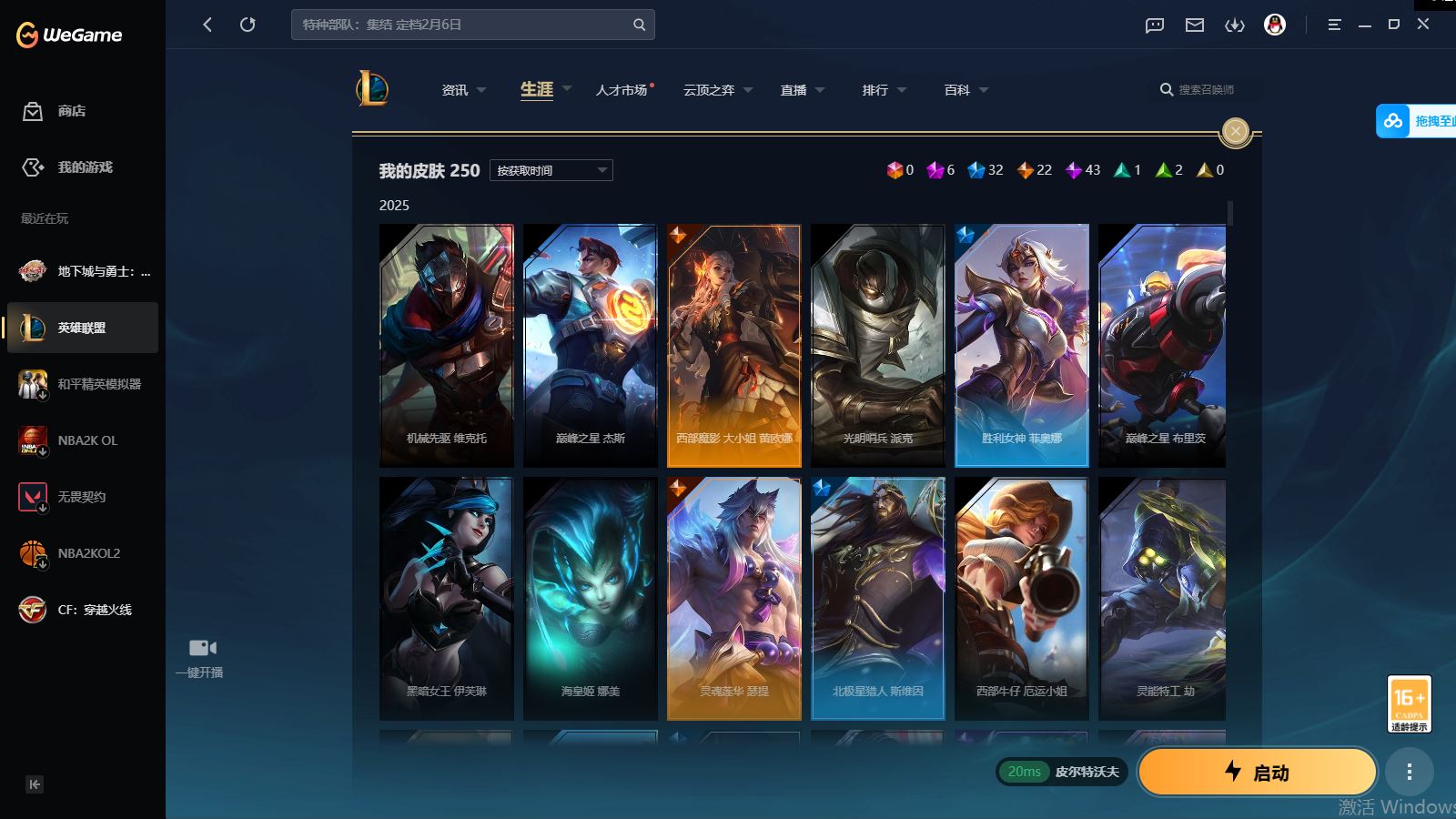 【账号佳】 【可二次实名】【kf4019】皮尔特沃夫250皮肤6神话32限定22传说171英雄,45万蓝色精萃