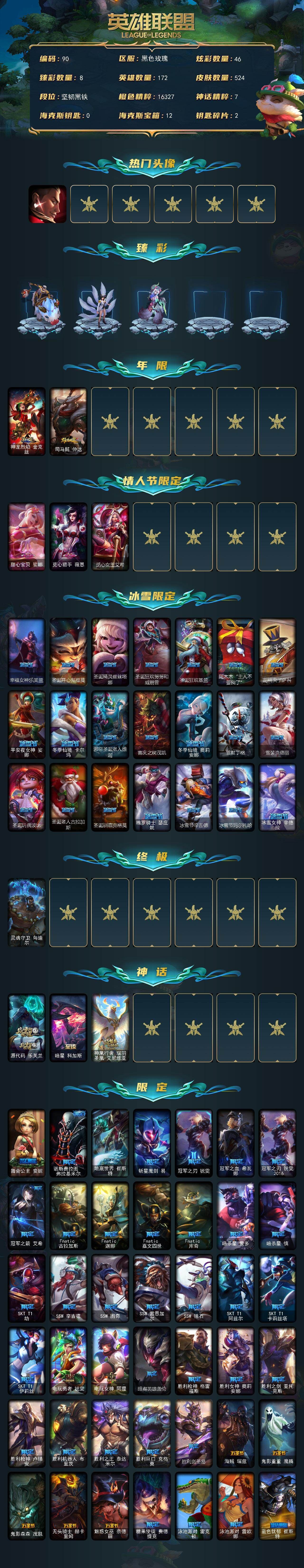 【账号佳】 【可二次实名】游戏等级:1595 区服信息:黑色玫瑰 单双排段位:荣耀黄金 英雄数量:172 皮肤数量:1758 炫彩数量:1501 臻彩数量:105 神话数量:147 云顶神话数量:6 游戏点卷:393 神话精粹:2 蓝色精萃:78129 橙色精粹:1216365 钥匙:7 宝箱:7 【重要头像】星守阿狸 双城之战金克丝手办 破碎金克丝头像 云顶青花瓷刀妹 云顶战斗学院伊泽瑞尔 云顶古琴娑娜 至爱的鹿 爱意绵绵 爱情之歌 心型钥匙 觅心游侠卢锡安 觅心之翼奎因 雪花 银河魔装机神安妮 大家伙 最佳宠物 两仪无极 萨勒芬妮超级巨星 萨勒芬妮独立音乐人 春晖神女拉克丝 寒格薇 我麦是开的么 魔女丽桑卓炫彩 魔女艾希炫彩 万圣节卡特琳娜 青花瓷拉克丝炫彩 击拳 救生圈 KDA萨勒芬妮 小崎 塞巴斯蒂安 星守卡莎 星守卡莎炫彩 EDG厄斐琉斯 EDG佛耶戈 EDG格雷福斯 EDG悠米 EDG佐伊 星守金克丝炫彩 灵魂莲华辛德拉 灵魂莲华辛德拉炫彩 灵魂莲华索拉卡 灵魂莲华索拉卡炫彩 灵魂莲华厄斐琉斯 灵魂莲华厄斐琉斯炫彩 灵魂莲华崔丝塔娜 幼犬内瑟斯 幼犬沃里克 青花瓷千珏炫彩 青花瓷丽桑卓炫彩 青花瓷阿木木炫彩 北极星守望者佐伊 北极星守望者佐伊炫彩 北极星神黛安娜 北极星神黛安娜炫彩 沐浴震惊 可爱悠米 可爱安妮 剪纸仙灵艾瑞莉娅 剪纸仙灵艾瑞莉娅炫彩 剪纸仙灵希维尔 剪纸仙灵希维尔炫彩 烈焰美人薇恩炫彩 烈焰仙子黛安娜炫彩 披萨鸡 送披萨的小姐姐希维尔 神龙烈焰金克丝炫彩 招财进宝提莫炫彩 西部魔影莎弥拉炫彩 剪纸仙灵婕拉 剪纸仙灵婕拉炫彩 虎头虎脑崔丝塔娜炫彩 福运魄罗 战斗学院伊泽瑞尔神话炫彩 真实伤害艾克 美猴王孙悟空 冠军之箭艾希凯旋盛装 不错哦 圣诞捣蛋鬼金克丝 至臻剪纸仙灵希维尔 至臻青花瓷丽桑卓 至臻太空律动娜美 至臻海珀利安小队迦娜 至臻星之守护者辛德拉 至臻海之歌萨勒芬妮 至臻战斗学院蕾欧娜 至臻福牛守护者菲奥娜 至臻女帝黛安娜 至臻星之守护者索拉卡 至臻KDA卡莎 至臻灵魂莲华提莫 至臻奥术师佐伊 至臻魔女婕拉 真实伤害艾克 水晶圣骑塔利亚炫彩头 水晶圣骑艾希头 水晶圣骑蕾欧娜炫彩头 水晶圣骑蕾欧娜头 灰烬慎头像 【重要皮肤】联盟不朽阿狸签名版 殿堂传奇阿狸 双城之战2破碎者金克丝 金蛇巨星瑟提 机神玄武盖伦至臻 战斗学院奇亚娜至臻 凯旋将军德莱厄斯至臻 剪纸仙灵卡西奥佩娅至臻 黑色玫瑰假面舞会卡特琳娜至臻 双城之战2指挥官凯特琳至臻 狼神英灵斯维因至臻 暗星女王黛安娜至臻 魔域梦魇泽丽至臻 T1杰斯至臻 幻灵狮心蕾欧娜至臻 人工智能悠米至臻 至高天凯尔至臻 西部魔影伊芙琳至臻 青花瓷千珏至臻 天龙之子伊泽瑞尔至臻 神龙尊者比翼之龙洛至臻 北极星钢影卡蜜尔至臻 心之钢永恩至臻 魔女阿卡丽至臻 魂蔷薇烈娜塔至臻 玉剑传说琴仙子至臻 斗魂觉醒萨科至臻 斗魂觉醒派克至臻 DRX亚托克斯至臻 墨之影武者亚索至臻 花仙使者卡特琳娜至臻 绝息圣堂厄运小姐至臻 剪纸仙灵希维尔至臻 青花瓷丽桑卓至臻 北极星使者沃里克至臻 太空律动魔音海妖娜美至臻 至高天奎桑提至臻 灵魂莲华易至臻 海珀利安小队X09星环灵风迦娜至臻 星之守护者辛德拉至臻 星之守护者艾克至臻 海之歌萨勒芬妮至臻 西部魔影猎天使恶魔泰隆至臻 月蚀骑士赛娜至臻 幻灵战斗猫金克丝至臻 青花瓷拉克丝至臻 神凰行者烈羽焰凰霞至臻 魅惑女巫莫甘娜至臻 女帝黛安娜至臻 战斗学院蕾欧娜至臻 太空律动璐璐至臻 魔女婕拉至臻 魔女乐芙兰至臻 奥术师佐伊至臻 未来战士卢锡安至臻 真实伤害亚索至臻 真实伤害赛娜至臻 星之守护者索拉卡至臻 灵魂莲华提莫至臻 灵能特工伊泽瑞尔至臻 福牛守护者菲奥娜至臻 源计划逆流塞拉斯至臻 源计划阴劫至臻 暗星墨菲特至臻 神龙尊者炎龙瑟提至臻 黑夜使者凯隐至臻 神龙尊者均衡之龙沃利贝尔至臻 征服者贾克斯至臻 飞升战神潘森至臻 焰执事布兰德至臻 KDA二代卡莎至臻 KDA一代卡莎至臻 KDA卡莎2022至臻 KDA阿狸至臻 KDA阿狸2022至臻 KDA伊芙琳至臻 KDA伊芙琳2022至臻 KDA阿卡丽至臻 KDA阿卡丽2022至臻 战斗学院拉克丝至臻 烈焰美人薇恩至臻 烈焰美人薇恩2022至臻 电玩女神凯特琳至臻 魅惑女巫厄运小姐至臻 星之守护者妮蔻至臻 星之守护者妮蔻2022至臻 源计划正义艾瑞莉娅至臻 源计划正义艾瑞莉娅2022至臻 真实伤害奇亚娜至臻 真实伤害奇亚娜2022至臻 绒毛菲兹至臻 绒毛菲兹2022至臻 玉剑传说武剑仙至臻 玉剑传说武剑仙2022至臻 腥红之月亚托克斯至臻 腥红之月亚托克斯2022至臻 未来战士锤石至臻 黑夜使者李青至臻 黑夜使者李青2022至臻 签名版殿堂传奇乐芙兰 灭世天煞劫 超级COSPLAY粉丝妮蔻 超级电竞粉丝特朗德尔 超