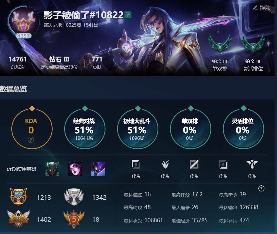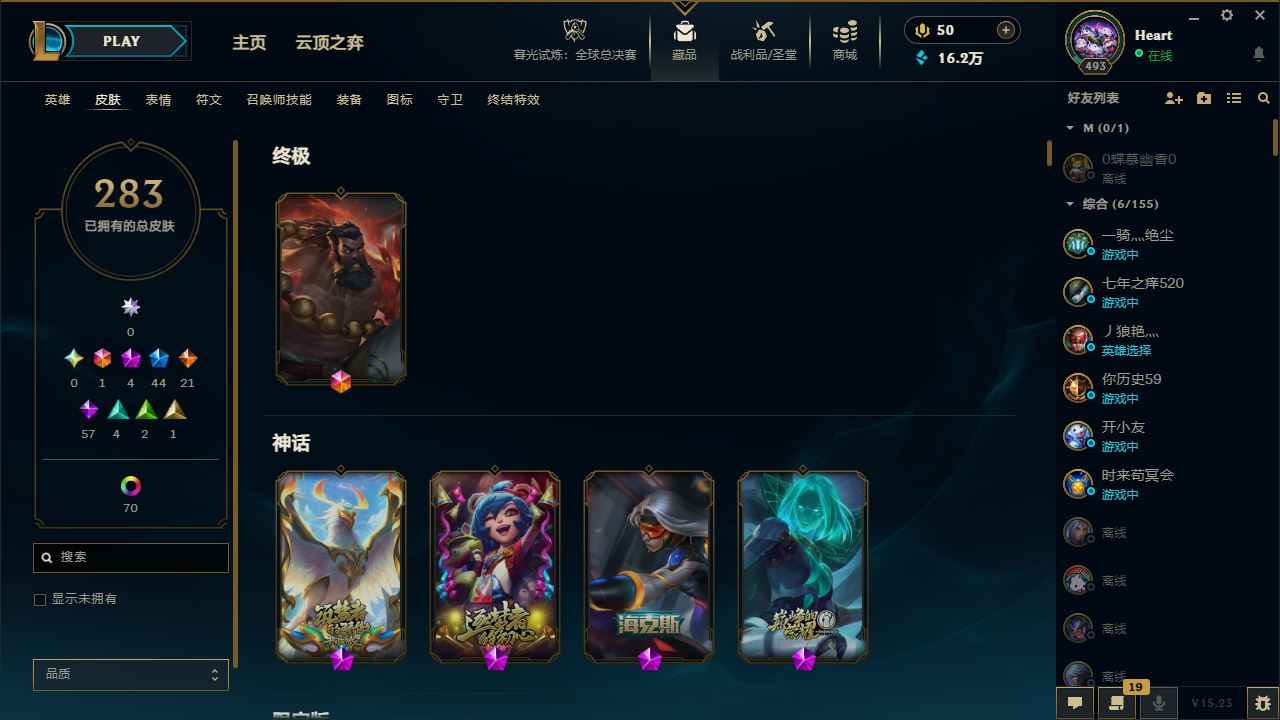 【账号佳】 【可包人脸】【kf3393】恕瑞玛122英雄46皮肤2神话7先出6传说