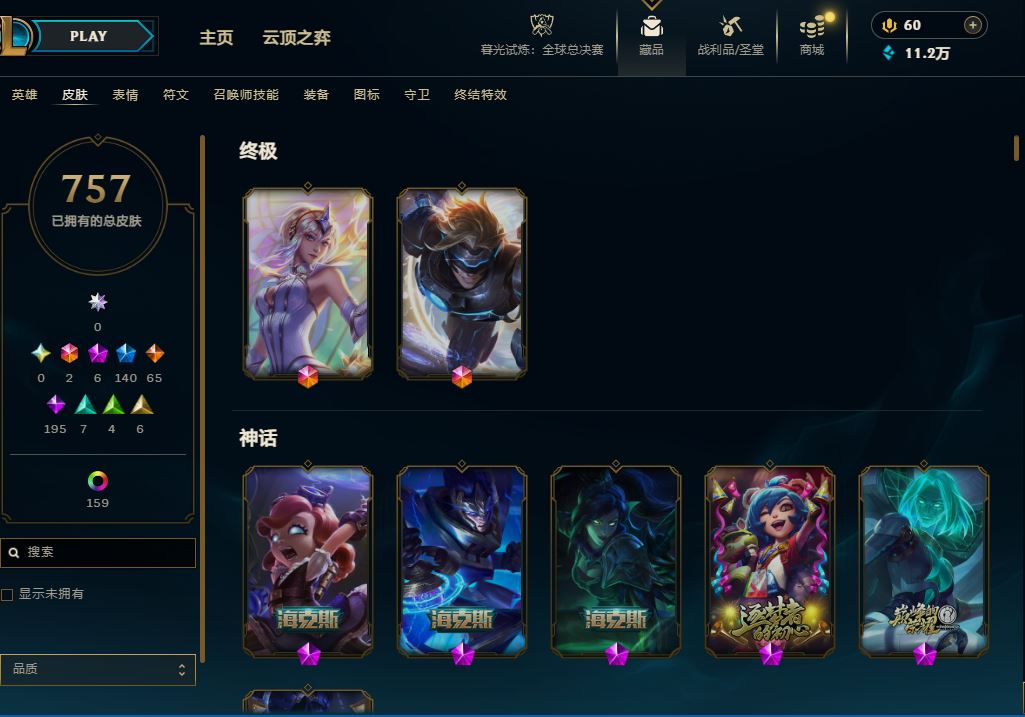 【账号佳】 【可包人脸】网1联盟757原皮+159炫彩+12臻彩