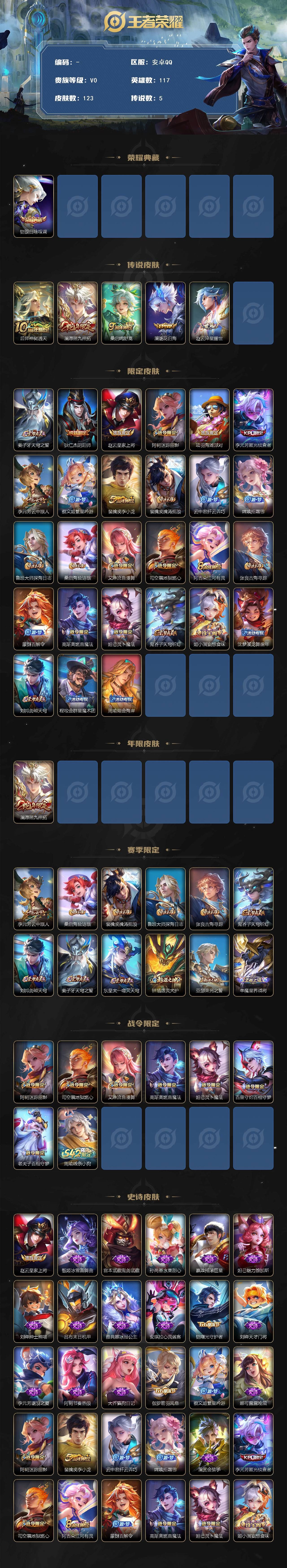 【账号佳】 【可包人脸】安卓Q V0 永恒钻石V段位 117英雄 123皮肤 1典藏 0珍品无双 0无双 0珍品传说 5传说 32史诗大区:安卓Q,营地:1808897137,贵族等级:0,【热门皮肤】:,【限定皮肤】:周瑜线条小狗,程咬金无双福将,甄姬花好人间,刘禅唤灵魔甲,赵云白执事,扁鹊救世之瞳,后羿神树通天,亚瑟荣光之誓,艾琳鹤鸣心笺,公孙离涂山容容,关羽龙腾万里,姜子牙星梦巡礼,阿古朵布丁狗之约,达摩大发明家,牛魔星界战将,钟馗虚灵犬护,花木兰兔女郎,张良灵野札记,赵云淬星耀世,澜愿照·九州拓,赵云皇家上将,刘备万事如意,姬小满妄想食味,西施雪境奇遇,猪八戒潮玩探月行,典韦铁骨偃魂,苍苍林狼骑,阿轲迷踪丽影,小乔丁香结,露娜哥特玫瑰,百里守约百相守梦,老夫子百相守梦,干将莫邪雾都夜雨,太乙真人劲辣红锅,吕布逐霄战戟,东皇太一噬灭天穹,安琪拉心灵骇客,裴擒虎李小龙,桑启鸣野蒿,大乔猫狗日记,盘古敬我三分,狄仁杰阴阳师,老夫子功夫老勺,姜子牙天穹之誓,周瑜熔金海岸,刘邦剑破天穹,程咬金群星魔术团,哪吒次元突破,狂铁特工战影,钟无艳春野之旅,沈梦溪龙舞盛年,阿轲爱心护理,赵云忍·炎影,韩信街头霸王,高渐离燃音魔法,嫦娥漠中幻影,宫本武藏未来纪元,蔡文姬繁星吟游,海诺时空谍影,妲己灵卜魔法,云中君纤云弄巧,鬼谷子天穹祈灯,澜逐花归海,项羽海滩派对,司空震地狱燃心,艾琳流音漫舞,后羿完美运算,嫦娥拒霜思,蒙犽百解令,刘备纽约教父,达摩拳王,兰陵王幻夜行动,阿古朵江河有灵,李元芳匿光侦查者,鲁班大师乓乓大师,钟无艳聚星闪耀,张良古海寻踪,鲁班大师探海日志,裴擒虎擒涛扼浪,桑启海盐诗旅【荣耀典藏】:铠银白咏叹调【截图或标题展示段位不代表实际段位,赛季更新等不可抗拒因素发生变化、时限道具不保证所剩时间,详情请看截图哦~】