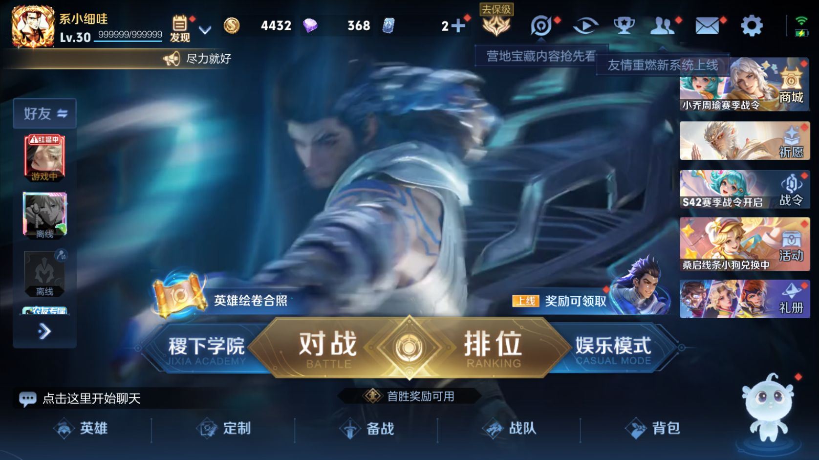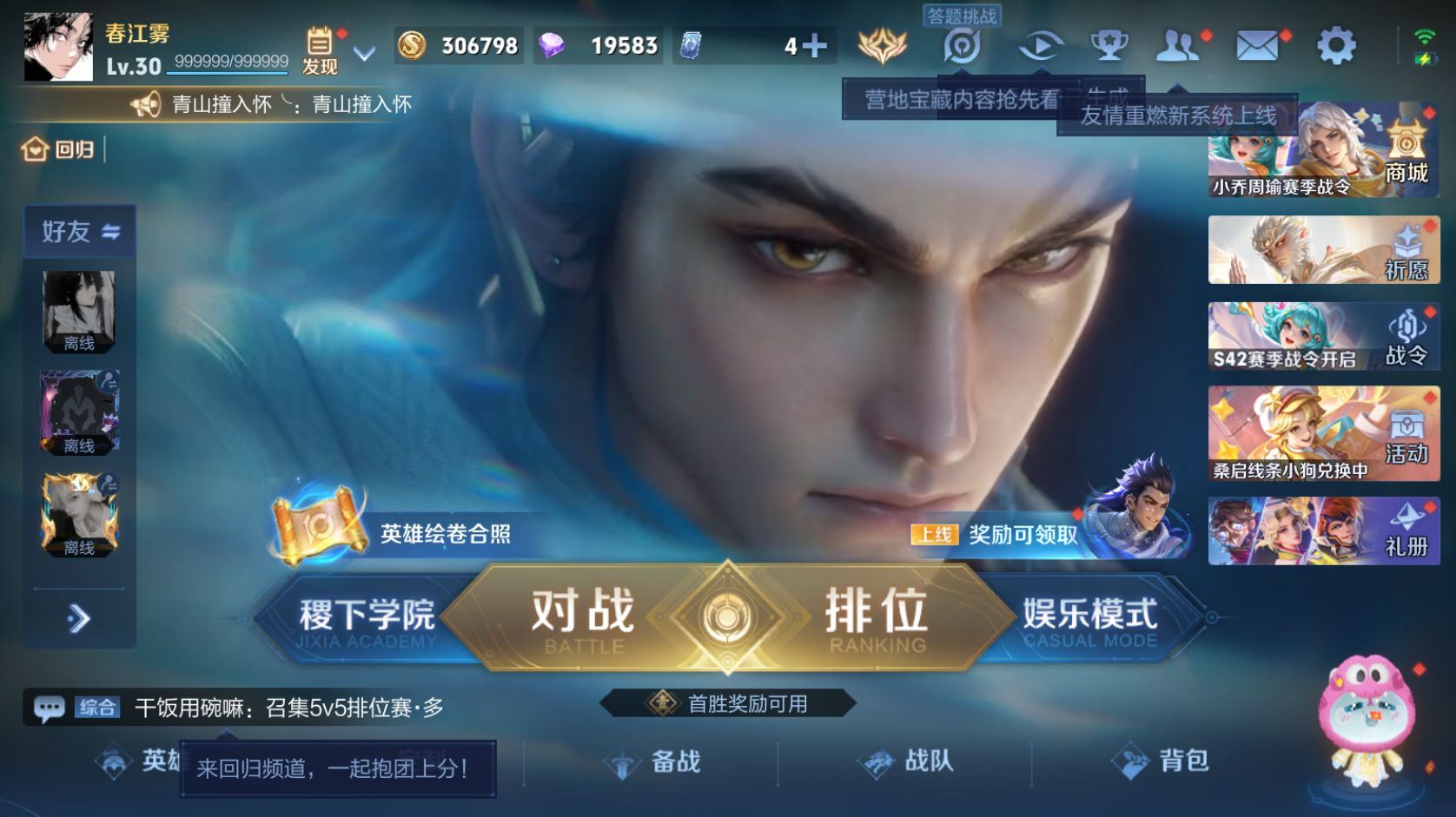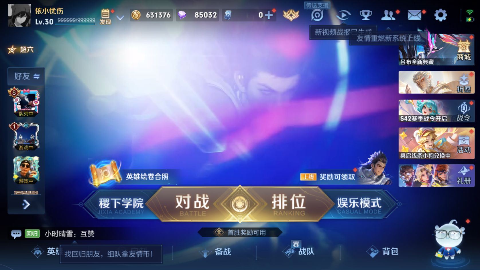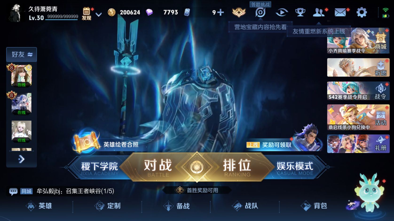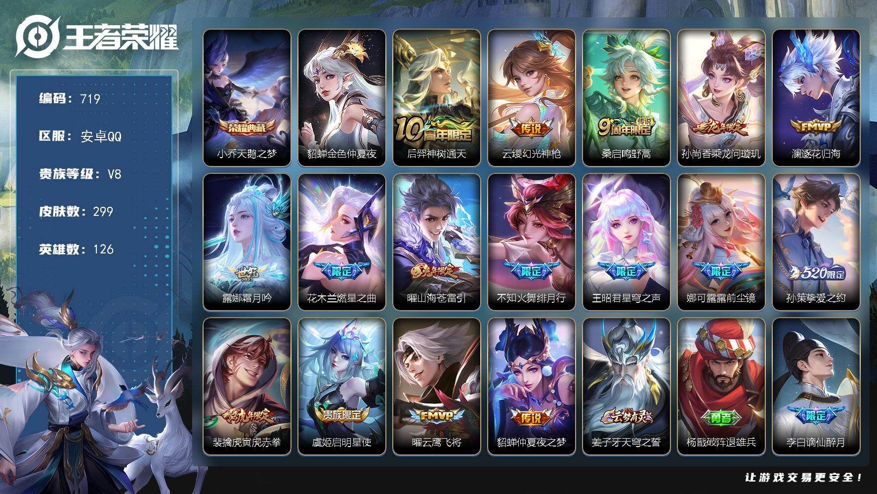 【账号佳】 【可二次实名】金33596营地487932877贵族8 2个万战!荣耀典藏2 无双1 珍品传说1 星传说4个 传说皮肤22 史诗皮肤80 皮肤数量314 皮肤价值:238404 英雄127