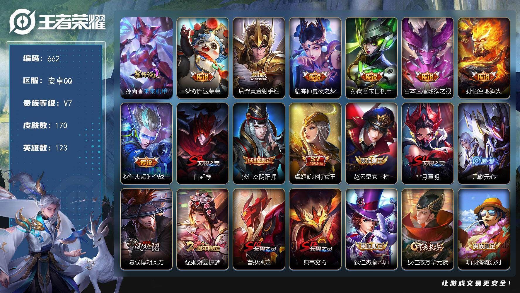 【账号佳】 【可二次实名】R50011 可二次安卓Q【营地:425045115】-V7-秩序白银III段位-123英雄-170皮肤-7传说-31史诗【传说皮肤】:梦奇胖达荣荣,后羿黄金射手座,貂蝉仲夏夜之梦,孙尚香末日机甲,宫本武藏地狱之眼,孙悟空地狱火,狄仁杰超时空战士【限定皮肤】:白起狰,狄仁杰阴阳师,虞姬凯尔特女王,赵云皇家上将,芈月重明,元歌无心,夏侯惇朔风刀,甄姬游园惊梦,曹操烛龙,典韦穷奇,狄仁杰魔术师,狄仁杰万华元夜,项羽海滩派对,老夫子醍醐杖,程咬金演武夺筹,孙悟空至尊宝,牛魔御旌,李元芳云中旅人,钟馗驱傩正仪,蔡文姬繁星吟游,太乙真人饕餮,鬼谷子原初探秘者,鬼谷子五谷丰年,苏烈千军破阵,百里玄策原初追逐者,弈星混沌棋,明世隐疑决卦,裴擒虎擒涛扼浪,狂铁御狮,米莱狄御霄,云中君纤云弄巧,盾山御銮,上官婉儿梁祝,嫦娥拒霜思,鲁班大师探海日志,桑启海盐诗旅,艾琳女武神,张良古海寻踪,蒙犽百解令,鬼谷子天穹祈灯,沈梦溪龙舞盛年,刘邦剑破天穹【赛季限定】:白起狰,芈月重明,夏侯惇朔风刀,曹操烛龙,典韦穷奇,狄仁杰万华元夜,老夫子醍醐杖,程咬金演武夺筹,张良古海寻踪,牛魔御旌,李元芳云中旅人,虞姬凯尔特女王,钟馗驱傩正仪,太乙真人饕餮,鬼谷子原初探秘者,苏烈千军破阵,百里玄策原初追逐者,弈星混沌棋,明世隐疑决卦,裴擒虎擒涛扼浪,狂铁御狮,米莱狄御霄,盾山御銮,鲁班大师探海日志,桑启海盐诗旅,鬼谷子天穹祈灯,刘邦剑破天穹【史诗皮肤】:鲁班七号电玩小子,露娜紫霞仙子,赵云皇家上将,赵云未来纪元,貂蝉圣诞恋歌,甄姬冰雪圆舞曲,狄仁杰魔术师,孙尚香水果甜心,嬴政暗夜贵公子,妲己魅力维加斯,墨子金属风暴,李白千年之狐,吕布末日机甲,韩信白龙吟,孙悟空至尊宝,花木兰水晶猎龙者,诸葛亮黄金分割率,甄姬游园惊梦,百里守约特工魅影,铠曙光守护者,李元芳逐浪之夏,狄仁杰鹰眼统帅,上官婉儿梁祝,蔡文姬繁星吟游,瑶遇见神鹿,百里玄策原初追逐者,云中君纤云弄巧,嫦娥拒霜思,鬼谷子五谷丰年,元歌无心,蒙犽百解令,各种道具详情看截图、低价出售找回包 赔、截图展示段位不代 表实际段位,如赛季更新等不可抗拒因素发生变化、时限道具不保证所剩时间、标题未写送点劵默认不送【卖号买号首选亿梦】
