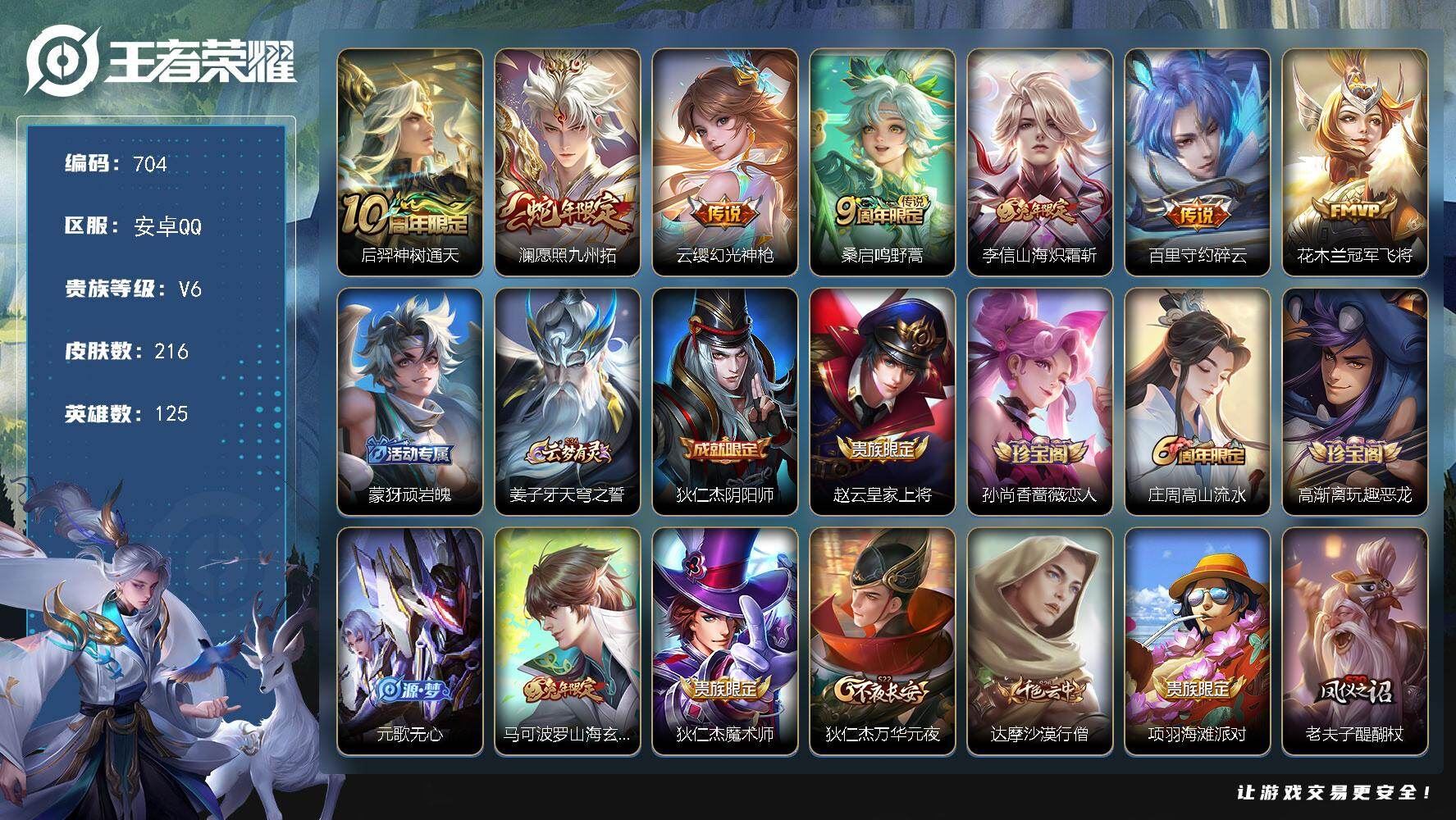 【账号佳】 【可二次实名】R50200 可二次安卓Q【营地:1707626697】-V6-最强王者段位-125英雄-216皮肤-7传说-51史诗【英雄全皮】:孙权全皮【传说皮肤】:后羿神树通天,澜愿照九州拓,云缨幻光神枪,桑启鸣野蒿,李信山海炽霜斩,百里守约碎云,花木兰冠军飞将【限定皮肤】:蒙犽顽岩魄,姜子牙天穹之誓,狄仁杰阴阳师,赵云皇家上将,孙尚香蔷薇恋人,庄周高山流水,高渐离玩趣恶龙,元歌无心,马可波罗山海玄木吟,狄仁杰魔术师,狄仁杰万华元夜,达摩沙漠行僧,项羽海滩派对,老夫子醍醐杖,程咬金演武夺筹,兰陵王金庭之子,李元芳云中旅人,钟馗驱傩正仪,鬼谷子原初探秘者,鬼谷子五谷丰年,苏烈千军破阵,百里玄策原初追逐者,弈星混沌棋,沈梦溪大漠名商,明世隐疑决卦,裴擒虎李小龙,裴擒虎擒涛扼浪,云中君纤云弄巧,李信山海炽霜斩,上官婉儿梁祝,嫦娥拒霜思,鲁班大师探海日志,桑启海盐诗旅,阿古朵江河有灵,张良古海寻踪,姬小满妄想食味,沈梦溪龙舞盛年【年限皮肤】:马可波罗山海玄木吟,李信山海炽霜斩【夺宝幸运值218】各种道具详情看截图、低价出售找回包 赔、截图展示段位不代 表实际段位,如赛季更新等不可抗拒因素发生变化、时限道具不保证所剩时间、标题未写送点劵默认不送【卖号买号首选亿梦】