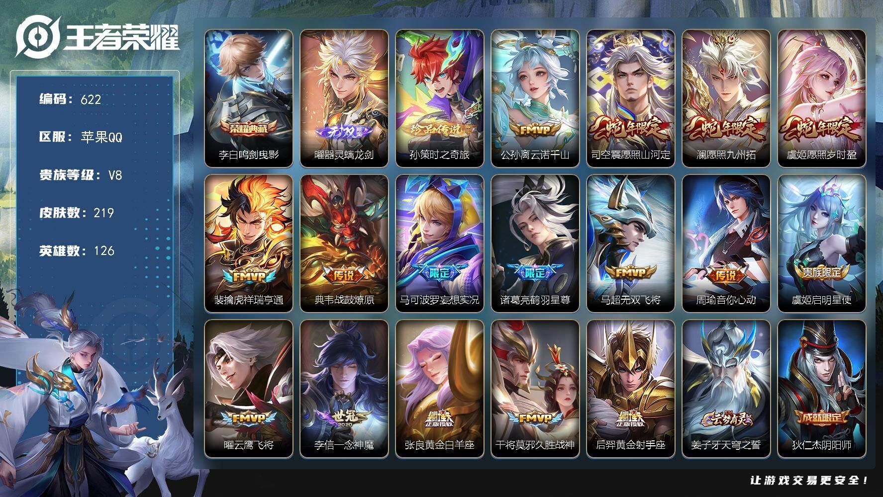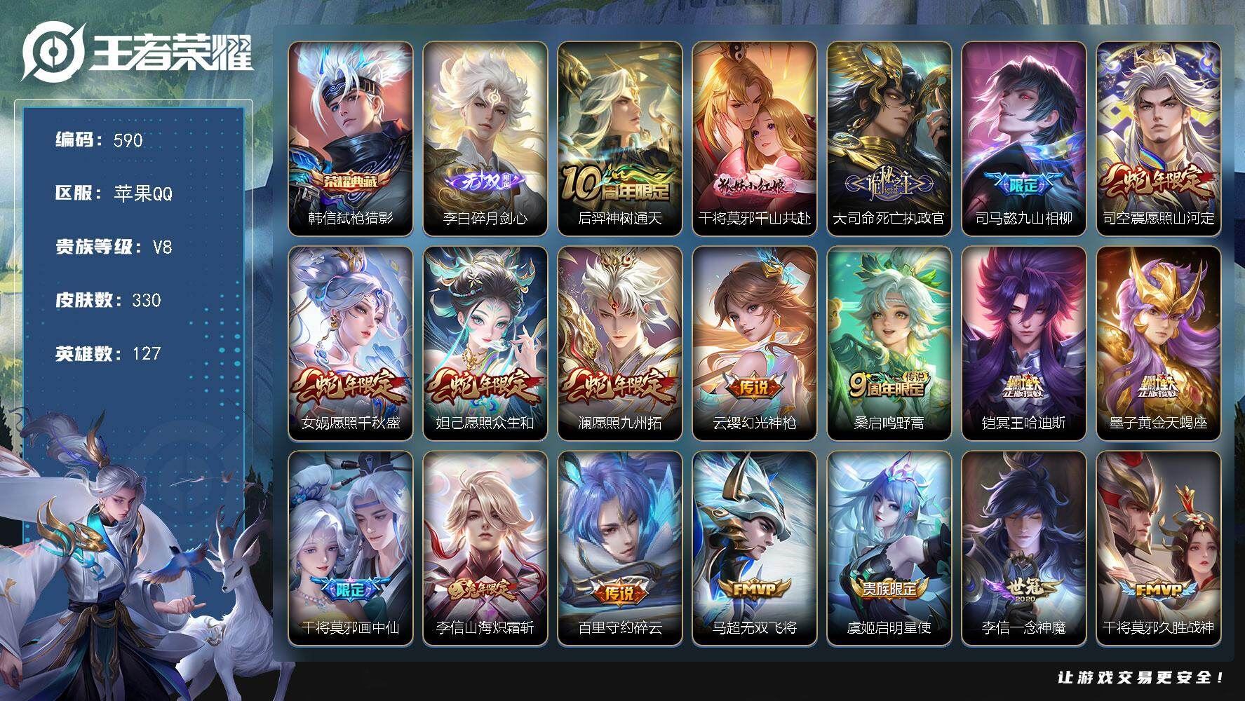 【账号佳】 【可二次实名】r49628 可二次 QQ 苹果Q-V8-最强王者段位-127英雄-330皮肤-1典藏皮肤-1无双-23传说-116史诗【英雄全皮】:司马懿全皮,孙权全皮,李信全皮,司空震全皮,戈娅全皮,影全皮【荣耀典藏】:韩信弑枪猎影【无双皮肤】:李白碎月剑心【传说皮肤】:后羿神树通天,干将莫邪千山共赴,大司命死亡执政官,司马懿九山相柳,司空震愿照山河定,女娲愿照千秋盛,妲己愿照众生和,澜愿照九州拓,云缨幻光神枪,桑启鸣野蒿,铠冥王哈迪斯,墨子黄金天蝎座,干将莫邪画中仙,李信山海炽霜斩,百里守约碎云,马超无双飞将,虞姬启明星使,李信一念神魔,干将莫邪久胜战神,达摩黄金狮子座,宫本武藏地狱之眼,孙悟空地狱火,吕布天魔缭乱 【史诗皮肤】:鲁班七号电玩小子,项羽苍穹之光,露娜紫霞仙子,阿轲暗夜猫娘,赵云皇家上将,赵云未来纪元,貂蝉圣诞恋歌,甄姬冰雪圆舞曲,王昭君偶像歌手,狄仁杰魔术师,廉颇地狱岩魂,宫本武藏鬼剑武藏,孙尚香蔷薇恋人,孙尚香水果甜心,嬴政摇滚巨星,妲己魅力维加斯,墨子龙骑士,墨子金属风暴,吕布圣诞狂欢,刘禅绅士熊喵,曹操幽灵船长,李白千年之狐,吕布末日机甲,孙悟空至尊宝,花木兰水晶猎龙者,刘邦德古拉伯爵,夏侯惇乘风破浪,小乔缤纷独角兽,兰陵王暗隐猎兽者,诸葛亮黄金分割率,亚瑟心灵战警,雅典娜冰冠公主,百里守约特工魅影,铠曙光守护者,李元芳逐浪之夏,程咬金功夫厨神,白起星夜王子,阿轲节奏热浪,孙策猫狗日记,干将莫邪冰霜恋舞曲,孙悟空大圣娶亲,伽罗箭羽风息,鲁班七号狮舞东方,狄仁杰鹰眼统帅,公孙离无限星赏官,兰陵王驯魔猎人,李元芳银河之约,娜可露露晚萤,不知火舞魅语,橘右京修罗,百里玄策原初追逐者,裴擒虎李小龙,云中君纤云弄巧,老夫子航海奇遇记,杨戬天秀启明,干将莫邪真爱魔法,沈梦溪月团寄思,钟馗乐园奇幻夜,孙悟空孙行者,猪八戒猪悟能,庄周高山流水,司马懿暗渊魔法,嫦娥拒霜思,黄忠火炮绅士,雅典娜黎明之约,韩信傲雪梅枪,夏洛特永昼,赵云百木心枪,澜赏金猎手,明世隐吟游魔法,狂铁电玩高手,钟无艳超时空战士,鬼谷子五谷丰年,元歌无心,梦奇顽趣,暃星界游侠,马可波罗山海玄木吟,扁鹊奇幻香踪,刘禅电玩爆裂旋风,戈娅驭风魔法,司空震地狱燃心,阿古朵江河有灵,蒙犽百解令,妲己灵卜魔法,高渐离燃音魔法,蒙恬荣光圣徽,伽罗琥珀纪元,姬小满妄想食味,鲁班七号蔬乡物语,镜青焰无极,海诺心动手记,芈月浮光幕影,蔡文姬夏日便利店,蒙犽顽岩魄,暃埋骨钱,姬小满战舞者,亚连破空之剑,马可波罗星界特工,百里守约百相守梦,牛魔星界战将,孙膑茶境仙,白起苍鳞隐世,赵怀真器灵浮梦炉,狄仁杰绮世丹青,阿轲化蝶舞,刘禅鸭鸭历险记,狂铁龙之律动,老夫子藏狐褐绒,后羿石田雨龙,周瑜百相守梦,黄忠百相守梦,弈星守夜人,公孙离涂山容容,莱西奥光弋星穹,兰陵王傩神司,百里玄策罗小黑战记,女娲万灵启世 【内测皮肤】:孙尚香蔷薇恋人,狂铁特工战影【营地ID】:1842718330 各种道具详情看截图、低价出售找回包 赔、截图展示段位不代 表实际段位,如赛季更新等不可抗拒因素发生变化、时限道具不保证所剩时间、标题未写送点劵默认不送【卖号买号首选亿梦】