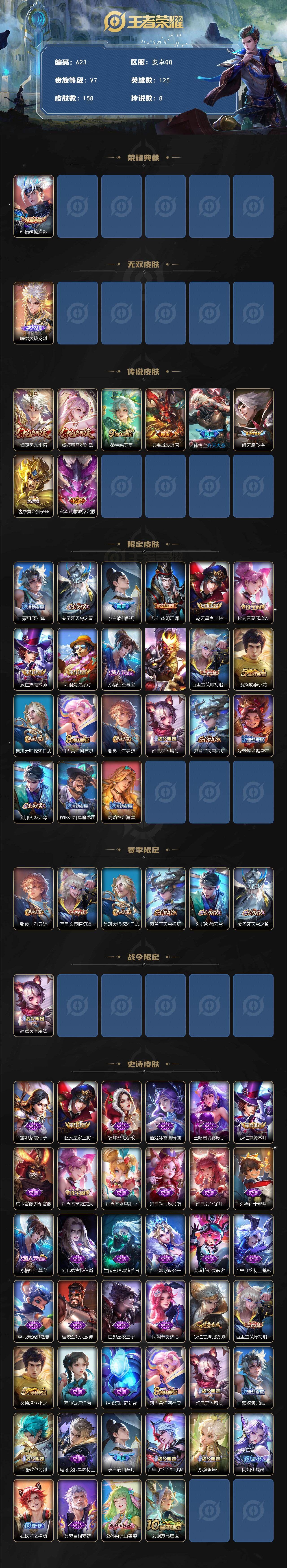 【账号佳】 【可二次实名】r49698 可二次安卓Q-V7-最强王者段位-125英雄-158皮肤-1典藏皮肤-1无双-8传说-39史诗【英雄全皮】:孙权全皮,影全皮【荣耀典藏】:韩信弑枪猎影【无双皮肤】:曜器灵螭龙剑【传说皮肤】:澜愿照九州拓,虞姬愿照岁时盈,桑启鸣野蒿,典韦战鼓燎原,孙悟空齐天大圣,曜云鹰飞将,达摩黄金狮子座,宫本武藏地狱之眼【限定皮肤】:蒙犽顽岩魄,姜子牙天穹之誓,李白谪仙醉月,狄仁杰阴阳师,赵云皇家上将,孙尚香蔷薇恋人,狄仁杰魔术师,项羽海滩派对,孙悟空至尊宝,孙悟空齐天大圣,百里玄策原初追逐者,裴擒虎李小龙,鲁班大师探海日志,阿古朵江河有灵,张良古海寻踪,妲己灵卜魔法,鬼谷子天穹祈灯,沈梦溪龙舞盛年,刘邦剑破天穹,程咬金群星魔术团,周瑜熔金海岸【赛季限定】:张良古海寻踪,百里玄策原初追逐者,鲁班大师探海日志,鬼谷子天穹祈灯,刘邦剑破天穹,姜子牙天穹之誓【战令限定】:妲己灵卜魔法【史诗皮肤】:露娜紫霞仙子,赵云皇家上将,貂蝉圣诞恋歌,甄姬冰雪圆舞曲,王昭君偶像歌手,狄仁杰魔术师,宫本武藏鬼剑武藏,孙尚香蔷薇恋人,孙尚香水果甜心,妲己魅力维加斯,妲己女仆咖啡,刘禅绅士熊喵,孙悟空至尊宝,刘邦德古拉伯爵,兰陵王暗隐猎兽者,雅典娜冰冠公主,安琪拉心灵骇客,百里守约特工魅影,李元芳逐浪之夏,铠曙光守护者,蔡文姬舞动绿茵,白起星夜王子,阿轲节奏热浪,狄仁杰鹰眼统帅,百里玄策原初追逐者,裴擒虎李小龙,西施诗语江南,钟馗乐园奇幻夜,阿古朵江河有灵,妲己灵卜魔法,蒙犽顽岩魄,亚连破空之剑,马可波罗星界特工,李白谪仙醉月,百里守约百相守梦,孙膑茶境仙,阿轲化蝶舞,狂铁龙之律动,黄忠百相守梦,公孙离涂山容容,女娲万灵启世【营地 ID】:1659258788各种道具详情看截图、低价出售找回包 赔、截图展示段位不代 表实际段位,如赛季更新等不可抗拒因素发生变化、时限道具不保证所剩时间、标题未写送点劵默认不送【卖号买号首选亿梦】