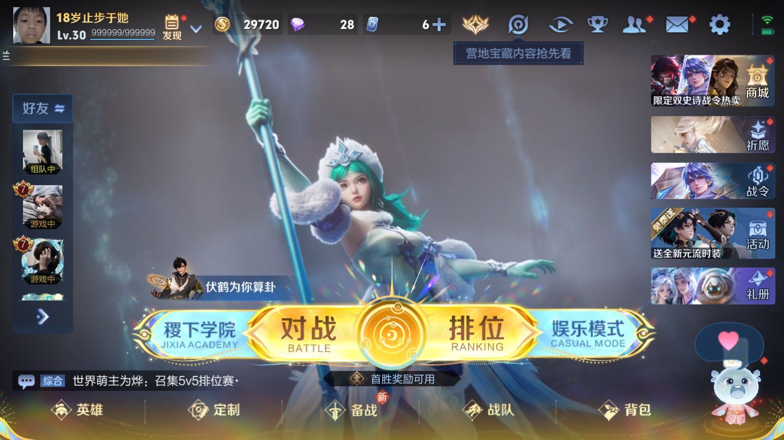 【账号佳】 【可二次实名】R45031 可二次 安卓QQ 可排位 营地ID《1839385705》《V5》《夺宝110》《120英雄 112皮肤》《1传说 38史诗》《李信山海炽霜斩》《阿古朵江河有灵 鬼谷子五谷丰年鹏庄周高山流水 孙悟空孙行者 马超神威 杨玉环遇见飞天 花木兰水晶猎龙者 》各种道具详情看截图、低价出售找回包 赔、截图展示段位不带表实际段位,如赛季更新等不可抗拒因素发生变化、时限道具不保证所剩时间、标题未写送点券默认不送【卖号买号首选亿梦】