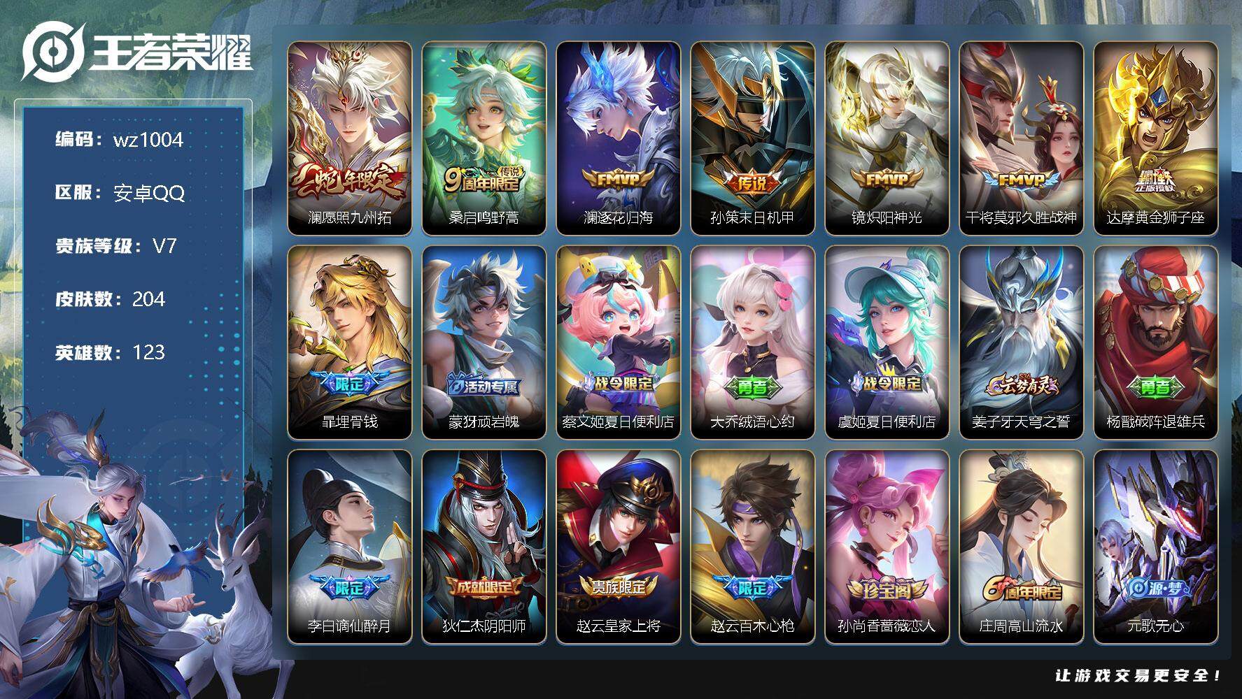 【账号佳】 【可二次实名】【wz1004】【商品标题】:安卓Q-V7-永恒钻石III段位-123英雄-204皮肤-0典藏-0珍品无双-0无双-0珍品传说-7传说-70史诗 【传说皮肤】:澜愿照九州拓,桑启鸣野蒿,澜逐花归海,孙策末日机甲,镜炽阳神光,干将莫邪久胜战神,达摩黄金狮子座 【限定皮肤】:暃埋骨钱,蒙犽顽岩魄,蔡文姬夏日便利店,大乔绒语心约,虞姬夏日便利店,姜子牙天穹之誓,杨戬破阵退雄兵,李白谪仙醉月,狄仁杰阴阳师,赵云皇家上将,赵云百木心枪,孙尚香蔷薇恋人,庄周高山流水,元歌无心,马可波罗山海玄木吟,狄仁杰魔术师,达摩沙漠行僧,项羽海滩派对,兰陵王驯魔猎人,兰陵王金庭之子,李元芳银河之约,李元芳云中旅人,鬼谷子五谷丰年,苏烈千军破阵,沈梦溪大漠名商,裴擒虎擒涛扼浪,云中君纤云弄巧,嫦娥拒霜思,嫦娥暖冬兔眠,鲁班大师探海日志,桑启海盐诗旅,暃星界游侠,赵怀真鹤归松栖,司空震地狱燃心,阿古朵江河有灵,张良古海寻踪,蒙犽百解令,高渐离燃音魔法,妲己灵卜魔法,鬼谷子天穹祈灯,伽罗琥珀纪元,姬小满妄想食味,沈梦溪龙舞盛年,鲁班七号蔬乡物语,李元芳蔬乡物语,刘邦剑破天穹,程咬金群星魔术团,镜青焰无极,项羽苍威无极,刘备异域游侠,周瑜熔金海岸 【年限皮肤】:马可波罗山海玄木吟 【赛季限定】:达摩沙漠行僧,兰陵王金庭之子,张良古海寻踪,李元芳云中旅人,苏烈千军破阵,沈梦溪大漠名商,裴擒虎擒涛扼浪,鲁班大师探海日志,桑启海盐诗旅,鬼谷子天穹祈灯,刘邦剑破天穹,姜子牙天穹之誓 【战令限定】:蔡文姬夏日便利店,虞姬夏日便利店,兰陵王驯魔猎人,李元芳银河之约,嫦娥暖冬兔眠,司空震地狱燃心,暃星界游侠,高渐离燃音魔法,妲己灵卜魔法,鲁班七号蔬乡物语,李元芳蔬乡物语,镜青焰无极,项羽苍威无极 【史诗皮肤】:露娜紫霞仙子,赵云皇家上将,赵云未来纪元,甄姬冰雪圆舞曲,王昭君偶像歌手,狄仁杰魔术师,宫本武藏鬼剑武藏,孙尚香蔷薇恋人,孙尚香水果甜心,嬴政暗夜贵公子,妲己魅力维加斯,墨子金属风暴,刘禅绅士熊喵,曹操幽灵船长,吕布末日机甲,张飞乱世虎臣,花木兰水晶猎龙者,刘邦德古拉伯爵,夏侯惇乘风破浪,小乔缤纷独角兽,兰陵王暗隐猎兽者,雅典娜冰冠公主,百里守约特工魅影,铠曙光守护者,程咬金功夫厨神,白起星夜王子,阿轲节奏热浪,孙策猫狗日记,伽罗箭羽风息,狄仁杰鹰眼统帅,公孙离无限星赏官,兰陵王驯魔猎人,李元芳银河之约,小乔青蛇,橘右京修罗,云中君纤云弄巧,百里玄策热力回旋,杨戬天秀启明,庄周高山流水,司马懿暗渊魔法,嫦娥拒霜思,夏洛特永昼,赵云百木心枪,澜赏金猎手,鬼谷子五谷丰年,元歌无心,暃星界游侠,马可波罗山海玄木吟,赵怀真鹤归松栖,司空震地狱燃心,阿古朵江河有灵,蒙犽百解令,妲己灵卜魔法,高渐离燃音魔法,伽罗琥珀纪元,姬小满妄想食味,鲁班七号蔬乡物语,镜青焰无极,黄忠怒海争锋,蔡文姬夏日便利店,蒙犽顽岩魄,暃埋骨钱,姬小满战舞者,亚连破空之剑,李白谪仙醉月,赵怀真器灵浮梦炉,阿轲化蝶舞,狂铁龙之律动,周瑜百相守梦,黄忠百相守梦,公孙离涂山容容 【其他皮肤】:项羽海滩派对,韩信教廷特使,赵云白执事,赵云忍炎影,芈月红桃皇后,白起白色死神,扁鹊化身博士,扁鹊救世之瞳,宫本武藏未来纪元,孙膑天使之翼,妲己少女阿狸,典韦黄金武士,亚瑟死亡骑士,达摩拳王,花木兰兔女郎,张飞五福同心,甄姬花好人间,宫本武藏万象初新,后羿阿尔法小队,狄仁杰阴阳师,刘备纽约教父,关羽龙腾万里,钟无艳海滩丽影,老夫子功夫老勺,孙尚香沉稳之力,李白敏锐之力,鬼谷子幻乐之宴,苏烈坚韧之力,吕布野性能量,孙膑归虚梦演,沈梦溪鲨炮海盗猫,姜子牙炽热元素使,哪吒次元突破,狂铁特工战影,刘禅秘密基地,露娜瓷语鉴心,鲁班大师乓乓大师,苏烈千军破阵,达摩沙漠行僧,兰陵王金庭之子,刘禅唤灵魔甲,米莱狄契约魔法,沈梦溪大漠名商,蒙恬蔚蓝守将,李元芳云中旅人,刘备潮玩造梦师,桑启海盐诗旅,嫦娥暖冬兔眠,海月幻泉雾影,猪八戒潮玩探月行,牛魔牛运亨通,赵怀真太极少年,裴擒虎擒涛扼浪,太乙真人劲辣红锅,鲁班大师探海日志,李元芳妄想特派,张良古海寻踪,钟无艳聚星闪耀,曹操决胜大满贯,后羿完美运算,鬼谷子天穹祈灯,妲己灵卜魔法,海诺时空谍影,嫦娥漠中幻影,朵莉亚金色潮汐,廉颇功夫炙烤,亚瑟鸿运当头,沈梦溪龙舞盛年,钟无艳春野之旅,李元芳蔬乡物语,扁鹊无尽旅途,刘邦剑破天穹,盘古经纬探寻者,程咬金群星魔术团,项羽苍威无极,大司命暗都幽影,刘备异域游侠,杨戬破阵退雄兵,姜子牙天穹之誓,周瑜熔金海岸,虞姬夏日便利店,大乔绒语心约,孙悟空神迹守卫,东皇太一噬灭天穹,干将莫邪雾都夜雨,苍苍林狼骑,太乙真人谧流熔炉,典韦铁骨偃魂,西施雪境奇遇,姜子牙星梦巡礼,明世隐景韶洛都,戈娅玫蓝誓约,钟馗虚灵犬护,甄姬逆浪荇歌,孙策百相守梦,莱西奥踏浪烽翎,鬼