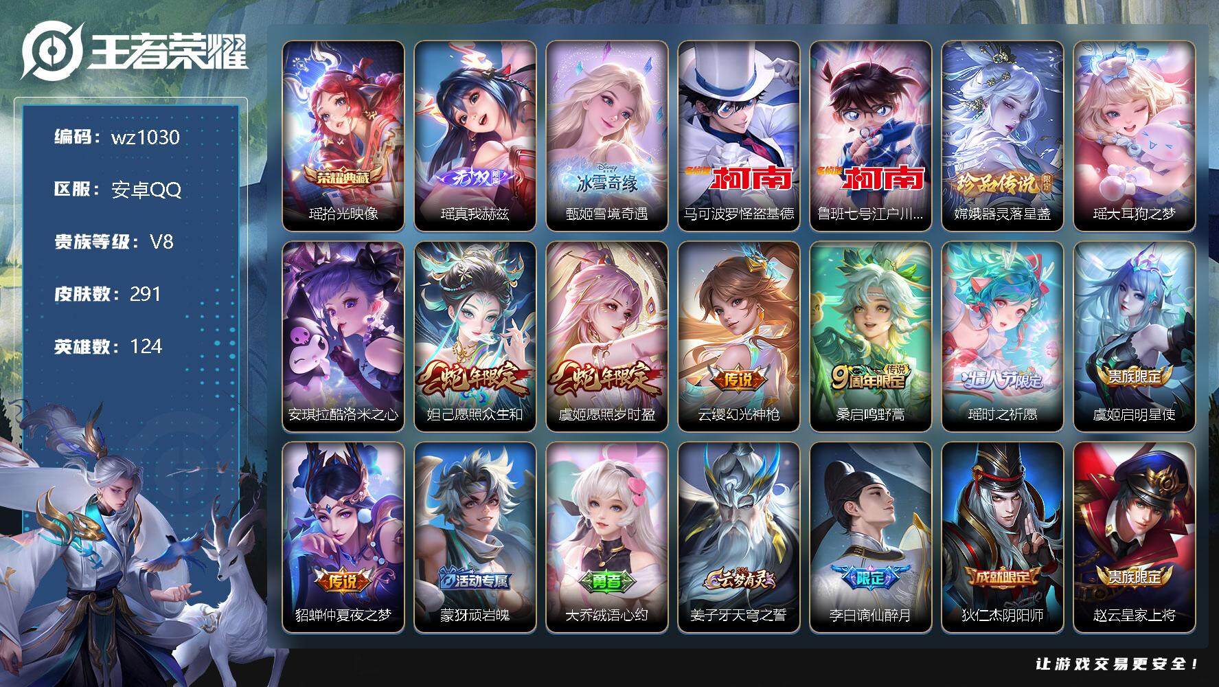 【账号佳】 【可二次实名】【wz1030】【商品标题】:安卓Q-V8-永恒钻石II段位-124英雄-291皮肤-1典藏-0珍品无双-2无双-5珍品传说-7传说-80史诗 【荣耀典藏】:瑶拾光映像 【无双皮肤】:瑶真我赫兹,甄姬雪境奇遇 【珍品传说】:马可波罗怪盗基德,鲁班七号江户川柯南,嫦娥器灵落星盏,瑶大耳狗之梦,安琪拉酷洛米之心 【传说皮肤】:妲己愿照众生和,虞姬愿照岁时盈,云缨幻光神枪,桑启鸣野蒿,瑶时之祈愿,虞姬启明星使,貂蝉仲夏夜之梦 【限定皮肤】:蒙犽顽岩魄,大乔绒语心约,姜子牙天穹之誓,李白谪仙醉月,狄仁杰阴阳师,赵云皇家上将,妲己时之彼端,妲己时之奇旅,孙尚香蔷薇恋人,元歌无心,夏侯惇朔风刀,甄姬游园惊梦,狄仁杰魔术师,狄仁杰万华元夜,达摩沙漠行僧,项羽海滩派对,貂蝉逐梦之音,安琪拉魔法小厨娘,韩信飞衡,王昭君午后时光,兰陵王金庭之子,后羿圣弓游侠,李元芳云中旅人,虞姬启明星使,杨戬潮玩骑兵,蔡文姬繁星吟游,鬼谷子原初探秘者,鬼谷子五谷丰年,弈星混沌棋,沈梦溪大漠名商,沈梦溪匿光破解者,裴擒虎李小龙,裴擒虎擒涛扼浪,瑶时之祈愿,瑶山海碧波行,云中君纤云弄巧,上官婉儿梁祝,上官婉儿神器万象笔,嫦娥拒霜思,嫦娥暖冬兔眠,桑启海盐诗旅,暃星界游侠,艾琳女武神,阿古朵江河有灵,张良古海寻踪,蒙犽百解令,高渐离燃音魔法,妲己灵卜魔法,鬼谷子天穹祈灯,伽罗琥珀纪元,沈梦溪龙舞盛年,李元芳蔬乡物语,刘邦剑破天穹,刘备异域游侠,周瑜熔金海岸 【年限皮肤】:韩信飞衡,瑶山海碧波行 【赛季限定】:夏侯惇朔风刀,狄仁杰万华元夜,达摩沙漠行僧,兰陵王金庭之子,张良古海寻踪,李元芳云中旅人,鬼谷子原初探秘者,弈星混沌棋,沈梦溪大漠名商,裴擒虎擒涛扼浪,桑启海盐诗旅,鬼谷子天穹祈灯,刘邦剑破天穹,姜子牙天穹之誓 【战令限定】:王昭君午后时光,后羿圣弓游侠,杨戬潮玩骑兵,嫦娥暖冬兔眠,暃星界游侠,高渐离燃音魔法,妲己灵卜魔法,李元芳蔬乡物语 【史诗皮肤】:露娜紫霞仙子,阿轲暗夜猫娘,赵云皇家上将,赵云未来纪元,貂蝉圣诞恋歌,甄姬冰雪圆舞曲,王昭君偶像歌手,狄仁杰魔术师,宫本武藏鬼剑武藏,孙尚香蔷薇恋人,孙尚香水果甜心,嬴政摇滚巨星,妲己魅力维加斯,妲己女仆咖啡,吕布圣诞狂欢,刘禅绅士熊喵,曹操幽灵船长,李白千年之狐,安琪拉魔法小厨娘,貂蝉逐梦之音,花木兰水晶猎龙者,刘邦德古拉伯爵,夏侯惇乘风破浪,小乔缤纷独角兽,兰陵王暗隐猎兽者,诸葛亮黄金分割率,甄姬游园惊梦,亚瑟心灵战警,雅典娜冰冠公主,安琪拉心灵骇客,百里守约特工魅影,铠曙光守护者,蔡文姬舞动绿茵,刘禅天才门将,李元芳逐浪之夏,白起星夜王子,阿轲节奏热浪,孙策猫狗日记,狄仁杰鹰眼统帅,公孙离无限星赏官,上官婉儿梁祝,蔡文姬繁星吟游,娜可露露晚萤,韩信飞衡,妲己时之彼端,大乔白蛇,小乔青蛇,瑶遇见神鹿,孙尚香时之恋人,裴擒虎李小龙,云中君纤云弄巧,杨戬天秀启明,嫦娥拒霜思,哪吒雪上飞焰,貂蝉唤灵魅影,妲己时之奇旅,鬼谷子五谷丰年,上官婉儿神器万象笔,元歌无心,暃星界游侠,瑶山海碧波行,沈梦溪匿光破解者,阿古朵江河有灵,蒙犽百解令,妲己灵卜魔法,高渐离燃音魔法,伽罗琥珀纪元,蒙犽顽岩魄,亚连破空之剑,李白谪仙醉月,艾琳陌上桑,孙膑茶境仙,弈星万物之道,赵怀真器灵浮梦炉,阿轲化蝶舞,刘禅鸭鸭历险记,狂铁龙之律动,云缨赞萌露比,黄忠百相守梦,朵莉亚幻珠鲛人,西施织梦人 【其他皮肤】:项羽海滩派对,韩信教廷特使,韩信街头霸王,露娜哥特玫瑰,阿轲爱心护理,赵云忍炎影,芈月红桃皇后,艾琳女武神,白起白色死神,武则天东方不败,扁鹊救世之瞳,安琪拉玩偶对对碰,孙膑天使之翼,姜子牙时尚教父,妲己少女阿狸,典韦黄金武士,亚瑟死亡骑士,达摩拳王,花木兰兔女郎,张飞五福同心,甄姬花好人间,后羿阿尔法小队,狄仁杰阴阳师,刘备汉昭烈帝,关羽龙腾万里,钟无艳海滩丽影,王昭君幻想奇妙夜,狂铁命运角斗场,老夫子功夫老勺,孙尚香沉稳之力,诸葛亮掌控之力,李白敏锐之力,鬼谷子幻乐之宴,苏烈坚韧之力,大乔守护之力,项羽科学大爆炸,明世隐虹云星官,庄周奇妙博物学,小乔丁香结,吕布野性能量,孙膑归虚梦演,沈梦溪鲨炮海盗猫,夏侯惇朔风刀,弈星混沌棋,哪吒次元突破,鲁班七号黑桃队长,鬼谷子原初探秘者,狄仁杰万华元夜,刘禅秘密基地,杨戬次元傲视,露娜瓷语鉴心,张良缤纷绘卷,盘古重装意志,鲁班大师乓乓大师,后羿圣弓游侠,典韦铁甲之心,马可波罗潮玩牛仔,达摩沙漠行僧,程咬金无双福将,刘邦虎啸剑宗,兰陵王金庭之子,米莱狄契约魔法,王昭君午后时光,沈梦溪大漠名商,蒙犽胡桃狂想曲,李元芳云中旅人,刘备潮玩造梦师,桑启海盐诗旅,嫦娥暖冬兔眠,海月幻泉雾影,猪八戒潮玩探月行,赵怀真太极少年,裴擒虎擒涛扼浪,杨戬潮玩骑兵,太乙真人劲辣红锅,莱西奥西部游侠,张良古海寻踪,钟无