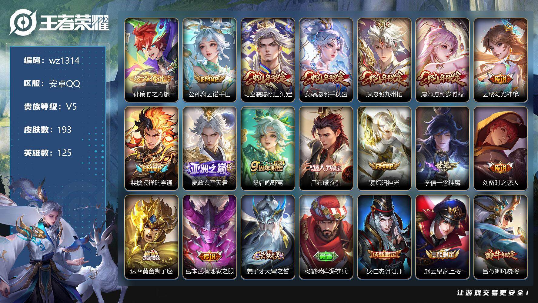 【账号佳】 【可二次实名】【wz1314】【商品标题】:安卓Q-V5-永恒钻石IV段位-125英雄-193皮肤-0典藏-0珍品无双-0无双-1珍品传说-15传说-50史诗 【珍品传说】:孙策时之奇旅 【传说皮肤】:公孙离云诺千山,司空震愿照山河定,女娲愿照千秋盛,澜愿照九州拓,虞姬愿照岁时盈,云缨幻光神枪,裴擒虎祥瑞亨通,嬴政玄雷天君,桑启鸣野蒿,吕布曦玄引,镜炽阳神光,李信一念神魔,刘备时之恋人,达摩黄金狮子座,宫本武藏地狱之眼 【限定皮肤】:姜子牙天穹之誓,杨戬破阵退雄兵,狄仁杰阴阳师,赵云皇家上将,吕布御风骁将,元歌无心,典韦岱宗,马可波罗山海玄木吟,狄仁杰魔术师,狄仁杰万华元夜,达摩星际陆战队,达摩沙漠行僧,项羽海滩派对,老夫子醍醐杖,关羽冰锋战神,程咬金演武夺筹,韩信傲雪梅枪,亚瑟潮玩骑士王,刘备百相守梦,李元芳银河之约,钟馗驱傩正仪,干将莫邪胡桃夹子,雅典娜单词大作战,鬼谷子原初探秘者,黄忠烈魂,苏烈千军破阵,裴擒虎李小龙,裴擒虎擒涛扼浪,云中君纤云弄巧,上官婉儿梁祝,嫦娥拒霜思,鲁班大师探海日志,桑启海盐诗旅,艾琳流音漫舞,司空震地狱燃心,阿古朵江河有灵,张良古海寻踪,蒙犽百解令,蒙恬荣光圣徽,高渐离燃音魔法,妲己灵卜魔法,鬼谷子天穹祈灯,吕布曦玄引,沈梦溪龙舞盛年,刘邦剑破天穹,程咬金群星魔术团,周瑜熔金海岸 【年限皮肤】:吕布御风骁将,典韦岱宗,黄忠烈魂,马可波罗山海玄木吟 【赛季限定】:狄仁杰万华元夜,达摩沙漠行僧,老夫子醍醐杖,程咬金演武夺筹,张良古海寻踪,钟馗驱傩正仪,鬼谷子原初探秘者,苏烈千军破阵,裴擒虎擒涛扼浪,鲁班大师探海日志,桑启海盐诗旅,鬼谷子天穹祈灯,蒙恬荣光圣徽,刘邦剑破天穹,姜子牙天穹之誓 【战令限定】:达摩星际陆战队,艾琳流音漫舞,亚瑟潮玩骑士王,李元芳银河之约,雅典娜单词大作战,司空震地狱燃心,高渐离燃音魔法,妲己灵卜魔法 【史诗皮肤】:露娜紫霞仙子,赵云皇家上将,貂蝉圣诞恋歌,甄姬冰雪圆舞曲,狄仁杰魔术师,宫本武藏鬼剑武藏,孙尚香水果甜心,妲己魅力维加斯,墨子金属风暴,曹操幽灵船长,李白千年之狐,张飞乱世虎臣,关羽冰锋战神,花木兰水晶猎龙者,刘邦德古拉伯爵,夏侯惇乘风破浪,兰陵王暗隐猎兽者,百里守约特工魅影,李元芳逐浪之夏,白起星夜王子,阿轲节奏热浪,伽罗箭羽风息,狄仁杰鹰眼统帅,公孙离无限星赏官,上官婉儿梁祝,李元芳银河之约,典韦岱宗,小乔青蛇,黄忠烈魂,裴擒虎李小龙,云中君纤云弄巧,吕布御风骁将,嫦娥拒霜思,韩信傲雪梅枪,元歌无心,马可波罗山海玄木吟,刘备百相守梦,司空震地狱燃心,阿古朵江河有灵,蒙犽百解令,周瑜雪夜绮愿,妲己灵卜魔法,高渐离燃音魔法,蒙恬荣光圣徽,亚连破空之剑,马可波罗星界特工,孙膑茶境仙,赵怀真器灵浮梦炉,阿轲化蝶舞,刘禅鸭鸭历险记,狂铁龙之律动 【其他皮肤】:项羽海滩派对,韩信街头霸王,达摩大发明家,赵云白执事,赵云忍炎影,芈月红桃皇后,扁鹊化身博士,宫本武藏未来纪元,孙膑天使之翼,妲己少女阿狸,典韦黄金武士,亚瑟死亡骑士,达摩拳王,花木兰兔女郎,张飞五福同心,甄姬花好人间,刘备万事如意,狄仁杰阴阳师,刘备纽约教父,刘备汉昭烈帝,关羽龙腾万里,钟无艳海滩丽影,宫本武藏霸王丸,王昭君幻想奇妙夜,狂铁命运角斗场,老夫子功夫老勺,孙尚香沉稳之力,鬼谷子幻乐之宴,明世隐虹云星官,庄周奇妙博物学,吕布野性能量,哪吒次元突破,鲁班七号黑桃队长,盾山圆桌骑士,老夫子醍醐杖,狂铁特工战影,廉颇无尽征程,鬼谷子原初探秘者,雅典娜单词大作战,狄仁杰万华元夜,亚瑟潮玩骑士王,刘禅秘密基地,露娜瓷语鉴心,达摩星际陆战队,程咬金演武夺筹,张良缤纷绘卷,钟馗驱傩正仪,鲁班大师乓乓大师,苏烈千军破阵,干将莫邪胡桃夹子,达摩沙漠行僧,蒙犽胡桃狂想曲,蒙恬蔚蓝守将,刘备潮玩造梦师,桑启海盐诗旅,猪八戒潮玩探月行,白起乐园追猎者,裴擒虎擒涛扼浪,太乙真人劲辣红锅,莱西奥西部游侠,鲁班大师探海日志,李元芳妄想特派,艾琳流音漫舞,张良古海寻踪,钟无艳聚星闪耀,亚连破局者,后羿完美运算,程咬金暖冬絮语,鬼谷子天穹祈灯,妲己灵卜魔法,嫦娥漠中幻影,朵莉亚金色潮汐,亚瑟鸿运当头,沈梦溪龙舞盛年,钟无艳春野之旅,刘邦剑破天穹,程咬金群星魔术团,杨戬破阵退雄兵,姜子牙天穹之誓,周瑜熔金海岸,孙悟空神迹守卫,盘古敬我三分,东皇太一噬灭天穹,亚瑟动物派对,苍苍林狼骑,太乙真人谧流熔炉,典韦铁骨偃魂,马超访茗客,影魅影绮裳,西施雪境奇遇,东皇太一金福满堂,达摩爆裂喵拳,少司缘灵卦秘语,戈娅玫蓝誓约,刘备浪漫序章,沈梦溪鸭鸭历险记,苏烈春野闲踪,小乔秘证寻踪,张良灵野札记,阿古朵布丁狗之约,露娜命运加冕,鲁班七号福禄兄弟,曹操超能战警,孙悟空西部大镖客,钟馗地府判官,李元芳特种部队,蔡文姬蔷薇王座,马可波罗激情绿茵,苍维京掠夺者,杨戬