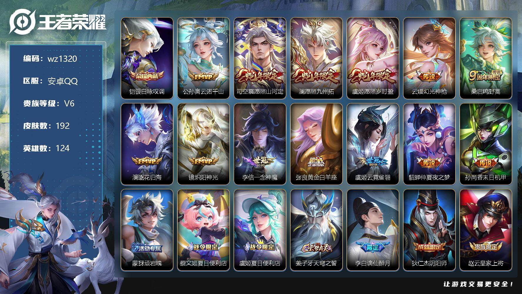 【账号佳】 【可二次实名】【wz1320】【商品标题】:安卓Q-V6-最强王者段位-124英雄-192皮肤-1典藏-0珍品无双-0无双-0珍品传说-13传说-60史诗 【荣耀典藏】:铠银白咏叹调 【传说皮肤】:公孙离云诺千山,司空震愿照山河定,澜愿照九州拓,虞姬愿照岁时盈,云缨幻光神枪,桑启鸣野蒿,澜逐花归海,镜炽阳神光,李信一念神魔,张良黄金白羊座,虞姬云霓雀翎,貂蝉仲夏夜之梦,孙尚香末日机甲 【限定皮肤】:蒙犽顽岩魄,蔡文姬夏日便利店,虞姬夏日便利店,姜子牙天穹之誓,李白谪仙醉月,狄仁杰阴阳师,赵云皇家上将,周瑜赤莲之焰,元歌无心,马可波罗山海玄木吟,狄仁杰魔术师,狄仁杰万华元夜,达摩沙漠行僧,项羽海滩派对,老夫子醍醐杖,兰陵王金庭之子,李元芳银河之约,李元芳云中旅人,鬼谷子原初探秘者,鬼谷子五谷丰年,苏烈千军破阵,弈星混沌棋,沈梦溪大漠名商,明世隐疑决卦,裴擒虎李小龙,裴擒虎擒涛扼浪,米莱狄御霄,西施玲珑珍味,鲁班大师探海日志,桑启海盐诗旅,戈娅驭风魔法,艾琳女武神,阿古朵江河有灵,张良古海寻踪,蒙犽百解令,蒙恬荣光圣徽,高渐离燃音魔法,妲己灵卜魔法,鬼谷子天穹祈灯,伽罗琥珀纪元,沈梦溪龙舞盛年,周瑜熔金海岸 【年限皮肤】:马可波罗山海玄木吟 【赛季限定】:狄仁杰万华元夜,达摩沙漠行僧,老夫子醍醐杖,兰陵王金庭之子,张良古海寻踪,李元芳云中旅人,鬼谷子原初探秘者,苏烈千军破阵,弈星混沌棋,沈梦溪大漠名商,明世隐疑决卦,裴擒虎擒涛扼浪,米莱狄御霄,鲁班大师探海日志,桑启海盐诗旅,鬼谷子天穹祈灯,蒙恬荣光圣徽,姜子牙天穹之誓 【战令限定】:蔡文姬夏日便利店,虞姬夏日便利店,周瑜赤莲之焰,李元芳银河之约,西施玲珑珍味,戈娅驭风魔法,高渐离燃音魔法,妲己灵卜魔法 【史诗皮肤】:鲁班七号电玩小子,项羽苍穹之光,露娜紫霞仙子,赵云皇家上将,貂蝉圣诞恋歌,狄仁杰魔术师,宫本武藏鬼剑武藏,孙尚香水果甜心,妲己魅力维加斯,妲己女仆咖啡,吕布圣诞狂欢,曹操幽灵船长,张飞乱世虎臣,韩信白龙吟,花木兰水晶猎龙者,刘邦德古拉伯爵,夏侯惇乘风破浪,小乔缤纷独角兽,兰陵王暗隐猎兽者,雅典娜冰冠公主,安琪拉心灵骇客,百里守约特工魅影,铠曙光守护者,蔡文姬舞动绿茵,刘禅天才门将,李元芳逐浪之夏,程咬金功夫厨神,白起星夜王子,孙策猫狗日记,狄仁杰鹰眼统帅,李元芳银河之约,橘右京修罗,裴擒虎李小龙,杨戬天秀启明,鬼谷子五谷丰年,元歌无心,马可波罗山海玄木吟,戈娅驭风魔法,百里守约真我赫兹,阿古朵江河有灵,蒙犽百解令,妲己灵卜魔法,高渐离燃音魔法,蒙恬荣光圣徽,伽罗琥珀纪元,蔡文姬夏日便利店,蒙犽顽岩魄,大司命东方月初,亚连破空之剑,马可波罗星界特工,李白谪仙醉月,百里守约百相守梦,牛魔星界战将,孙膑茶境仙,赵怀真器灵浮梦炉,苍狼魂孤将,阿轲化蝶舞,刘禅鸭鸭历险记,狂铁龙之律动,后羿石田雨龙,黄忠百相守梦 【其他皮肤】:项羽海滩派对,韩信教廷特使,韩信街头霸王,赵云忍炎影,艾琳女武神,牛魔西部大镖客,扁鹊化身博士,姜子牙时尚教父,妲己少女阿狸,典韦黄金武士,亚瑟死亡骑士,达摩拳王,花木兰兔女郎,张飞五福同心,甄姬花好人间,后羿阿尔法小队,狄仁杰阴阳师,刘备纽约教父,刘备汉昭烈帝,关羽龙腾万里,钟无艳海滩丽影,王昭君幻想奇妙夜,老夫子功夫老勺,孙尚香沉稳之力,鬼谷子幻乐之宴,苏烈坚韧之力,米莱狄御霄,明世隐虹云星官,吕布野性能量,孙膑归虚梦演,沈梦溪鲨炮海盗猫,周瑜赤莲之焰,弈星混沌棋,哪吒次元突破,鲁班七号黑桃队长,明世隐疑决卦,老夫子醍醐杖,狂铁特工战影,鬼谷子原初探秘者,狄仁杰万华元夜,鲁班大师乓乓大师,苏烈千军破阵,达摩沙漠行僧,程咬金无双福将,兰陵王金庭之子,米莱狄契约魔法,沈梦溪大漠名商,李元芳云中旅人,桑启海盐诗旅,海月幻泉雾影,猪八戒潮玩探月行,裴擒虎擒涛扼浪,太乙真人劲辣红锅,莱西奥西部游侠,鲁班大师探海日志,西施玲珑珍味,李元芳妄想特派,哪吒热血海滩,张良古海寻踪,钟无艳聚星闪耀,海月王牌新星,亚连破局者,曹操决胜大满贯,后羿完美运算,鬼谷子天穹祈灯,妲己灵卜魔法,海诺时空谍影,嫦娥漠中幻影,廉颇功夫炙烤,亚瑟鸿运当头,沈梦溪龙舞盛年,钟无艳春野之旅,姜子牙天穹之誓,周瑜熔金海岸,虞姬夏日便利店,孙悟空神迹守卫,盘古敬我三分,东皇太一噬灭天穹,老夫子百相守梦,干将莫邪雾都夜雨,苍苍林狼骑,太乙真人谧流熔炉,典韦铁骨偃魂,马超访茗客,影魅影绮裳,西施雪境奇遇,姜子牙星梦巡礼,少司缘灵卦秘语,明世隐景韶洛都,戈娅玫蓝誓约,刘备浪漫序章,钟馗虚灵犬护,沈梦溪鸭鸭历险记,苏烈春野闲踪,张良灵野札记,阿古朵布丁狗之约,露娜命运加冕,姬小满小满鸭,白起死霸装,甄姬逆浪荇歌,貂蝉异域舞娘,周瑜海军大将,后羿精灵王,李元芳特种部队,马可波罗激情绿茵,苍维京掠夺者,黄忠芝加哥教父,