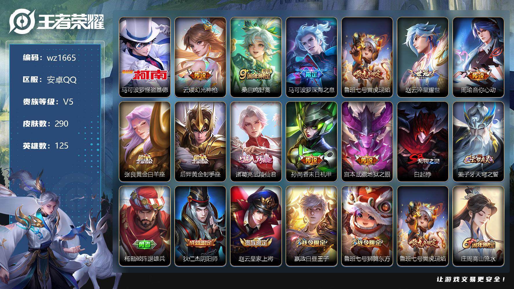 【账号佳】 【可二次实名】【wz1665】【商品标题】:安卓Q-V5-永恒钻石III段位-125英雄-290皮肤-0典藏-0珍品无双-0无双-1珍品传说-11传说-89史诗 【珍品传说】:马可波罗怪盗基德 【传说皮肤】:云缨幻光神枪,桑启鸣野蒿,马可波罗深海之息,鲁班七号寅虎瑞焰,赵云淬星耀世,周瑜音你心动,张良黄金白羊座,后羿黄金射手座,诸葛亮武陵仙君,孙尚香末日机甲,宫本武藏地狱之眼 【限定皮肤】:白起狰,姜子牙天穹之誓,杨戬破阵退雄兵,狄仁杰阴阳师,赵云皇家上将,嬴政白昼王子,鲁班七号狮舞东方,鲁班七号寅虎瑞焰,庄周高山流水,高渐离死亡摇滚,高渐离玩趣恶龙,阿轲迷踪丽影,钟无艳王者之锤,扁鹊奇幻香踪,芈月重明,芈月幻夜卜梦,周瑜赤莲之焰,元歌无心,夏侯惇朔风刀,甄姬游园惊梦,曹操烛龙,典韦穷奇,马可波罗暗影游猎,马可波罗深海之息,狄仁杰魔术师,狄仁杰万华元夜,达摩沙漠行僧,项羽海滩派对,老夫子醍醐杖,老夫子航海奇遇记,貂蝉逐梦之音,程咬金演武夺筹,刘邦夺宝奇兵,韩信傲雪梅枪,王昭君午后时光,兰陵王驯魔猎人,兰陵王金庭之子,花木兰青春决赛季,孙悟空至尊宝,牛魔御旌,李元芳云中旅人,钟馗神迹守卫,钟馗驱傩正仪,杨戬潮玩骑兵,干将莫邪胡桃夹子,雅典娜黎明之约,蔡文姬繁星吟游,太乙真人饕餮,太乙真人华丽摇滚,鬼谷子原初探秘者,鬼谷子五谷丰年,诸葛亮武陵仙君,黄忠烈魂,黄忠火炮绅士,铠青龙志,苏烈千军破阵,百里玄策原初追逐者,弈星混沌棋,梦奇顽趣,沈梦溪大漠名商,明世隐疑决卦,裴擒虎天狼狩猎者,裴擒虎李小龙,裴擒虎擒涛扼浪,狂铁御狮,狂铁电玩高手,米莱狄御霄,云中君纤云弄巧,伽罗天狼溯光者,盾山御銮,猪八戒西部大镖客,猪八戒猪悟能,上官婉儿梁祝,嫦娥拒霜思,蒙犽狂想玩偶喵,鲁班大师探海日志,桑启海盐诗旅,阿古朵江河有灵,张良古海寻踪,蒙犽百解令,蒙恬荣光圣徽,高渐离燃音魔法,妲己灵卜魔法,鬼谷子天穹祈灯,姬小满妄想食味,沈梦溪龙舞盛年,刘邦剑破天穹,程咬金群星魔术团,周瑜熔金海岸 【年限皮肤】:铠青龙志,鲁班七号寅虎瑞焰,黄忠烈魂 【赛季限定】:白起狰,芈月重明,夏侯惇朔风刀,曹操烛龙,典韦穷奇,狄仁杰万华元夜,达摩沙漠行僧,老夫子醍醐杖,程咬金演武夺筹,兰陵王金庭之子,张良古海寻踪,牛魔御旌,李元芳云中旅人,钟馗驱傩正仪,雅典娜黎明之约,太乙真人饕餮,鬼谷子原初探秘者,苏烈千军破阵,百里玄策原初追逐者,弈星混沌棋,梦奇顽趣,沈梦溪大漠名商,明世隐疑决卦,裴擒虎擒涛扼浪,狂铁御狮,米莱狄御霄,盾山御銮,鲁班大师探海日志,桑启海盐诗旅,鬼谷子天穹祈灯,蒙恬荣光圣徽,刘邦剑破天穹,姜子牙天穹之誓 【战令限定】:嬴政白昼王子,鲁班七号狮舞东方,阿轲迷踪丽影,扁鹊奇幻香踪,芈月幻夜卜梦,周瑜赤莲之焰,马可波罗暗影游猎,老夫子航海奇遇记,刘邦夺宝奇兵,王昭君午后时光,兰陵王驯魔猎人,钟馗神迹守卫,杨戬潮玩骑兵,黄忠火炮绅士,狂铁电玩高手,猪八戒西部大镖客,蒙犽狂想玩偶喵,高渐离燃音魔法,妲己灵卜魔法 【史诗皮肤】:鲁班七号电玩小子,露娜紫霞仙子,钟无艳王者之锤,赵云皇家上将,赵云未来纪元,貂蝉圣诞恋歌,甄姬冰雪圆舞曲,狄仁杰魔术师,廉颇地狱岩魂,宫本武藏鬼剑武藏,孙尚香水果甜心,嬴政暗夜贵公子,嬴政摇滚巨星,妲己魅力维加斯,妲己女仆咖啡,墨子金属风暴,吕布圣诞狂欢,刘禅绅士熊喵,曹操幽灵船长,李白千年之狐,吕布末日机甲,张飞乱世虎臣,韩信白龙吟,貂蝉逐梦之音,孙悟空至尊宝,花木兰水晶猎龙者,刘邦德古拉伯爵,夏侯惇乘风破浪,小乔缤纷独角兽,兰陵王暗隐猎兽者,诸葛亮黄金分割率,甄姬游园惊梦,亚瑟心灵战警,雅典娜冰冠公主,安琪拉心灵骇客,花木兰青春决赛季,百里守约特工魅影,铠曙光守护者,刘禅天才门将,李元芳逐浪之夏,程咬金功夫厨神,白起星夜王子,阿轲节奏热浪,嬴政白昼王子,孙策猫狗日记,大乔猫狗日记,铠青龙志,伽罗箭羽风息,裴擒虎天狼狩猎者,鲁班七号狮舞东方,狄仁杰鹰眼统帅,公孙离无限星赏官,兰陵王驯魔猎人,上官婉儿梁祝,蔡文姬繁星吟游,阿轲迷踪丽影,黄忠烈魂,马可波罗暗影游猎,蒙犽狂想玩偶喵,百里玄策原初追逐者,裴擒虎李小龙,云中君纤云弄巧,老夫子航海奇遇记,伽罗天狼溯光者,沈梦溪月团寄思,猪八戒猪悟能,庄周高山流水,嫦娥拒霜思,黄忠火炮绅士,雅典娜黎明之约,韩信傲雪梅枪,澜赏金猎手,狂铁电玩高手,鬼谷子五谷丰年,元歌无心,梦奇顽趣,扁鹊奇幻香踪,刘禅电玩爆裂旋风,阿古朵江河有灵,蒙犽百解令,周瑜雪夜绮愿,妲己灵卜魔法,高渐离燃音魔法,蒙恬荣光圣徽,姬小满妄想食味,艾琳陌上桑,牛魔星界战将,阿轲化蝶舞,狂铁龙之律动,后羿石田雨龙 【其他皮肤】:项羽海滩派对,韩信教廷特使,韩信街头霸王,露娜哥特玫瑰,阿轲致命风华,达摩大发明家,赵云白执事,赵云忍炎影,程咬金星际陆战队