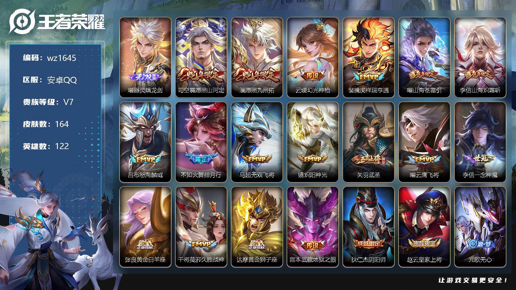【账号佳】 【可二次实名】【wz1645】【商品标题】:安卓Q-V7-永恒钻石III段位-122英雄-164皮肤-0典藏-0珍品无双-1无双-0珍品传说-17传说-45史诗 【英雄全皮】:李信全皮,司空震全皮,影全皮 【无双皮肤】:曜器灵螭龙剑 【传说皮肤】:司空震愿照山河定,澜愿照九州拓,云缨幻光神枪,裴擒虎祥瑞亨通,曜山海苍雷引,李信山海炽霜斩,吕布怒海麟威,不知火舞绯月行,马超无双飞将,镜炽阳神光,关羽武圣,曜云鹰飞将,李信一念神魔,张良黄金白羊座,干将莫邪久胜战神,达摩黄金狮子座,宫本武藏地狱之眼 【限定皮肤】:狄仁杰阴阳师,赵云皇家上将,元歌无心,马可波罗山海玄木吟,狄仁杰魔术师,达摩沙漠行僧,项羽海滩派对,关羽冰锋战神,关羽武圣,兰陵王金庭之子,不知火舞绯月行,孙悟空孙行者,张飞虎魄,李元芳云中旅人,干将莫邪胡桃夹子,鬼谷子五谷丰年,百里玄策原初追逐者,梦奇顽趣,沈梦溪大漠名商,裴擒虎李小龙,裴擒虎擒涛扼浪,李信山海炽霜斩,嫦娥暖冬兔眠,曜山海苍雷引,鲁班大师探海日志,桑启海盐诗旅,暃星界游侠,艾琳流音漫舞,司空震地狱燃心,阿古朵江河有灵,张良古海寻踪,蒙恬荣光圣徽,妲己灵卜魔法,鬼谷子天穹祈灯,刘邦剑破天穹 【年限皮肤】:关羽武圣,张飞虎魄,马可波罗山海玄木吟,李信山海炽霜斩,曜山海苍雷引 【赛季限定】:达摩沙漠行僧,兰陵王金庭之子,张良古海寻踪,李元芳云中旅人,百里玄策原初追逐者,梦奇顽趣,沈梦溪大漠名商,裴擒虎擒涛扼浪,鲁班大师探海日志,桑启海盐诗旅,鬼谷子天穹祈灯,蒙恬荣光圣徽,刘邦剑破天穹 【战令限定】:艾琳流音漫舞,嫦娥暖冬兔眠,司空震地狱燃心,暃星界游侠,妲己灵卜魔法 【史诗皮肤】:露娜紫霞仙子,赵云皇家上将,赵云未来纪元,甄姬冰雪圆舞曲,狄仁杰魔术师,廉颇地狱岩魂,宫本武藏鬼剑武藏,孙尚香水果甜心,嬴政摇滚巨星,妲己女仆咖啡,墨子金属风暴,吕布圣诞狂欢,刘禅绅士熊喵,曹操幽灵船长,李白千年之狐,张飞乱世虎臣,关羽冰锋战神,花木兰水晶猎龙者,刘邦德古拉伯爵,夏侯惇乘风破浪,小乔缤纷独角兽,兰陵王暗隐猎兽者,雅典娜冰冠公主,百里守约特工魅影,铠曙光守护者,程咬金功夫厨神,白起星夜王子,孙策猫狗日记,狄仁杰鹰眼统帅,橘右京修罗,张飞虎魄,百里玄策原初追逐者,裴擒虎李小龙,孙悟空孙行者,澜赏金猎手,鬼谷子五谷丰年,元歌无心,梦奇顽趣,暃星界游侠,马可波罗山海玄木吟,司空震地狱燃心,阿古朵江河有灵,妲己灵卜魔法,蒙恬荣光圣徽,孙膑茶境仙,狂铁龙之律动 【其他皮肤】:项羽海滩派对,韩信街头霸王,赵云忍炎影,芈月红桃皇后,牛魔西部大镖客,扁鹊化身博士,安琪拉玩偶对对碰,孙膑天使之翼,典韦黄金武士,亚瑟死亡骑士,达摩拳王,花木兰兔女郎,张飞五福同心,甄姬花好人间,后羿阿尔法小队,狄仁杰阴阳师,关羽龙腾万里,钟无艳海滩丽影,王昭君幻想奇妙夜,老夫子功夫老勺,孙尚香沉稳之力,诸葛亮掌控之力,李白敏锐之力,明世隐虹云星官,小乔丁香结,沈梦溪鲨炮海盗猫,哪吒次元突破,盾山圆桌骑士,狂铁特工战影,露娜瓷语鉴心,张良缤纷绘卷,鲁班大师乓乓大师,干将莫邪胡桃夹子,达摩沙漠行僧,程咬金无双福将,兰陵王金庭之子,沈梦溪大漠名商,李元芳云中旅人,刘备潮玩造梦师,桑启海盐诗旅,嫦娥暖冬兔眠,海月幻泉雾影,猪八戒潮玩探月行,牛魔牛运亨通,白起乐园追猎者,赵怀真太极少年,裴擒虎擒涛扼浪,太乙真人劲辣红锅,鲁班大师探海日志,李元芳妄想特派,艾琳流音漫舞,张良古海寻踪,钟无艳聚星闪耀,鬼谷子天穹祈灯,妲己灵卜魔法,刘邦剑破天穹,大司命暗都幽影,东皇太一噬灭天穹,苍苍林狼骑,太乙真人谧流熔炉,典韦铁骨偃魂,马超访茗客,影魅影绮裳,西施雪境奇遇,姜子牙星梦巡礼,明世隐景韶洛都,戈娅玫蓝誓约,刘备浪漫序章,钟馗虚灵犬护,苏烈春野闲踪,张良灵野札记,阿古朵布丁狗之约,白起死霸装,甄姬逆浪荇歌,貂蝉异域舞娘,曹操超能战警,张良一千零一夜,刘禅英喵野望,李白范海辛,刘邦圣殿之光,关羽天启骑士,马可波罗激情绿茵,黄忠芝加哥教父,铠龙域领主,百里守约绝影神枪,裴擒虎街头旋风,米莱狄精准探案法,元歌午夜歌剧院,李信灼热之刃,猪八戒年年有余,盘古创世神祝,瑶森,曜归虚梦演,马超幸存者,镜冰刃幻境,蒙恬秩序猎龙将,澜孤猎,司空震启蛰,云缨赤焰之缨,金蝉前尘,暃碧珀绯影 【内测皮肤】:狂铁特工战影,干将莫邪胡桃夹子 【营地ID】:1704029820