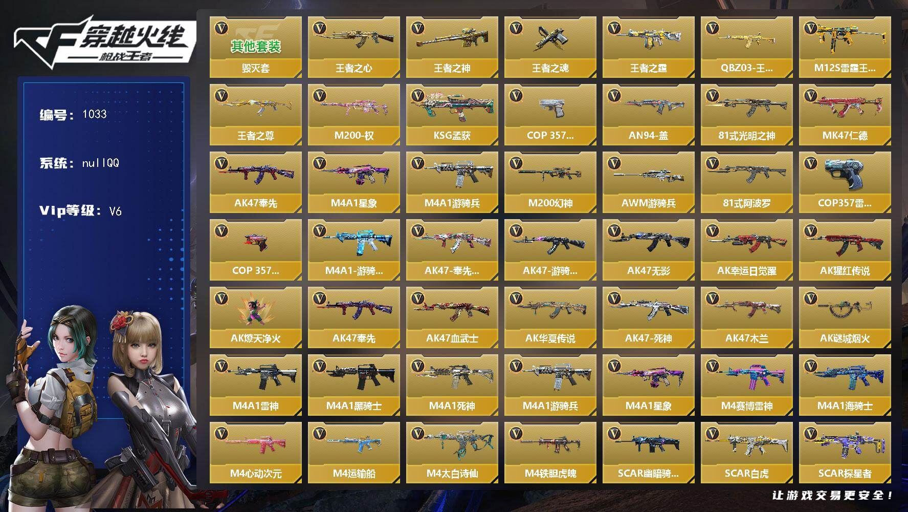 【账号佳】 可二次QQ 【iOS】专家S-5英雄角色数-253英雄武器数【王者系列】:王者之心,王者之神,王者之魂,王者之霆,QBZ03-王者蔷薇,M12S-雷霆王者,王者之尊【热门武器】:M200-权,KSG-孟获,COP 357-安琪拉,AN94-盖,81式-光明之神,MK47-仁德,AK47-奉先,M4A1-星象,M4A1-游骑兵,M200-幻神,AWM-游骑兵,81式-阿波罗,COP 357-雷霆,COP 357-堕天神【角色】:审判者,葵,樱,关小雨,刀锋-枪战王者【英雄武器】:AK47-无影*2,AK47-幸运日觉醒,AK47-猩红传说,AK47-燎天净火,AK47-奉先,AK47-血武士,AK47-华夏传说,AK47-死神,AK47-木兰,AK47-谜城烟火*2,M4A1-雷神,M4A1-黑骑士,M4A1-死神*3,M4A1-游骑兵,M4A1-星象,M4A1-赛博雷神,M4A1-海骑士,M4A1-心动次元,M4A1-运输船,M4A1-太白诗仙,M4A1-铁胆虎魄*2,SCAR-幽暗骑士,SCAR Light-白虎,SCAR-探星者,SCAR-印刷术,SCAR-心动PICK,剑齿虎-炫彩,AN94-赳赳秦师,AN94-盖,9A91-魔蜥觉醒,M14EBR-拂影,M14EBR-葫芦山庄,AK12-天启,QBZ03-金色蔷薇*2,QBZ03-死神,QBZ03-玉面羞花,HK416-极光,HK417-炎龙铠甲,81式-光明之神,G36-李星云,MK47-仁德,G3A3-衍神兵,QBZ97-浩瀚征途,QBZ191-封神榜*2,SBR-湮灭,AWM-天龙,AWM-游骑兵,AWM-大湾溢彩,巴雷特-毁灭*6,巴雷特-冬灭觉醒,M200-幻神,M200-心动次元觉醒,M200-权,09式狙-天神*6,98K-黑骑士*2,98K-星神,加特林-堡垒*4,加特林-蟒蛇,刘易斯-血月,QBB95-极光*2,MK5-极光,汤姆逊-烈龙*2,双持斯泰尔-天使,QCW05-变形金刚·大黄蜂,CBJ-MS-毒蜂,CZS2-心动次元,PP19野牛-造纸术,DDM4-PDW-星际宇航觉醒,地狱火*3,AA12-火药觉醒,KSG-天使,KSG-孟获,KSG-钟馗觉醒*2,M1887-幽冥玄喵觉醒*2,Origin12-机变奇蛇觉醒,USP-机械迷城*2,沙鹰-修罗*4,沙鹰-幻兽,沙鹰-神兵修罗,双持沙鹰-元让,毛瑟-毒蜂,蟒蛇-鼓龙,左轮-卧龙觉醒,双持GLOCK18-本初,GLOCK18-猎神,改装GLOCK-樱龙·超觉,COP 357-雷霆,COP 357-堕天神,COP 357-安琪拉,QSZ92-华夏传说,柯尔特-伏刹山海觉醒,双持柯尔特-极光,蝴蝶刀-天神,女皇利刃-铁胆虎魄*3,炽芒蝶刃,匕首-浩瀚征途,龙啸,神罚战斧,血阳,手斧-机械迷城*2,秋逸,屠龙*6,血月,龙鳞-觉醒,麒麟刺*2,星芒,马来剑-毁灭*2,斩魔剑-天使,唐刀-华夏传说,唐刀-大唐荣耀,斩魔刀,末日裁决觉醒*3,破邪蛇棍觉醒,马来剑-耀金伯爵,黑骑士手雷*2,高爆手雷-雷暴,雷神手雷,高爆手雷-无限,手雷-星象,王者之竞手雷,手雷-鼓龙,分裂雷-偃蛇,手雷-游骑兵,粘性手雷-彩虹小白马觉醒,闪光弹-游骑兵,黑骑士闪光弹*2,王者之势闪光弹,闪光弹-雷暴,雷神闪光弹,闪光弹-星象,烟雾弹-游骑兵,黑骑士烟雾弹,王者之势烟雾弹,火麒麟烟雾弹,烟雾弹-雷暴,王者之圣烟雾弹,雷神烟雾弹,烟雾弹-星象,烟雾弹-星际宇航,燃烧弹-星象,燃烧弹-遁天梭-剑鱼阵,燃烧弹-游骑兵*3【三国/其他套装】:毁灭套【万化皮肤】:AK47-奉先-无双,M4A1-游骑兵-寒霜,AK47-游骑兵-紫魇,各种道具详情看截图、低价出售找回包 赔、截图展示段位不代 表实际段位,如赛季更新等不可抗拒因素发生变化、时限道具不保证所剩时间、标题未写送点劵默认不送【卖号买号首选亿梦】