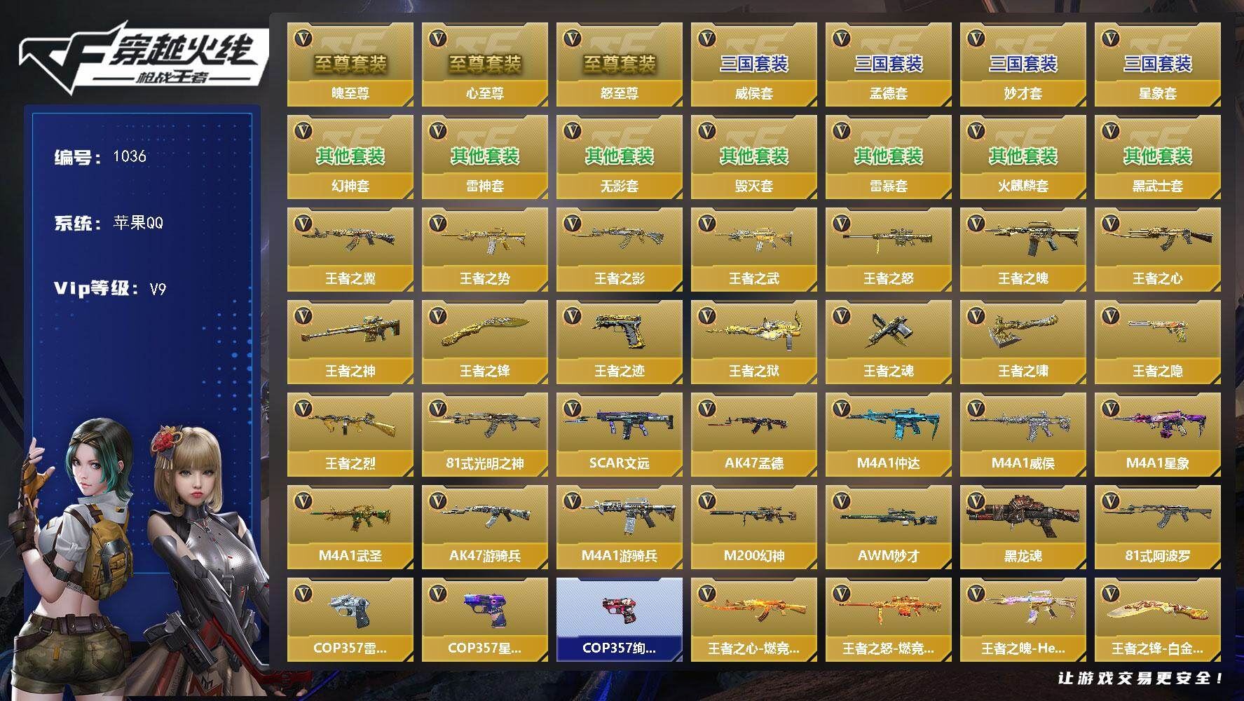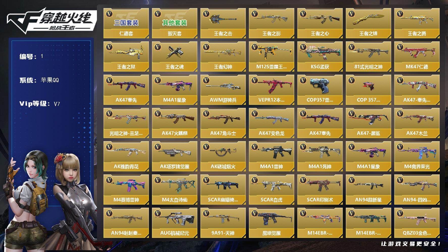 【账号佳】 可二次苹果QQ 枪皇-15英雄角色数-545英雄武器数【至尊系列】:心至尊,魄至尊,怒至尊【王者系列】:王者之翼,王者之势,王者之影*2,王者之武,王者之怒,王者之魄,王者之心*3,王者之神,王者之锋*2,王者之迹,王者之狱,王者之魂*3,王者之啸,王者之隐,王者之烈【三国/其他套装】:火麒麟套,黑武士套,无影套,毁灭套,雷神套,星象套,孟德套,威侯套,雷暴套,妙才套,幻神套【万化皮肤】:加特林-炼狱-怒魔,王者之魂-白金血钻,王者之怒-燃竞之巅,王者之魄-HeartShot,王者之心-燃竞之巅,M4A1-游骑兵-寒霜,AK47-游骑兵-寒霜,M4A1-游骑兵-KZ,M4A1-仲达-烽火连城,AK47-孟德-过载,王者之啸-白金血钻,王者之锋-白金血钻,王者之灵-白金血钻,81式-光明之神-三足金乌【热门武器】:81式-光明之神,SCAR-文远,AK47-孟德,M4A1-仲达*2,M4A1-威侯,M4A1-星象,M4A1-武圣,AK47-游骑兵,M4A1-游骑兵,M200-幻神,AWM-妙才,黑龙魂,81式-阿波罗,COP 357-雷神,COP 357-星象,COP 357-绚樱【角色】:审判者,零,萝拉,葵,幽灵刀锋-觉醒,樱,瞳,子涵*2,关小雨*2,云悠悠,职场灵狐-赛事经理,雅典娜,零-水下丽影【英雄武器】:AK47-无影*4,AK47-火麒麟,AK47-黑武士觉醒*2,AK47-沙漠领主,AK47-游骑兵,AK47-冰魂觉醒,AK47-樱斗士-二觉,AK47-竞技战魂*6,AK47-机械迷城,AK47-变色龙,AK47-天使,AK47-孟德,AK47-幸运日觉醒,AK47-猩红传说,AK47-沙漠郡主-二觉,AK47-雷麒麟*2,AK47-心动次元觉醒,AK47-雷暴,AK47-血武士*3,AK47-华夏传说,AK47-死神,AK47-黑鲨,AK47-春雅觉醒,AK47-木兰,AK47-轮回,AK47-谜城烟火,M4A1-雷神*7,M4A1-黑骑士,M4A1-黑龙,M4A1-死神*9,M4A1-玫瑰精灵*2,M4A1-天使*2,M4A1-游骑兵,M4A1-沙漠领主,M4A1-君威GS,M4A1-武圣,M4A1-卧龙觉醒,M4A1-星象,M4A1-樱龙·二觉,M4A1-威侯,M4A1-龙血*2,M4A1-仲达*2,M4A1-机械迷城,M4A1-海骑士,M4A1-破空冰刃,M4A1-堕天神,M4A1-心动次元*5,M4A1-运输船*3,M4A1-猎神,M4A1-千变,M4A1-青龙,SCAR-幽暗骑士,SCAR-幽暗骑士觉醒,SCAR-文远,SCAR Light-白虎,SCAR-探星者,SCAR-印刷术,SCAR-印刷术觉醒,剑齿虎*2,AN94-卷帘大将军,AN94-四凶觉醒,AN94-赳赳秦师,AUG-机械纪元*2,9A91-死神,9A91-天神,M14EBR-暗夜,M14EBR-拂影,M14EBR-玄武,AK12-天启*2,QBZ03-湮灭,QBZ03-金色蔷薇*2,QBZ03-死神*2,QBZ03-玉面羞花,HK416-混世行者,HK417-炎龙铠甲,81式-光明之神,QBZ19-天使,G36-竞技战魂,G36-李星云,MK47-云舞,G3A3-五色琉璃觉醒,QBZ97-岚舞,AWM-天龙*2,AWM-妙才,AWM-裁决,AWM-天使*2,AWM-指南针,巴雷特-毁灭*8,巴雷特-极光*9,巴雷特-枪娘*2,巴雷特-金色蔷薇*3,巴雷特-安琪拉,巴雷特-变色龙,暗杀神,M200-幻神,M200-心动次元觉醒,09式狙-天神*4,09式狙-魔音长歌觉醒,98K-黑骑士,98K-星神,MR1-龙吟惊沧海,MR1-幽暗骑士,TAC-晴舞,GM6-战争风云觉醒,SR25-燃烧泰坦,RPK-盘龙*3,RPK-赤炎盘龙*2,MG3-雏凤,加特林-堡垒*4,加特林-炼狱*3,加特林-堡垒觉醒,刘易斯-血月*2,刘易斯-天使,刘易斯-星际方舟觉醒,MG36-黑骑士,QBB95-极光,MK5-机械纪元,MK5-极光*3,汤姆逊-烈龙*5,寒霜烈龙*3,王者之烈,双持斯泰尔-天使*5,斯泰尔-恶魔,QCW05-变形金刚·大黄蜂*2,P90-突突兔觉醒*2,P90-双脊龙,CZS2-心动次元*7,CZS2-心动次元觉醒,CZS2-血月,PP19野牛-造纸术,PP19野牛-造纸术觉醒,地狱火*2,黑龙魂,嗜血金鲨,地狱烈炎*2,毁灭征服者-超越Max,KSG-黑骑士,KSG-天蓬元帅,KSG-火力竞放,各种道具详情看截图、低价出售找回包 赔、截图展示段位不代 表实际段位,如赛季更新等不可抗拒因素发生变化、时限道具不保证所剩时间、标题未写送点劵默认不送【卖号买号首选亿梦】
