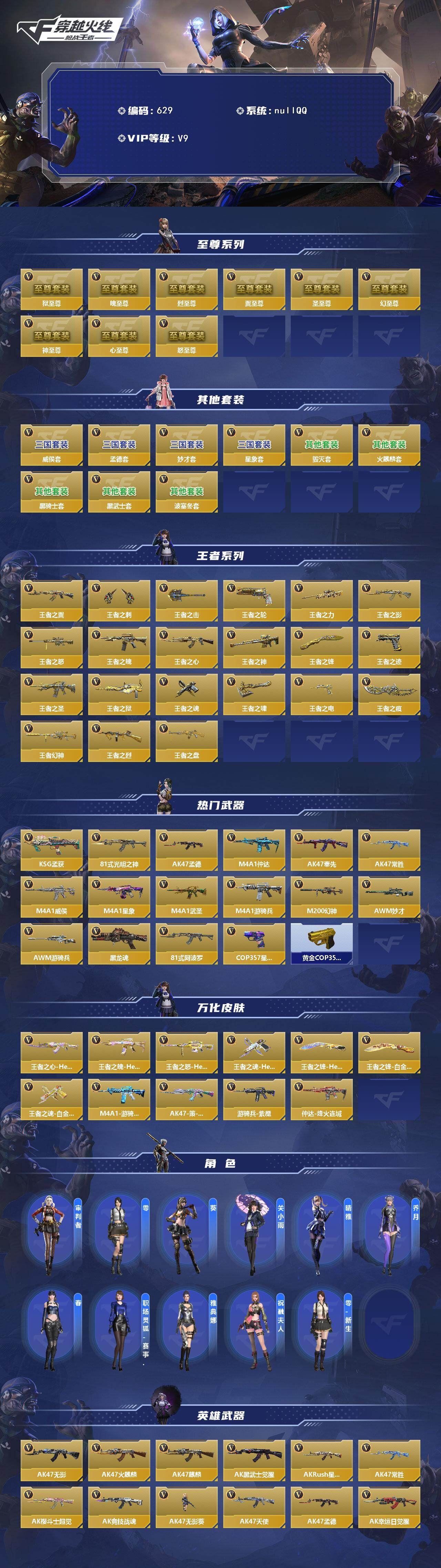 【账号佳】 r51129 可二次 安卓qq【枪皇S-12英雄角色数-320英雄武器数】【王者系列】:王者之击,王者之影,王者之心,王者之神,王者之兽,王者之狱,王者之魂,王者幻神,王者之隐,M12S-雷霆王者,雷霆王者之锋,王者之尊【热门武器】:KSG-孟获,81式-光明之神,M4A1-仲达,AK47-奉先,M4A1-星象,M4A1-游骑兵,TAC-慈,M200-幻神,AWM-游骑兵,VEPR12-本初,81式-阿波罗,COP 357-雷霆,COP 357-堕天神【角色】:审判者,萝拉,葵,幽灵刀锋-觉醒,樱,晴雅,零-水下丽影,蝉,甄梦,炽天使-X,零-新生【英雄武器】:AK47-无影,AK47-火麒麟*2,AK47-黑武士觉醒,AK47-沙漠领主,AK47-角斗士,AK47-沙漠郡主-超觉,AK47-奉先,AK47-血武士,AK47-黑鲨,AK47-风神翼龙*2,AK47-木兰,AK47-轮回,AK47-雅韵青花,AK47-塔罗牌觉醒,AK47-谜城烟火,M4A1-雷神*2,M4A1-黑骑士,M4A1-死神*3,M4A1-游骑兵,M4A1-竞技战魂,M4A1-星象,M4A1-樱龙·一觉,M4A1-Rush-夜袭,M4A1-龙血,M4A1-仲达,M4A1-竞界荣光,M4A1-赛博雷神,M4A1-雷霆,M4A1-堕天神,M4A1-运输船,M4A1-猎神,M4A1-雷暴,M4A1-太白诗仙,M4A1-铁胆虎魄,M4A1-青龙,SCAR-幽暗骑士*2,SCAR-幽暗骑士觉醒,SCAR Light-白虎,SCAR-探星者*2,SCAR-印刷术觉醒,SCAR-心动PICK,AN94-超新星,剑齿虎-炫彩,AN94-四凶觉醒,AN94-赳赳秦师,AUG-机械纪元,9A91-游骑兵,9A91-天神*2,M14EBR-暗夜,M14EBR-天神,M14EBR-拂影,M14EBR-葫芦山庄,AK12-天启,QBZ03-金色蔷薇*2,QBZ03-死神,QBZ03-枪娘,QBZ03-玉面羞花*2,HK416-极光,81式-光明之神,G36-李星云,MK47-机械纪元,MK47-云舞,SKS-美杜莎,QBZ97-浩瀚征途,QBZ191-封神榜,SBR-湮灭,AWM-天龙,AWM-赛博时代,AWM-游骑兵,AWM-裁决,AWM-天使,AWM-指南针,巴雷特-毁灭*5,巴雷特-极光*2,巴雷特-雷神,巴雷特-冬灭觉醒,巴雷特-朱雀,M200-幻神,M200-心动次元觉醒,09式狙-天神*3,98K-黑骑士,98K-星神,TAC-慈,TAC-晴舞,TAC-雷暴,刘易斯-天使,MG36-黑骑士,MG36-魔礼青,QBB95-极光,QBB95-再战涿鹿,MK5-极光,汤姆逊-烈龙*2,寒霜烈龙,双持斯泰尔-天使*3,CBJ-MS-毒蜂,CZS2-善财童子,CZS2-血月,双持CZS2-魔礼寿,PP19野牛-造纸术,VEPR12-本初,地狱火,嗜血金鲨,地狱烈炎,AA12-竞界荣光,毁灭征服者-超越Max,AA12-火药,KSG-火力竞放,KSG-极光*6,KSG-孟获,KSG-钟馗觉醒,贝雷塔-力拔山河,M1216-血月,USP-神罚*6,USP-机械迷城*3,USP-仁德,USP-太白诗仙,沙鹰-修罗*6,沙鹰-天神,沙鹰-超新星,气手枪-血月,沙鹰-神兵修罗,沙鹰-宇航兔兔,双持沙鹰-元让,毛瑟-毒蜂,蟒蛇-鼓龙,左轮-卧龙觉醒,GLOCK18-猎神,COP 357-雷霆,COP 357-堕天神,QSZ92-天使*2,双管猎枪-未来战士,CZ75-穷奇,CZ75-策,MK23-幻神】各种道具详情看截图、低价出售找回包 赔、截图展示段位不代 表实际段位,如赛季更新等不可抗拒因素发生变化、时限道具不保证所剩时间、标题未写送点劵默认不送【卖号买号首选亿梦】
