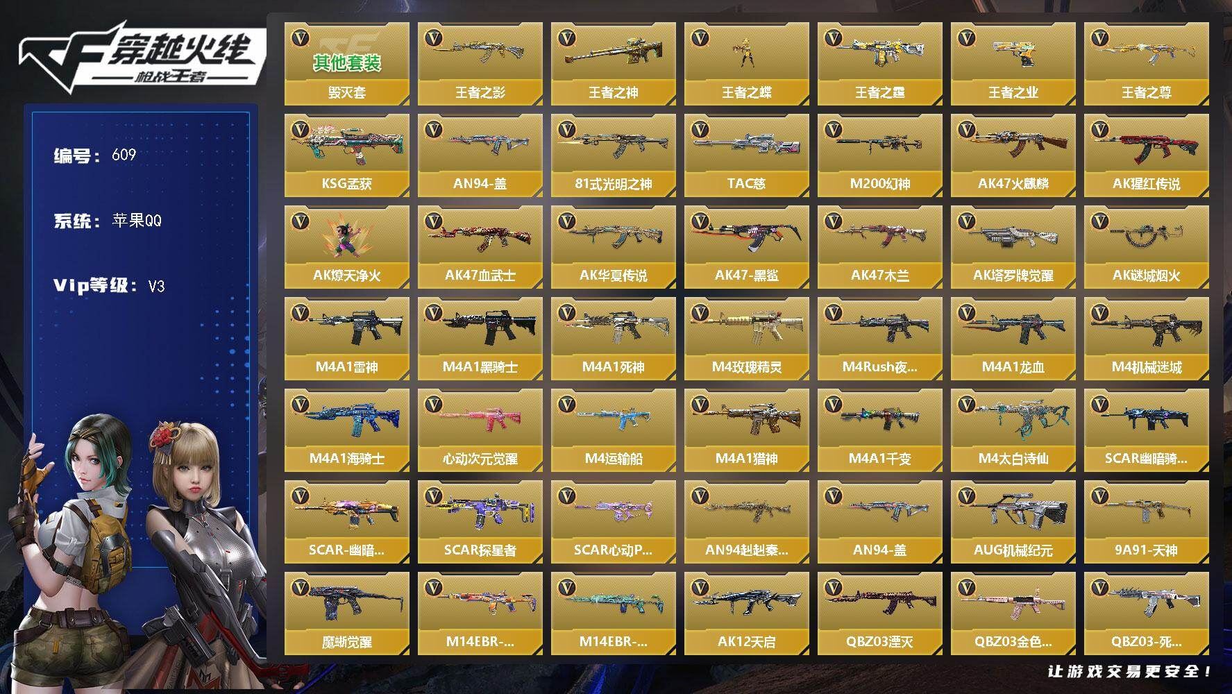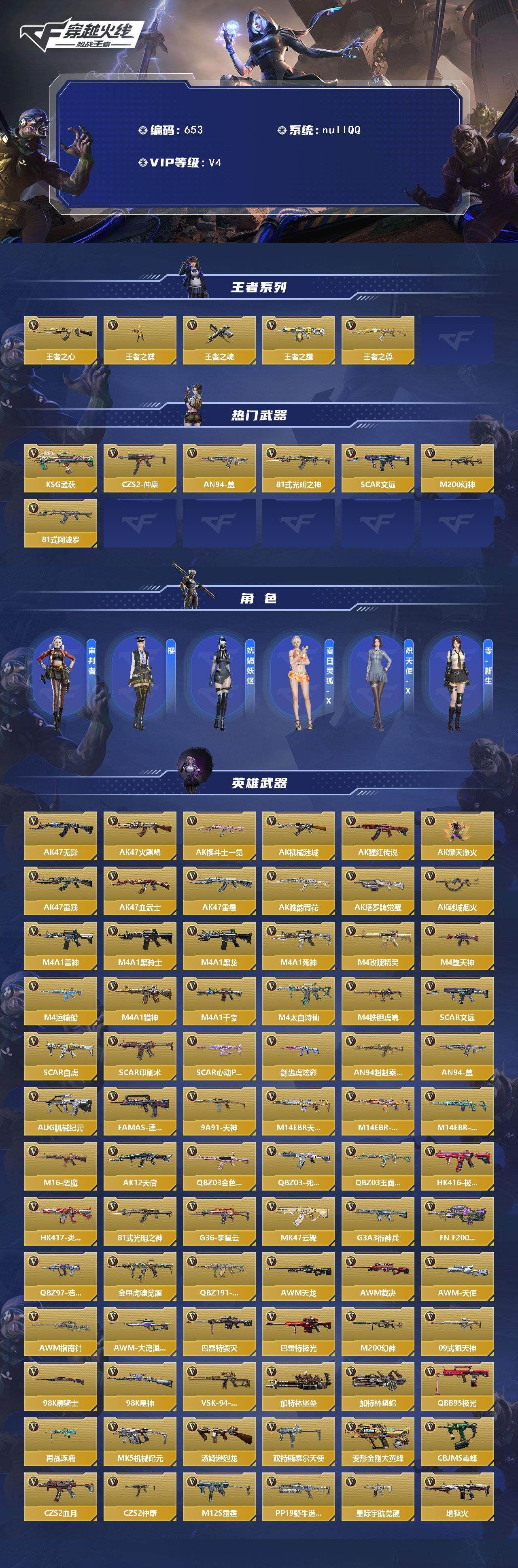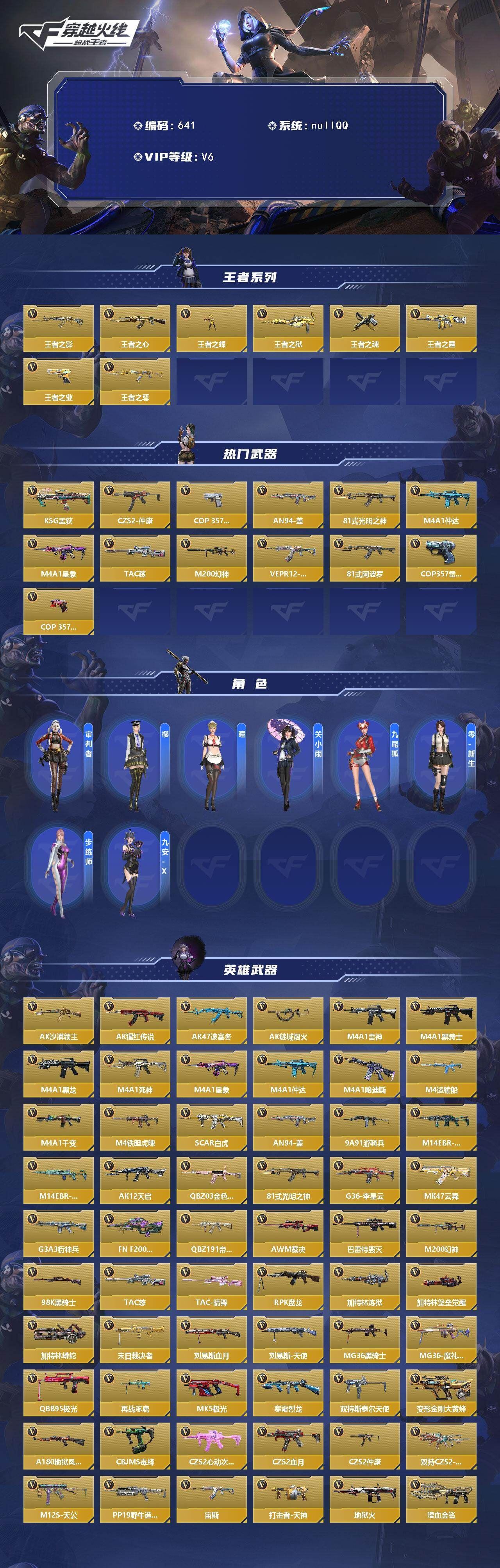 【账号佳】 r50941 可二次 iosqq【枪圣-6英雄角色数-207英雄武器数】【王者系列】:王者之势,王者之魄,王者之心,王者之锋,王者之狱,王者之魂,王者之霆,王者之业,M4A1-雷霆王者,M12S-雷霆王者,王者之尊【热门武器】:M200-权,KSG-孟获,CZS2-仲康,COP 357-安琪拉,81式-光明之神,AK47-孟德,AK47-奉先,M4A1-星象,M200-幻神,AWM-妙才,VEPR12-本初,黑龙魂,COP 357-雷霆*2,COP 357-星象,COP 357-堕天神*2【角色】:审判者,樱,炽天使-X,祝融夫人,零-新生,步练师【英雄武器】:AK47-火麒麟,AK47-孟德,AK47-奉先,M4A1-雷神,M4A1-星象,M4A1-竞界荣光,M4A1-赛博雷神,M4A1-心动次元觉醒,M4A1-运输船,M4A1-猎神,M4A1-雷霆王者,M4A1-太白诗仙,M4A1-铁胆虎魄,SCAR-幽暗骑士,SCAR Light-白虎,SCAR-探星者,SCAR-心动PICK,剑齿虎-炫彩,AN94-赳赳秦师*2,AUG-机械纪元,FAMAS-湮灭,M14EBR-拂影,M14EBR-葫芦山庄,M16-恶魔,QBZ03-金色蔷薇*2,QBZ03-死神,QBZ03-玉面羞花,HK416-极光,81式-光明之神,MK47-云舞,FN F2000-十绝阵觉醒,QBZ97-浩瀚征途,QBZ191-封神榜,SBR-湮灭,AWM-妙才,AWM-天使,AWM-指南针,巴雷特-毁灭*2,巴雷特-极光,M200-幻神,M200-权,98K-黑骑士*2,98K-星神,RPK-盘龙,加特林-堡垒,MK5-机械纪元,汤姆逊-烈龙,QCW05-变形金刚·大黄蜂,CBJ-MS-毒蜂,CZS2-仲康,双持CZS2-魔礼寿,DDM4-PDW-星际宇航觉醒,VEPR12-本初,地狱火,黑龙魂,AA12-火药,亡命之徒-鬼魅双生,KSG-孟获,Origin12-机变奇蛇觉醒,USP-神罚*2,USP-机械迷城,USP-太白诗仙,沙鹰-修罗*2,沙鹰-宇航兔兔,毛瑟-毒蜂,蟒蛇-鼓龙,左轮-卧龙觉醒,双持GLOCK18-本初,GLOCK18-猎神,COP 357-星象,COP 357-雷霆*2,COP 357-堕天神*2,COP 357-安琪拉,QSZ92-华夏传说,白骨利刃,蝴蝶刀-天神*2,女皇利刃-铁胆虎魄*2,清刚-觉醒,匕首-浩瀚征途,龙啸,神罚战斧,血阳,手斧-机械迷城,秋逸觉醒,气勇胆烈戟,屠龙*5,血月,尼泊尔-星象,太白诗仙扇,麒麟刺,星芒,唐刀-华夏传说,破邪蛇棍觉醒,马来剑-耀金伯爵,死神手雷*2,黑骑士手雷,黑武士手雷*2,手雷-芦里乾坤,高爆手雷-雷暴*2,雷神手雷,高爆手雷-无限*2,高爆手雷-神工天巧,手雷-云海游龙,手雷-星象,王者之竞手雷,手雷-鼓龙,高爆手雷-幻灵,死神闪光弹*2,王者之影闪光弹,王者之翼闪光弹,闪光弹-游骑兵,黑骑士闪光弹,雷神闪光弹,闪光弹-雷霆王者,闪光弹-星象,王者之竞闪光弹,死神烟雾弹*3,王者之影烟雾弹,黑骑士烟雾弹,王者之势烟雾弹,雷神烟雾弹,烟雾弹-雷霆王者,烟雾弹-神工天巧,烟雾弹-星象,王者之竞烟雾弹,烟雾弹-星际宇航,烟雾弹-遁天梭-重山盾,烟雾弹-幻灵,燃烧弹-星象,燃烧弹-游骑兵*2】各种道具详情看截图、低价出售找回包 赔、截图展示段位不代 表实际段位,如赛季更新等不可抗拒因素发生变化、时限道具不保证所剩时间、标题未写送点劵默认不送【卖号买号首选亿梦】