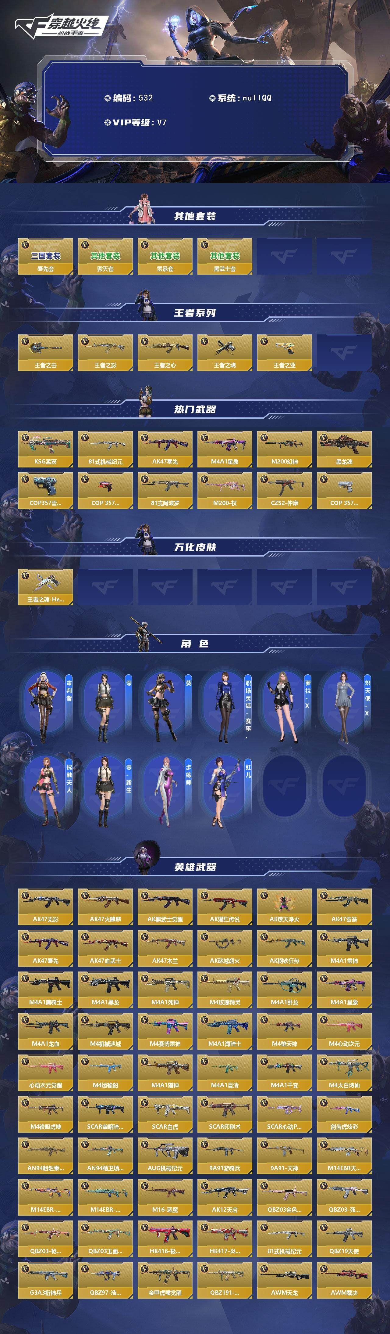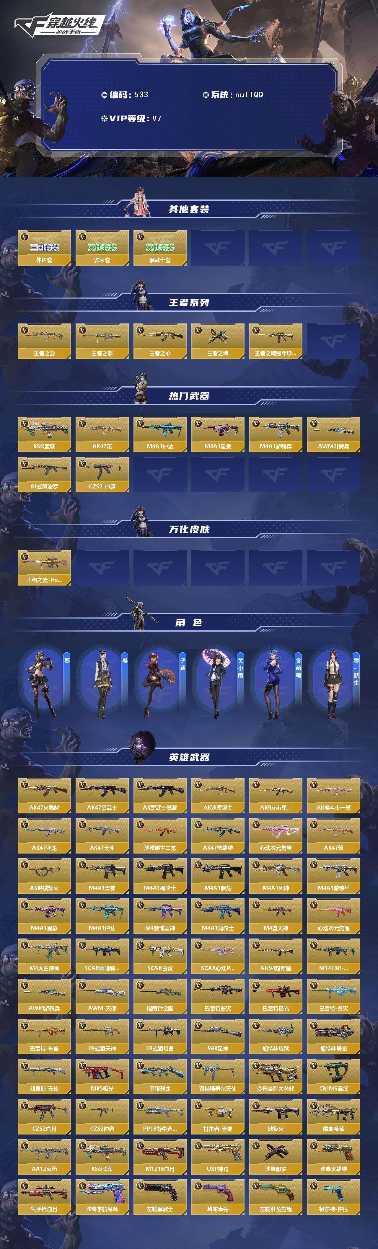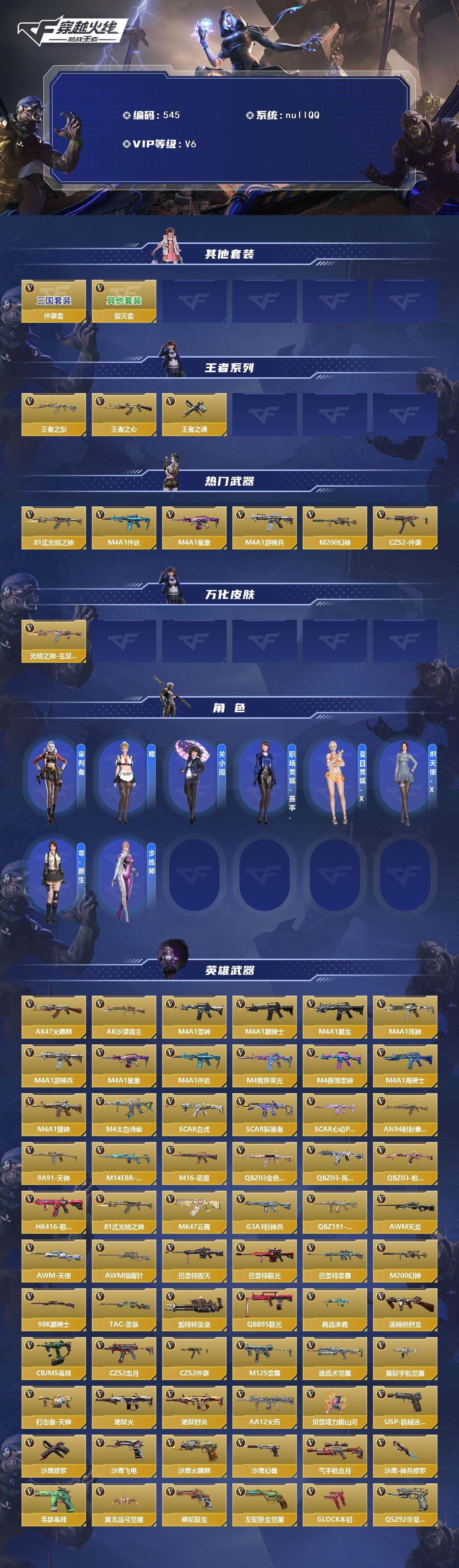 【账号佳】 R48844 可二次苹果QQ 11英雄角色数-331英雄武器数【19王者】【至尊系列】:翼至尊【王者系列】:王者之翼,王者之击,王者之轮,王者之影,王者之魄,王者之神,王者之狱,王者幻神,王者之霆,王者之誉,M12S-雷霆王者,雷霆王者之锋【三国/其他套装【万化皮肤】:AK47-奉先-无双,王者之击-HeartShot,王者之轮-HeartShot,王者之魄-HeartShot,王者之翼-HeartShot,王者之魂-白金血钻,81式-光明之神-三足金乌,M4A1-游骑兵-紫魇【热门武器】:KSG-孟获,AK47-元让,81式-光明之神,M4A1-仲达,AK47-奉先,M4A1-星象,M4A1-游骑兵,AWM-游骑兵,COP 357-雷霆*2,COP 357-旗袍,COP 357-堕天神,81式-阿波罗【角色】:零,关小雨*3,晴雅,岚兮儿,职场灵狐-赛事经理,甄梦,武媚-X,炽天使-X,零-新生【英雄武器】:AK47-无影,AK47-火麒麟*3,AK47-麒麟,AK47-黑武士觉醒,AK47-沙漠领主,AK47-猩红传说,AK47-燎天净火,AK47-奉先,AK47-血武士,AK47-黑鲨,AK47-木兰,AK47-元让,AK47-雅韵青花,AK47-塔罗牌觉醒,AK47-谜城烟火*2,M4A1-雷神,M4A1-黑骑士*2,M4A1-黑龙,M4A1-死神*2,M4A1-玫瑰精灵,M4A1-游骑兵,M4A1-星象,M4A1-龙血,M4A1-仲达,M4A1-机械迷城,M4A1-赛博雷神*2,M4A1-破空冰刃,M4A1-堕天神,M4A1-运输船*3,M4A1-猎神,M4A1-雷暴,M4A1-千变,M4A1-太白诗仙*2,M4A1-铁胆虎魄,M4A1-青龙,SCAR-幽暗骑士,SCAR Light-白虎,SCAR-守护者觉醒,SCAR-印刷术,SCAR-印刷术觉醒,SCAR-心动PICK,AN94-四凶觉醒,AN94-赳赳秦师,AUG-机械纪元,FAMAS-湮灭,M14EBR-拂影*4,M14EBR-葫芦山庄,M16-恶魔,AK12-天启,QBZ03-金色蔷薇,QBZ03-死神,QBZ03-玉面羞花,HK416-混世行者,HK416-极光,HK417-炎龙铠甲,81式-光明之神,QBZ19-天使,G36-机械纪元,MK47-云舞,G3A3-五色琉璃觉醒,G3A3-衍神兵*2,QBZ97-岚舞,QBZ97-浩瀚征途,QBZ191-金甲虎啸觉醒,QBZ191-封神榜,AWM-游骑兵,AWM-裁决,AWM-天使,AWM-指南针,AWM-大湾溢彩,巴雷特-毁灭*3,巴雷特-极光*8,巴雷特-冬灭觉醒,暗杀神,M200-心动次元觉醒,09式狙-天神*2,98K-黑骑士*2,98K-血月,98K-星神,98K-蜻蜓,TAC-晴舞,TAC-雷暴,VSK-94-九黎兵主觉醒,VSK-94-金蚀,RPK-盘龙,加特林-堡垒,加特林-蟒蛇*4,刘易斯-血月,刘易斯-天使,MG36-变形金刚·威震天,QBB95-极光,QBB95-再战涿鹿,MK5-极光,汤姆逊-烈龙,双持斯泰尔-天使,斯泰尔-蝴蝶*2,QCW05-变形金刚·大黄蜂,CBJ-MS-毒蜂*2,CZS2-心动次元觉醒,CZS2-血月,PP19野牛-造纸术觉醒,打击者-天神,地狱火,AA12-火药,亡命之徒-幻兽,KSG-极光,KSG-孟获,KSG-钟馗觉醒,贝雷塔-力拔山河,M1887-幽冥玄喵觉醒,M1216-霸王龙,Origin12-机变奇蛇觉醒,USP-神罚,USP-机械迷城*3,USP-太白诗仙,沙鹰-修罗*3,沙鹰-天神,沙鹰-超新星,沙鹰-神兵修罗*2,沙鹰-宇航兔兔*2,双持沙鹰-元让,蟒蛇-鼓龙,左轮-卧龙觉醒,双持GLOCK18-本初,GLOCK18-猎神,改装GLOCK-魔杀族,COP 357-雷霆*2,COP 357-堕天神,COP 357-旗袍,双管猎枪-威侯,柯尔特-仲达,柯尔特-伏刹山海觉醒,双持柯尔特-极光,CZ75-穷奇,CZ75-策,MK23-机械纪元*3,白骨利刃,海斯博士双刃-激光,雌雄双股剑,双刃-昼伏夜影觉醒,蝴蝶刀-天神,女皇利刃-铁胆虎魄*2,炽芒蝶刃,清刚-觉醒,匕首-浩瀚征途,龙啸,神罚战斧,血阳,龙啸-堕天神,手斧-机械迷城*2,秋逸觉醒,刑天战斧,气勇胆烈戟,屠龙*5,血月,尼泊尔-机械纪元,尼泊尔-竞界荣光,穷奇铁扇,雷霆王者之锋,龙鳞-觉醒,尼泊尔-蜻蜓,太白诗仙扇,麒麟刺,星芒*3,耀金雷刃,马来剑-毁灭*3,唐刀-华夏传说,铁锹-超新星,丛林匕首-火力竞放觉醒,斩神刀-雷暴,迷你饕餮,末日裁决觉醒,破邪蛇棍觉醒,马来剑-耀金伯爵*2【显血戒指】各种道具详情看截图、低价出售找回包 赔、截图展示段位不代 表实际段位,如赛季更新