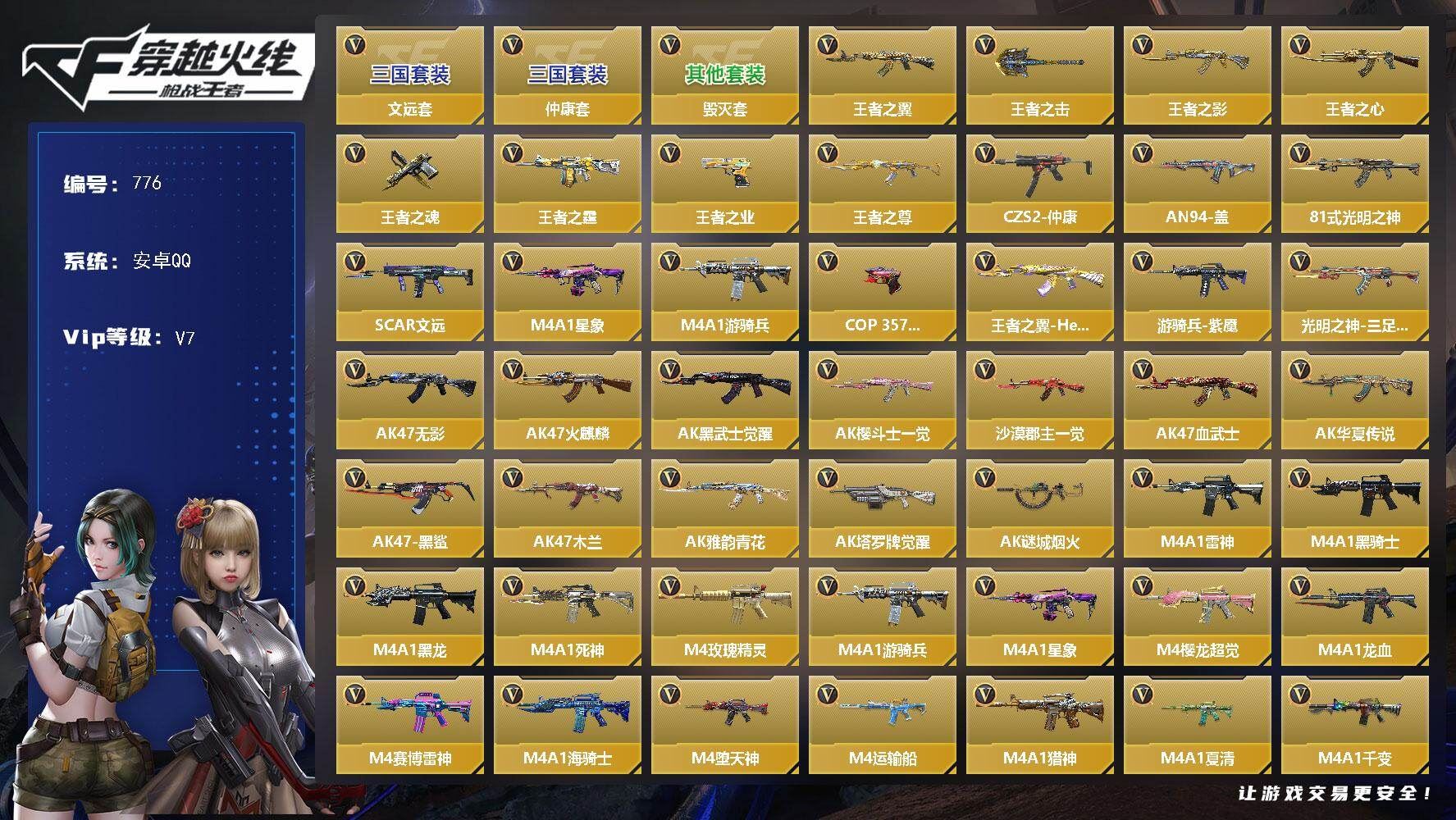 【账号佳】 可二次安卓QQ 大师SS-8英雄角色数-367英雄武器数【22王者】【王者系列】:王者之翼,王者之击,王者之影,王者之心,王者之魂,王者之霆,王者之业,王者之尊【三国/其他套装】:毁灭套,文远套,仲康套【万化皮肤】:王者之翼-HeartShot,81式-光明之神-三足金乌,M4A1-游骑兵-紫魇【热门武器】:CZS2-仲康,AN94-盖,81式-光明之神,SCAR-文远,M4A1-星象,M4A1-游骑兵,COP 357-堕天神【角色】:萝拉,瞳,关小雨,晴雅,零-水下丽影,炽天使-X,零-新生【英雄武器】:AK47-无影,AK47-火麒麟*2,AK47-黑武士觉醒,AK47-樱斗士-一觉,AK47-沙漠郡主-一觉,AK47-血武士,AK47-华夏传说,AK47-黑鲨,AK47-木兰,AK47-雅韵青花,AK47-塔罗牌觉醒,AK47-谜城烟火*2,M4A1-雷神,M4A1-黑骑士,M4A1-黑龙,M4A1-死神*2,M4A1-玫瑰精灵,M4A1-游骑兵,M4A1-星象,M4A1-樱龙·超觉,M4A1-龙血,M4A1-赛博雷神,M4A1-海骑士,M4A1-堕天神,M4A1-运输船*2,M4A1-猎神,M4A1-夏清,M4A1-千变,M4A1-太白诗仙,SCAR-幽暗骑士,SCAR-幽暗骑士觉醒,SCAR-文远,SCAR Light-白虎,SCAR-探星者,SCAR-守护者觉醒,SCAR-印刷术,SCAR-心动PICK,剑齿虎-炫彩,AN94-四凶觉醒*2,AN94-赳赳秦师*2,AN94-盖,AUG-机械纪元,9A91-天神*2,9A91-魔蜥觉醒,M14EBR-拂影,M14EBR-葫芦山庄,M16-恶魔,AK12-天启,QBZ03-湮灭*2,QBZ03-金色蔷薇*5,QBZ03-死神,QBZ03-玉面羞花,HK416-极光,HK417-炎龙铠甲,81式-光明之神,G36-李星云,MK47-机械纪元,MK47-云舞,G3A3-五色琉璃觉醒,G3A3-衍神兵*2,FN F2000-十绝阵觉醒,QBZ97-岚舞,QBZ97-浩瀚征途,QBZ191-封神榜,AWM-天使,AWM-指南针,巴雷特-毁灭*9,巴雷特-极光,巴雷特-冬灭觉醒,M200-心动次元*2,M200-心动次元觉醒,09式狙-天神*2,09式狙-魔音长歌觉醒*2,98K-黑骑士*2,GM6-战争风云觉醒*2,加特林-堡垒*2,加特林-炼狱,加特林-堡垒觉醒,加特林-蟒蛇,刘易斯-天使,刘易斯-星际方舟觉醒*2,MG36-变形金刚·威震天,QBB95-极光,QBB95-再战涿鹿,汤姆逊-烈龙,寒霜烈龙,双持斯泰尔-天使*2,QCW05-变形金刚·大黄蜂*2,P90-突突兔觉醒,CZS2-心动次元觉醒*2,CZS2-仲康,双持CZS2-魔礼寿,PP19野牛-造纸术,DDM4-PDW-星际宇航觉醒,SPAS12-变形金刚·擎天柱,打击者-天神,地狱火*2,地狱烈炎*2,AA12-火药觉醒,亡命之徒-幻兽,KSG-天蓬元帅,各种道具详情看截图、低价出售找回包 赔、截图展示段位不代 表实际段位,如赛季更新等不可抗拒因素发生变化、时限道具不保证所剩时间、标题未写送点劵默认不送【卖号买号首选亿梦】