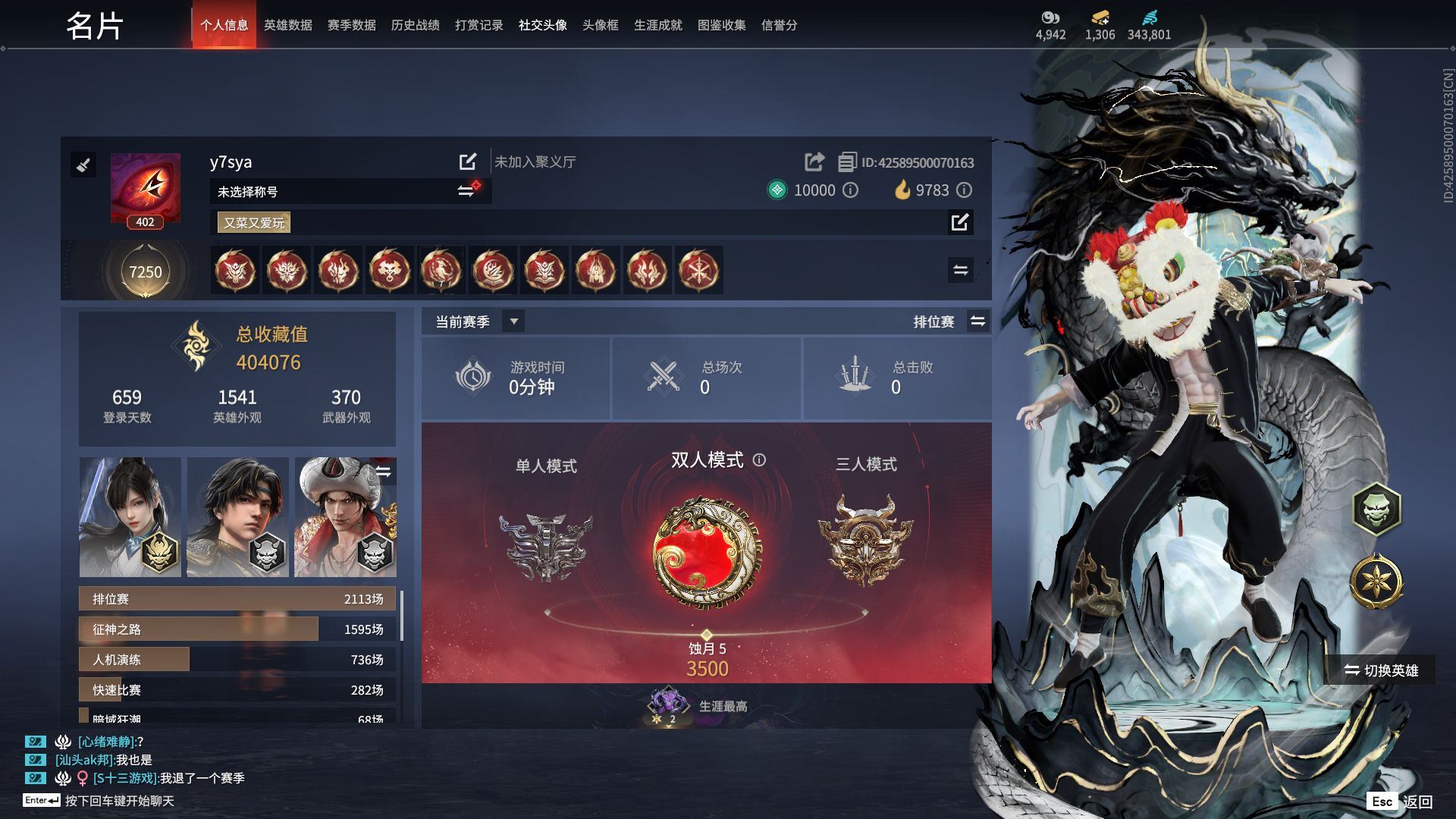 【账号佳】 r49276 网易手机 22红色神品: 赤皓新囍/初代玄女/泣珠龙纱/凌霄之羽/香雪水兰/绝代风华/沙漠香风/监兵凶神/通天狐袄/执明神君/流金晓锦/画中仙/麒麟魄/少阳剑/灵狐幻刃/帝星/狼主/龙雀/飞将戟/如意金箍棒/逆晦朔/苍穹之光, 【游戏等级】 402 【游戏段位】 单排白银1, 双排蚀月5, 三排铂金4 【通行证等级】 通行证未升级Lv.1 【技能奥义】 噬骨/勾玉/三娃葫芦/珥冰/应龙号/雪霜姿/初代机/御祥云/彩俑娃娃/炎烈珠/霜翎 宁红夜: 赤皓新囍/初代玄女/夜华朝/相柳/昆仑之主/自知/耀世魂花/红川仙子/碧水青天/九阴圣女/簪缨发/云霞发/双马尾女 沈妙: 奥村春NOIR/绮云衫/悠竹萌客/云溪仙子/涂鸦少女/初夏绯莓/紫衣仙子/娇憨发/韶光发/NOIR发型/双马尾女 天海: 白熊/少林/八宝龙王/霸者发/双马尾男 殷紫萍: 鹅黄纱梦/萍之缘/福寿仙/花间影/伏苓发/暖绒发/双马尾女 特木尔: 多闻天王/红蓝狂想/银狼裘/唐三/海神发/双马尾男 季沧海: 夏神祝融/杰洛特/鹧鸪天/巨阙/信手斩龙/孽炎祸斗/精武魂/游四海/江海发/含锋发/白狼发/双马尾男 胡桃: 紫藤神子/星空投影/遣唐使/清雅少女/贵胄少女/御宅罗梦/月丹发/归宁发/双马尾女 妖刀姬: 暗夜利刃/朔夜游方/灼舞桃节 崔三娘: 泣珠龙纱/赤雾烟霞/暗沼摩罗/汐泪/阿娜希塔/怒浪/填海发/冷傲发/双马尾女 岳山: 杨戬/尼尔/铁面/戍关将/弘毅袍/破荆者/神武/过江龙/玄鳞发/双马尾男 无尘: 凌霄之羽/黄庭道/司天命/申公豹/柳生/双马尾男 顾清寒: 香雪水兰/龙吉公主/紫微星命/禄运玉霄/仲夏霜华/赤丹朱湛/灵儿发/绯霜发/红鸾星发/双马尾女 武田信中: 花之倾奇/双马尾男 迦南: 绝代风华/沙漠香风/玉叶景/凛冬/胡旋女/瀚海苍鹰/浣烟纱/翔鸾发/琳琅发/双马尾女 胡为: 监兵凶神/不败擂主/蛤蟆头领/福瑞天泽/悟空/双马尾男 季莹莹: 冬无归/持国天王/干将莫邪/炽火照夜/雾灼发/缱绻发/流萤发/幽焰发/双马尾女 玉玲珑: 通天狐袄/羞花/春不敛/赤阳天狐/妲己/黄昏巫主/古溪发/笼烟芍药发/惊雀发/双马尾女 哈迪: 夜绸袍/秀逸发/双马尾男 魏轻: 执明神君/獬豸/念奴娇/傲采发/双马尾女 刘炼: 流金晓锦/姜子牙/金财聚辉/仙风发/双马尾男 张起灵: 山漠狞影/孤影戎装/赤焰战灵/风纪发/鹤姿发/双马尾男 席拉: 日月明/特莉丝/雪铃绮歌/王室顾问发/蜜语发/双马尾女 蓝梦: 画中仙/如梦令/沉醉发/双马尾女各种道具详情看截图、低价出售找回包 赔、截图展示段位不代 表实际段位,如赛季更新等不可抗拒因素发生变化、时限道具不保证所剩时间、标题未写送点劵默认不送【卖号买号首选亿梦】