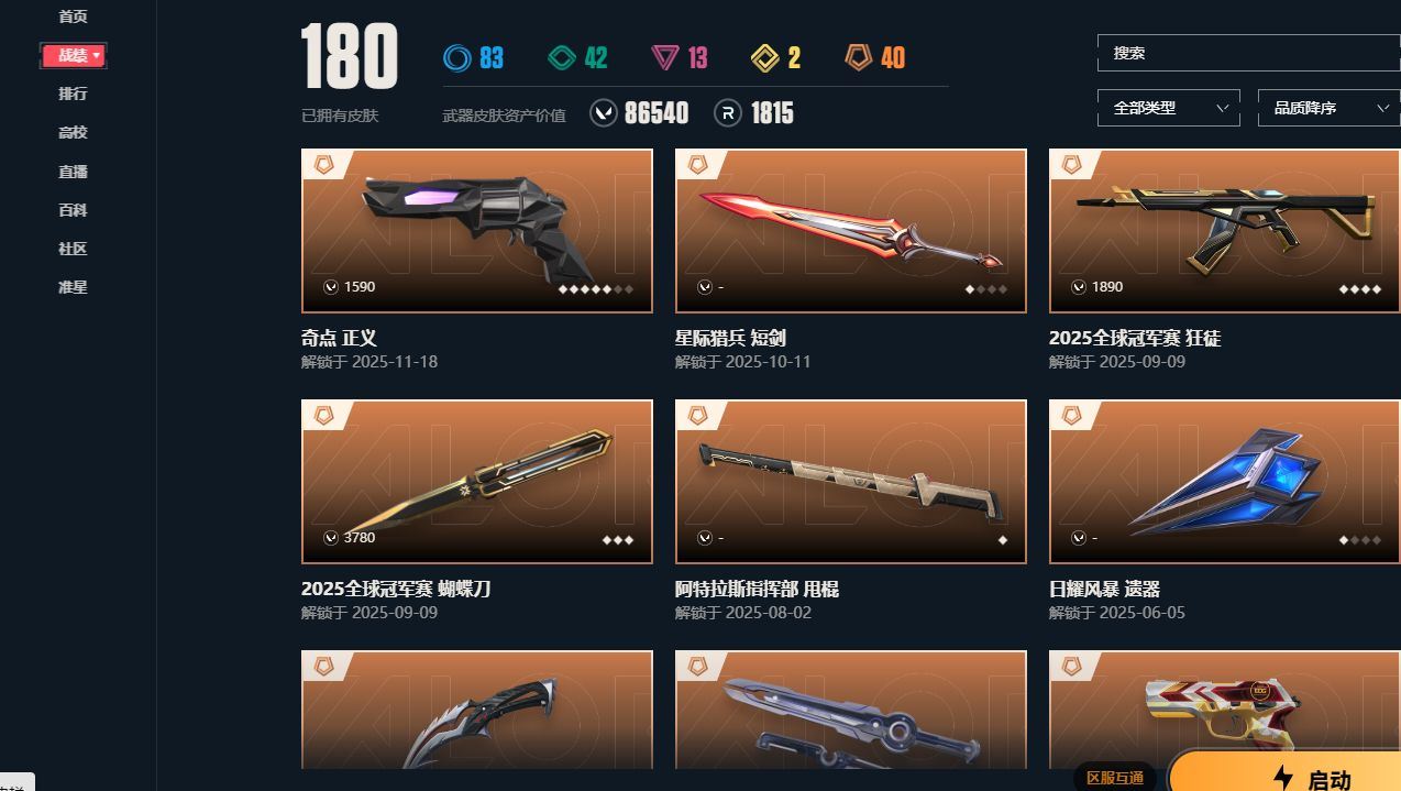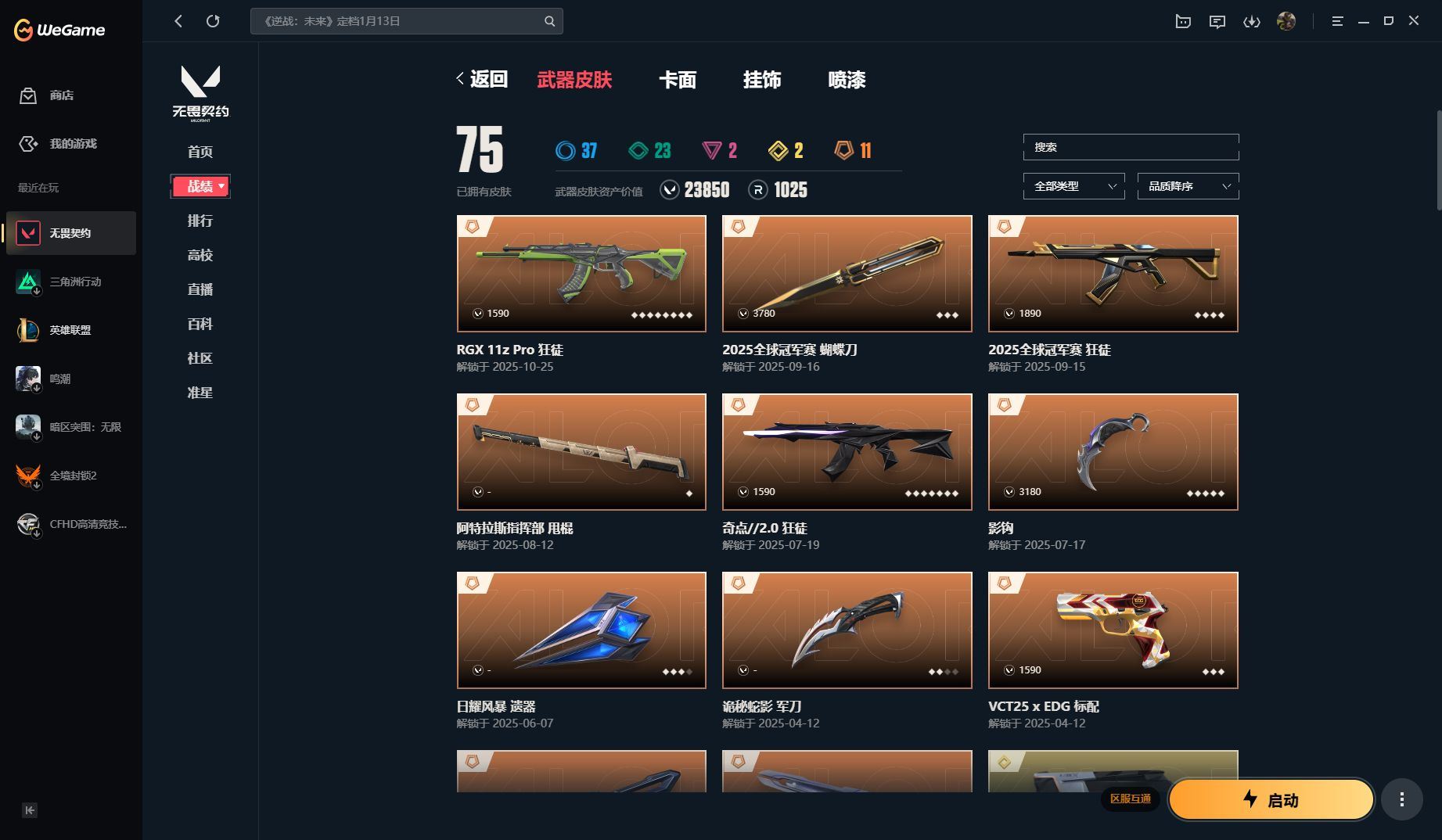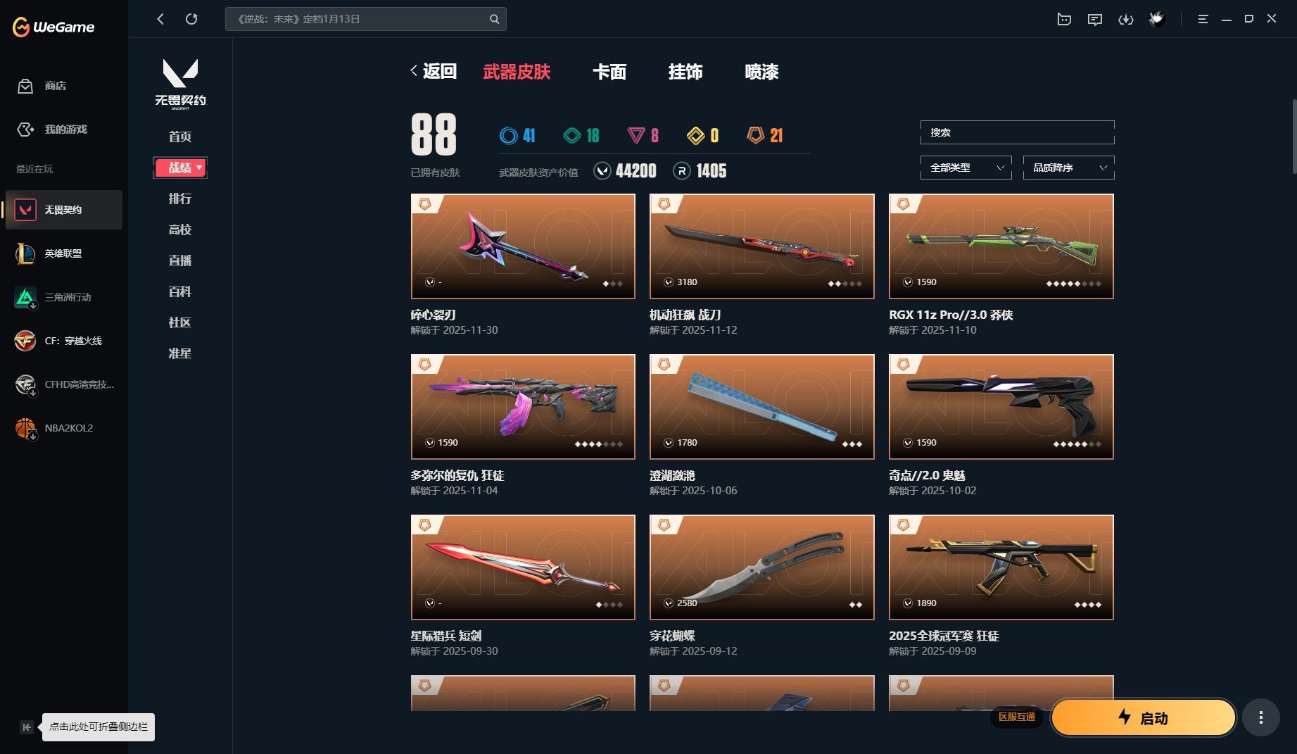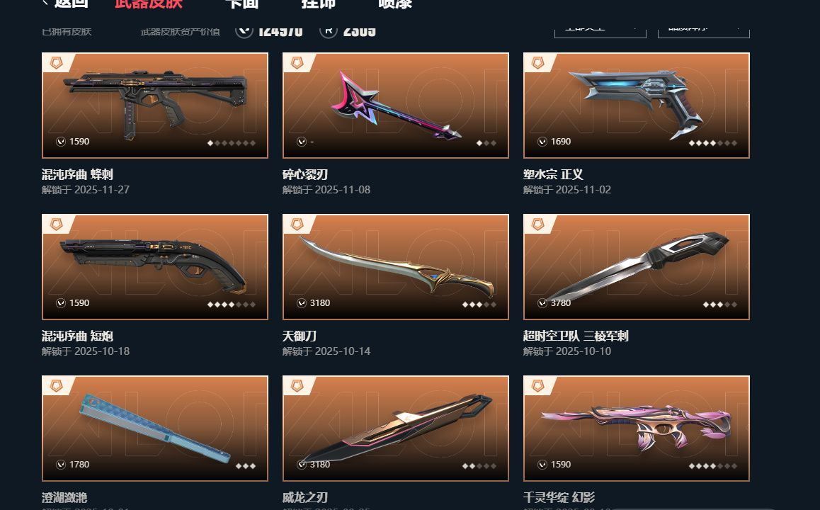 【账号佳】 【可包人脸】【kf3382】无畏16900库存,VCT 2025 爪刀,落英飞旋,艾沃莉的梦之翼 狂徒,创·纪元 狂徒,塑水宗 正义,西部未来 正义,VCT25 x AG 标配,光明哨兵//2.0 骇灵,神圣领域 战刀