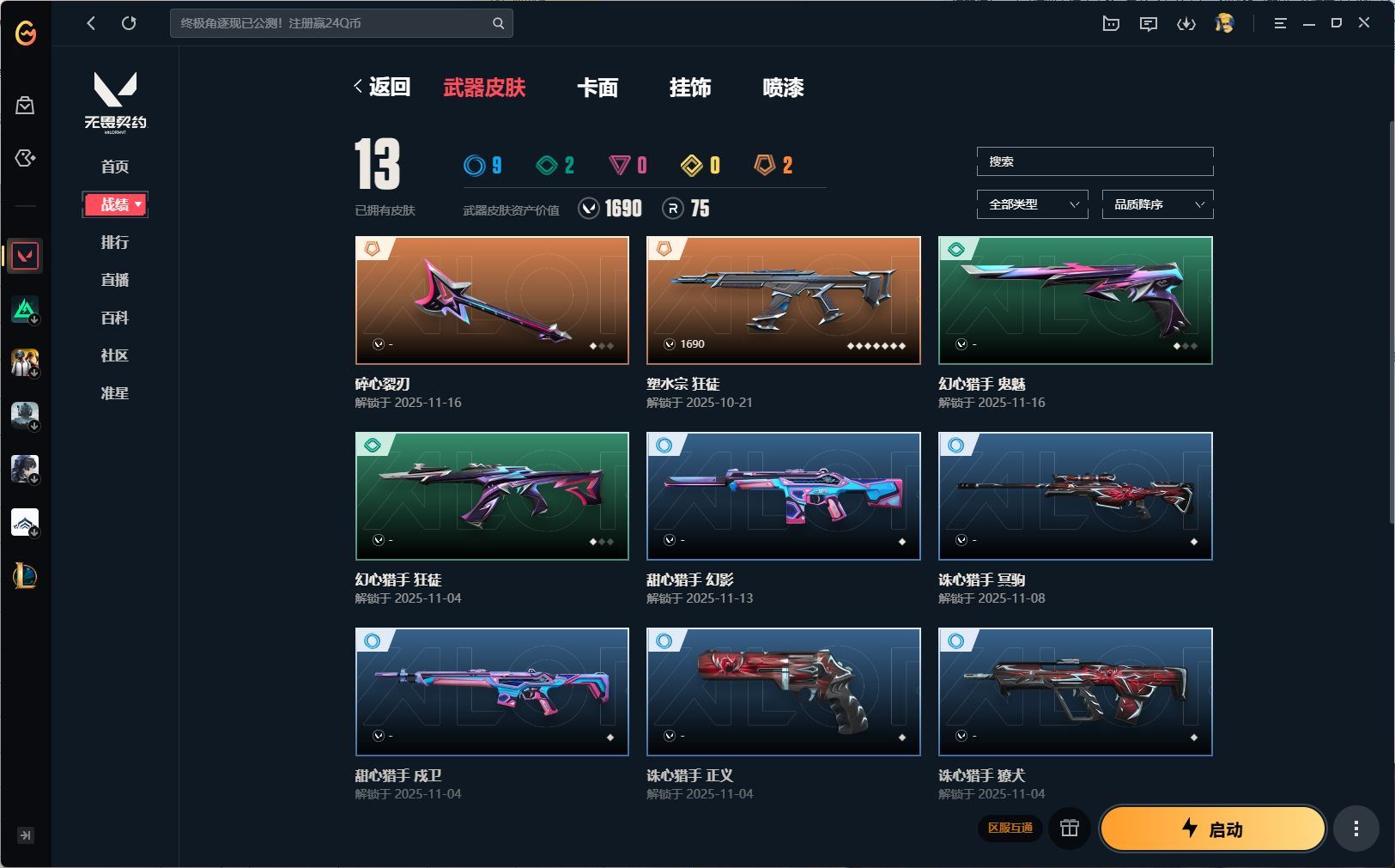 【账号佳】 【可二次实名】R45086 可二次QQ【段位:黄金一】【碎心裂刃星际猎兵短剑+2025冠军赛蝴蝶刀+魔术火花+阿特拉斯指挥部甩棍+影钩】【2025冠军赛狂徒+奇幻朋克狂徒+耀鳞威龙狂徒+般若假面狂徒】【侦察力量幻影+奇幻朋克幻影】【上古龙炎冥驹】【vct25 x bbl标配】【总资产21860】各种道具详情看截图、低价出售找回包 赔、截图展示段位不代 表实际段位,如赛季更新等不可抗拒因素发生变化、时限道具不保证所剩时间、标题未写送点劵默认不送【卖号买号首选亿梦】