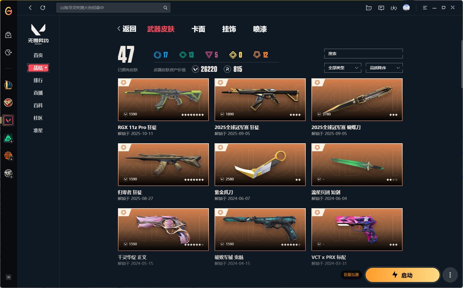 【账号佳】 【可二次实名】r45769 可二次qq《铂金2》《2025全球冠军赛蝴蝶刀+紫金爪刀+流星兵团短剑+剥皮小刀+侦察力量蝴蝶刀+合金战车军刀》《rgx11zPro狂徒+2025全球冠军赛狂徒+归零者狂徒+盖世英雄狂徒+盖亚的复仇狂徒+紫阙金琅狂徒》《侦察力量幻影+般若假面幻影》《千灵华绽正义》《破败军械鬼魅》《vctxprx标配》各种道具详情看截图、低价出售找回包 赔、截图展示段位不带表实际段位,如赛季更新等不可抗拒因素发生变化、时限道具不保证所剩时间、标题未写送点券默认不送【卖号买号首选亿梦】