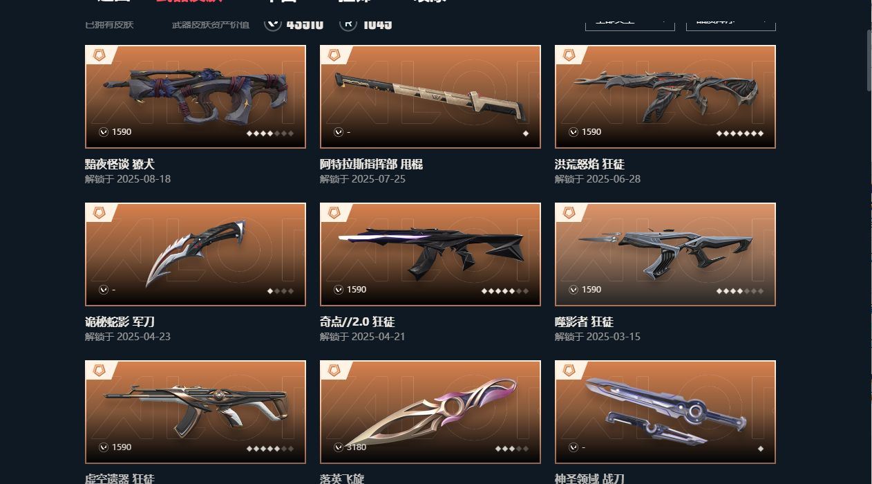 【账号佳】 r45805 可二次 QQ 【钻石I】【2022全球冠军赛-蝴蝶刀+超时空卫队-三棱军刺+未来开拓者+阿特拉斯指挥部-甩棍+日耀风暴-遗器+诡秘蛇影-军刀+荒土机兵-热能刀+影钩+神之刃+镭切+紫金爪刀+穿花蝴蝶】【RGX-11z-Pro-狂徒+光明哨兵-狂徒+盖亚的复仇-狂徒+掠影-狂徒+超时空卫队-狂徒】【侦察力量-幻影+2022全球冠军赛-幻影+西部未来-幻影】【混沌序曲-冥驹+堕天遗武-冥驹+盖世英雄-冥驹】【超时空卫队-獠犬+超时空卫队-莽侠+超时空卫队-鬼魅+西部未来-飞将+西部未来-奥丁+西部未来-正义+阿特拉斯指挥部-莽侠+诡秘蛇影-莽侠+悠闲猫生-飞将+幻语魔咒-飞将+末日之翼-飞将+月球哨兵-莽侠+艾沃莉的梦之翼-奥丁+起源-雄鹿+天界神兵-鬼魅+VCT25-x-TS-标配】各种道具详情看截图、低价出售找回包 赔、截图展示段位不代 表实际段位,如赛季更新等不可抗拒因素发生变化、时限道具不保证所剩时间、标题未写送点劵默认不送【卖号买号首选亿梦】