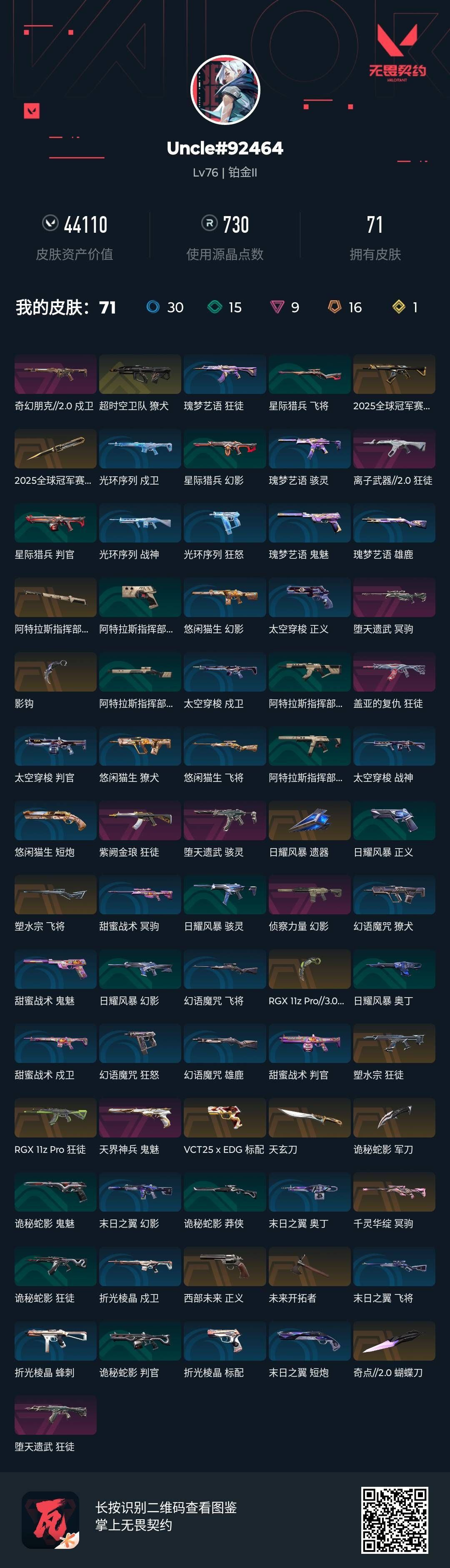 【账号佳】 【可二次实名】R44109 可二次QQ【段位:钻石一】【阿特拉斯指挥部甩棍+影钩+落英飞旋+日耀风暴遗器+紫金爪刀+奇点蝴蝶刀+诡秘蛇影军刀+剥皮小刀+神圣领域战刀+VCT 2025爪刀】【2025冠军赛狂徒+光荣异象狂徒+混沌序曲狂徒+洪荒怒焰狂徒+塑水宗狂徒+盖亚的复仇狂徒+耀鳞威龙狂徒+离子武器狂徒+掠影狂徒+紫阙金琅狂徒】【电音光谱幻影+千灵华绽幻影+侦察力量幻影】【光明哨兵冥驹】【千灵华绽正义+西部未来正义】【黯夜怪谈飞将】【vct25 x blg标配】【RGX3.0莽侠】【掠影戍卫】【天界神兵鬼魅】【总资产50170】详情请看图片【卖号买号首选亿梦】