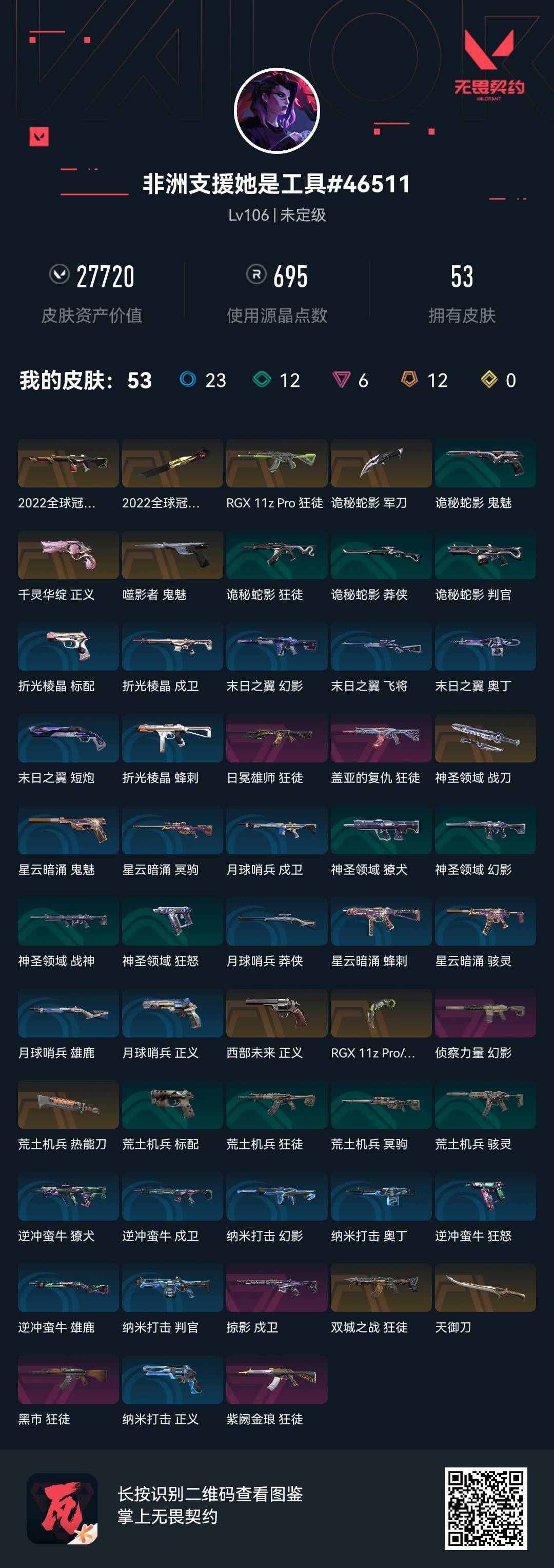 【账号佳】 【可二次实名】【ww248】【英雄】:炼狱,暮蝶,铁臂,捷风,幽影,不死鸟,贤者,猎枭,零,芮娜,尚勃勒,夜露,黑梦 【近战 武器】:近战武器-5周年//公测重制版 苍龙之刃 【狂徒】:狂徒-超时空卫队,狂徒-2025全球冠军赛 【幻影】:幻影-洪荒怒焰 【卡面】:比比看谁快? 卡面,《双城之战》金克丝 卡面,代号红色 卡面,新兵报到 卡面,V契约 卡面,无畏契约 卡面 【喷漆】:霓光四射 喷漆,关门放狗 喷漆,胜利属于无畏契约 喷漆,GLHF 喷漆,无畏契约 喷漆 【挂饰】:无畏契约GO!第一卷 零 挂饰,无畏契约 纪念币 挂饰