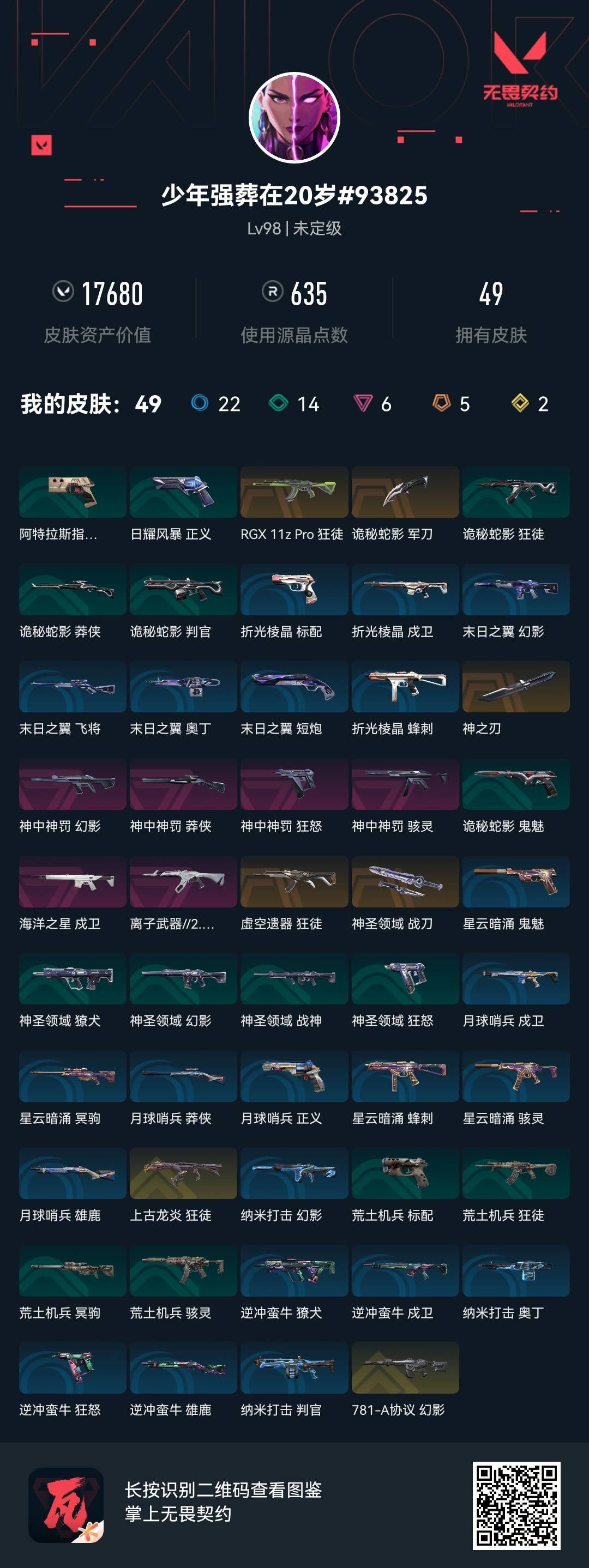 【账号佳】 【可二次实名】【ww249】【套装】:2025全球冠军赛套装 【英雄】:幻棱,炼狱,暮蝶,壹决,铁臂,捷风,幽影,不死鸟,贤者,猎枭,零,芮娜,尚勃勒,霓虹,斯凯,夜露,海神 【近战 武器】:近战武器-2025全球冠军赛 蝴蝶刀 【狂徒】:狂徒-2025全球冠军赛,狂徒-机动狂飙 【幻影】:幻影-千灵华绽 【正义】:正义-西部未来 【鬼魅】:鬼魅-耀鳞威龙 【卡面】:南瓜盛典 卡面,修车达人 卡面,正义的化身 卡面,无畏契约GO!第一卷:芮娜 卡面,清除名单 卡面,无畏契约GO!第一卷:零 卡面,完美调谐 卡面 ,代号红色 卡面,新兵报到 卡面,V契约 卡面,无畏契约 卡面 【喷漆】:熊抱 喷漆,买装还是存钱 喷漆,胜利属于无畏契约 喷漆,GLHF 喷漆,无畏契约 喷漆 【挂饰】:第九季//第三幕 纪念币 挂饰,无畏契约GO!第一卷 芮娜 挂饰,无畏契约GO!第一卷 零 挂饰,第九季//第二幕 纪念币 挂饰,天外飞客 挂饰,无畏契约 纪念币 挂饰