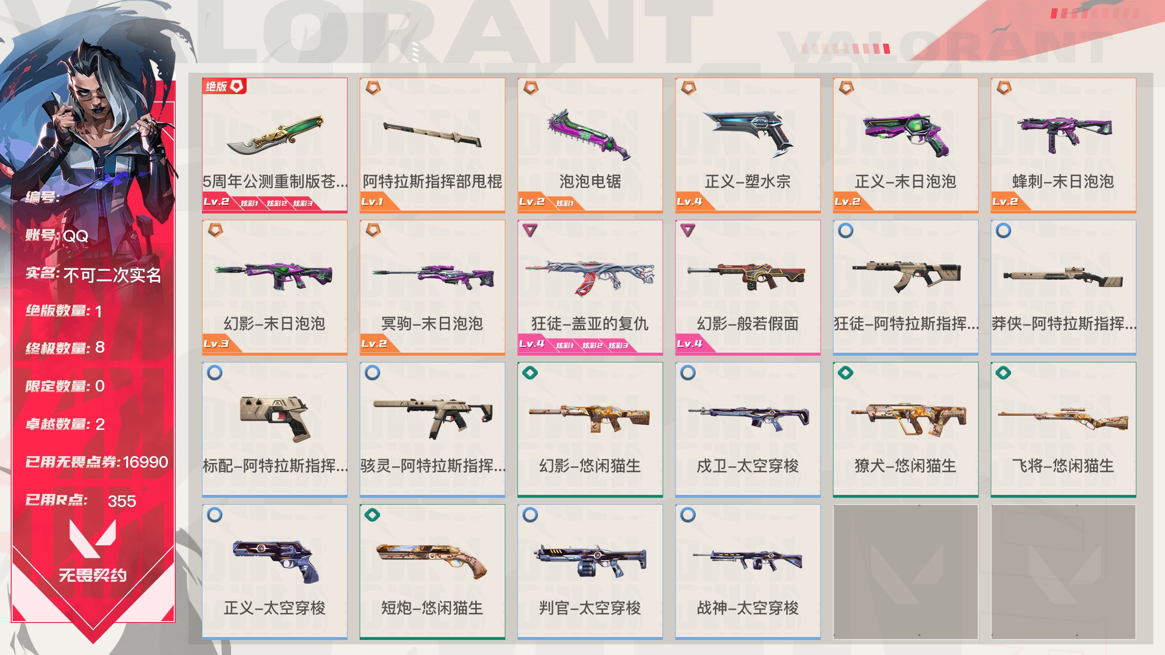 【账号佳】 【69x8jc21f】lv63|未定级, 刀皮数量3,呛皮数量19(绝版1限定8终极0卓越2);皮肤资产价值16990,已用r点355;【刀皮】:近战武器-5周年公测重制版苍龙之刃,近战武器-阿特拉斯指挥部甩棍,近战武器-泡泡电锯; 【呛皮】:正义-塑水宗,正义-末日泡泡,蜂刺-末日泡泡,幻影-末日泡泡,冥驹-末日泡泡,狂徒-盖亚的复仇,幻影-般若假面,狂徒-阿特拉斯指挥部,莽侠-阿特拉斯指挥部,标配-阿特拉斯指挥部,骇灵-阿特拉斯指挥部,幻影-悠闲猫生,戍卫-太空穿梭,獠犬-悠闲猫生,飞将-悠闲猫生,正义-太空穿梭,短炮-悠闲猫生,判官-太空穿梭,战神-太空穿梭;【热门卡面】:双城之战金克丝卡面;【热门挂饰】:神中神挂饰;【热门喷漆】:买装还是存钱喷漆;详情看图【皮肤可能含有某些特权皮肤,具体以游戏内实际拥有为准】【qq】【不可二次实名】【官方截图】