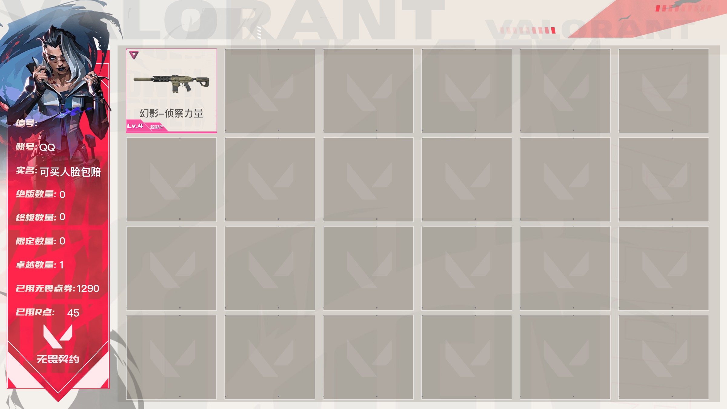 【账号佳】 【可包人脸】【69x8jhdg1】lv9|未定级, 刀皮数量0,呛皮数量1(绝版0限定0终极0卓越1);皮肤资产价值1290,已用r点45; 【呛皮】:幻影-侦察力量;【热门卡面】:双城之战金克丝卡面;【热门挂饰】:神中神挂饰;【热门喷漆】:放下武器喷漆;详情看图【皮肤可能含有某些特权皮肤,具体以游戏内实际拥有为准】【qq】【可买人脸包赔】【官方截图】
