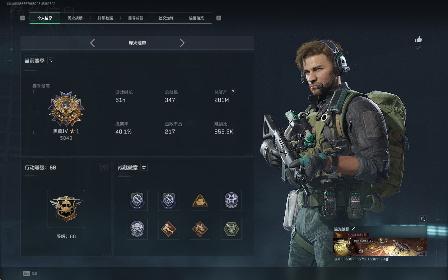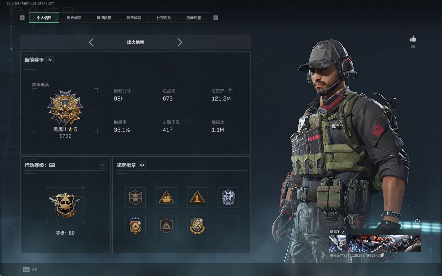 【账号佳】 ljh AK027731 包人脸 行动等级60黑鹰 总资产281m 满体 s7赛季3*3【典藏 巨浪悬赏令(极品a官皮)】【SG552突击步枪-运动员 KC17突击步枪-电锯惊魂ASh-12战斗步枪-鹅鸭杀0CQ171冲锋枪-鹅鸭杀0J日201轻机枪-鹅鸭杀M250通用机枪-骑士之心 联动 M4A1突击步枪-阿米娅G3战斗步枪-骑士腾龙突击步枪-捞点薯条AWM狙击步枪-捞点薯条 】【近战 黑鹰】【角色皮肤 红狼-电锯惊魂 蛊-能天使午夜邮差 深蓝-不破誓约 】----更多炫彩背包/光效/名片/武器具体看图!截图展示段位不代实际段位,赛季更新等不可抗拒因素发生变化、时限道具不保证所剩时间、标题未写送点卷默认不送】【主播担保+安全至上+性价比 买号卖号只选金牌商家一左友】