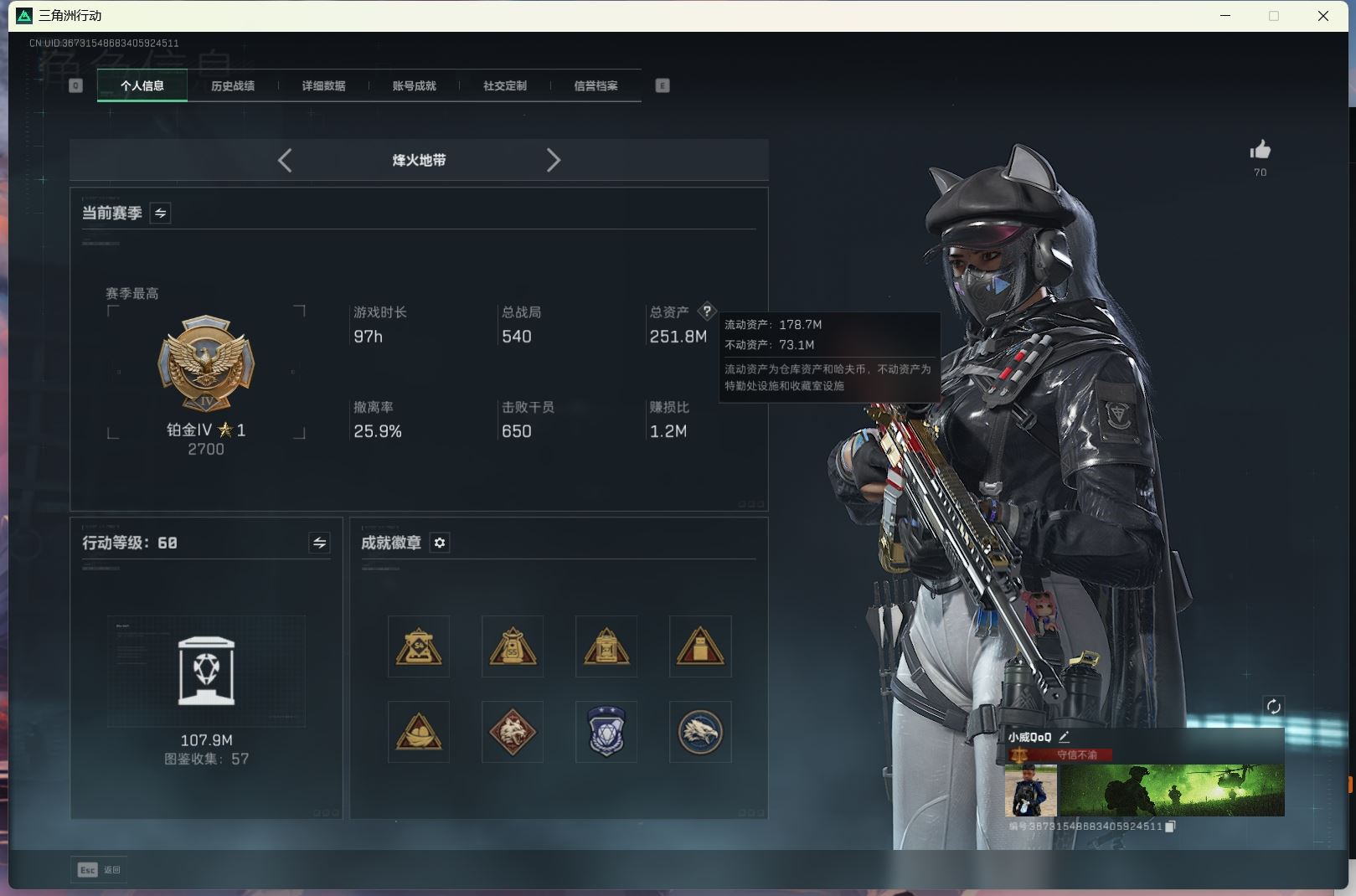 【账号佳】 ljh AK028150 行动等级60级三角洲巅峰 有二次 总资产177.1m 特勤处 满体 s7赛季3*3 84发aw【毁灭之源(2s)】【KC17突击步枪-电锯惊魂SG552突击步枪-运动员M4A1突击步枪-蚀金玫瑰ASh-12战斗步枪-鹅鸭杀0CQ171冲锋枪-鹅鸭杀0JB201轻机枪-鹅鸭杀SCAR-H战斗步枪-启航G3战斗步枪-骑士M250通用机枪-骑士之心AK-12突击步枪-特斯拉线圈UZI冲锋枪-特斯拉线圈SR-3M紧凌突击步枪-特斯拉线圈联动 M4A1突击步枪-阿米娅联动 勇士冲锋枪-能天使-午夜邮腾龙突击步枪-捞点薯条 AWM狙击步枪-捞点薯条93R-捞点薯条联动 复合弓-黑-天际线K437突击步枪-北极星0C0171冲锋枪-北极星联动 CAR-15突击步枪-阿米娅联动 725双管霸弹枪-送葬人-无题密令MP5冲锋枪-黑海 MP5冲锋枪-黑海0JB201轻机枪-黑海SMG-45冲锋枪-骑士AK-12突击步枪-夜鹰SCAR-H战斗步枪-铁艺苍穹AS Val突击步枪-蛇年祥瑞SR-25射手步枪-水墨云图M7战斗步枪-零度协议M7战斗步枪-维京0BZ95-1突击步枪-破军】【近战-北极星 黑海 黑鹰】【红狼-蚀金玫瑰 红狼-电锯惊魂 威龙-铁面判官 威龙-壮志凌云 无名-夜鹰 蜂医-送葬人无题密令 牧羊人-街头之王 深蓝-不破誓约 露娜-黑天际线 】----安全箱等时效性道具请以游戏内数据为准:详情请看图----截图展示段位不代实际段位,赛季更新等不可抗拒因素发生变化、时限道具不保证所剩时间、标题未写送三角币默认不送】【主播担保+安全至上+性价比 买号卖号只选金牌商家一左友】