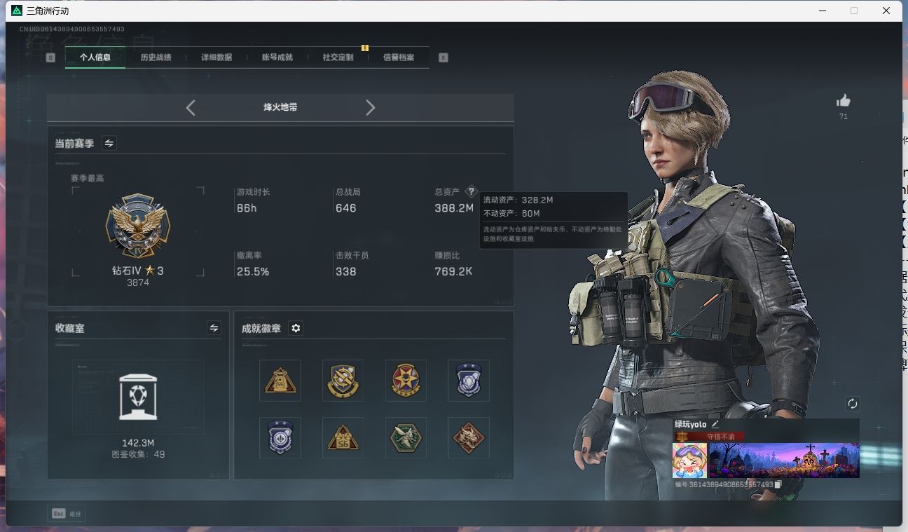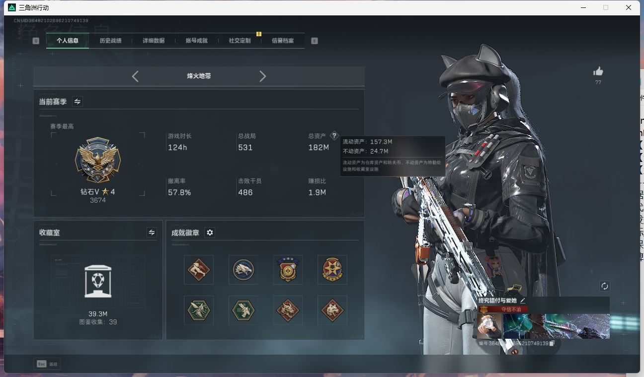 【账号佳】 hmc AK025977【亮点解析 】行动等级:60钻石,总资产388.2m哈夫币 【呛皮:M250通用机枪-骑士M14射手步枪-电锯惊魂ASh-12战斗步枪-鸭杀0C0171冲锋枪-鹅鸭杀0JB201轻机枪-鹅鸭杀SCAR-H战斗步枪-启航G3战斗步枪-骑士 K437突击步枪-北极星0C0171冲锋枪-北极星M16A4突击步枪-狩猎时刻G3战斗步枪-狩猎时刻Vector冲锋枪-狩猎时刻联动 M4A1突击步枪-阿米娅 联动 勇士冲锋枪-能天使-午夜邮差AK-12突击步枪-特斯拉线围UZI冲锋枪-特斯拉线圈SR-3M紧凑突击步枪-特斯拉线围联动 725双管霞弹枪-送葬人-无题密令联动 复合弓-黑-天际线】【角色皮肤:蜂医-送葬人无题密令】【近战:近战-北极星 黑鹰 】----安全箱等时效性道具请以游戏内数据为准:详情请看图----截图展示段位不代实际段位,赛季更新等不可抗拒因素发生变化、时限道具不保证所剩时间、标题未写送三角币默认不送】【主播担保+安全至上+性价比 买号卖号只选金牌商家一左友】