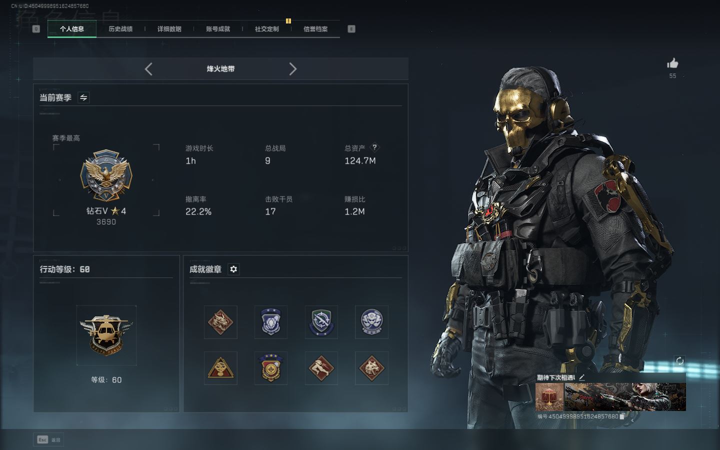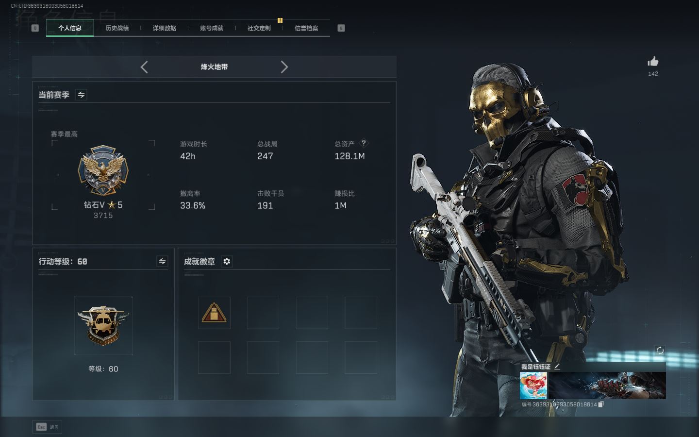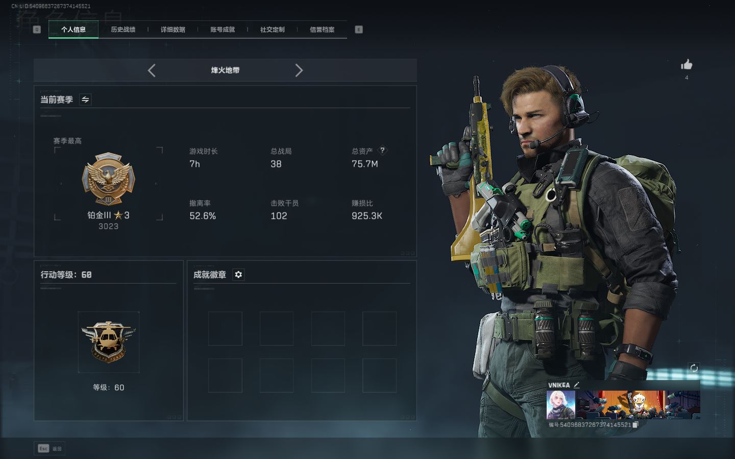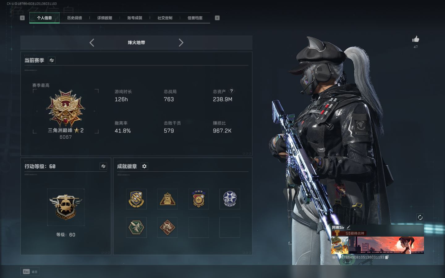 【账号佳】 ljh AK026641 有二次 行动等级60钻石 总资产128.1m 【12.24号上线可获赠信条刀皮】【KC17突击步枪-电锯惊魂SCAR-H战斗步枪-启航M250通用机枪-骑士之心AK-12突击步枪-特斯拉线圈UZ1冲锋枪-特斯拉线圈HSR-3M紧凑突击步枪-特斯拉线圈联动 M4A1突击步枪-阿米娅联动 勇士冲锋枪-能天使-午夜邮差 腾龙突击步枪-捞点薯条AWM狙击步枪-捞点薯条93R-捞点薯条联动 CAR-15突击步枪-阿米娅K437突击步枪-北极星0C0171冲锋枪-北极星联动 复合弓-黑-天际线 M4A1突击步枪-蚀金玫瑰M1014霰弹枪-影锋AWM狙击步枪-影锋】】【近战 信条 北极星 怜悯 影锋 黑鹰】【角色皮肤 红狼-蚀金玫瑰 红狼-电锯惊魂 威龙-壮志凌云 无名-夜鹰 蜂医-送葬人无题密令 牧羊人-街头之王 深蓝-不破誓约 露娜-黑天际线 骇爪-水墨云图 】----安全箱等时效性道具请以游戏内数据为准:详情请看图----截图展示段位不代实际段位,赛季更新等不可抗拒因素发生变化、时限道具不保证所剩时间、标题未写送三角币默认不送】【主播担保+安全至上+性价比 买号卖号只选金牌商家一左友】